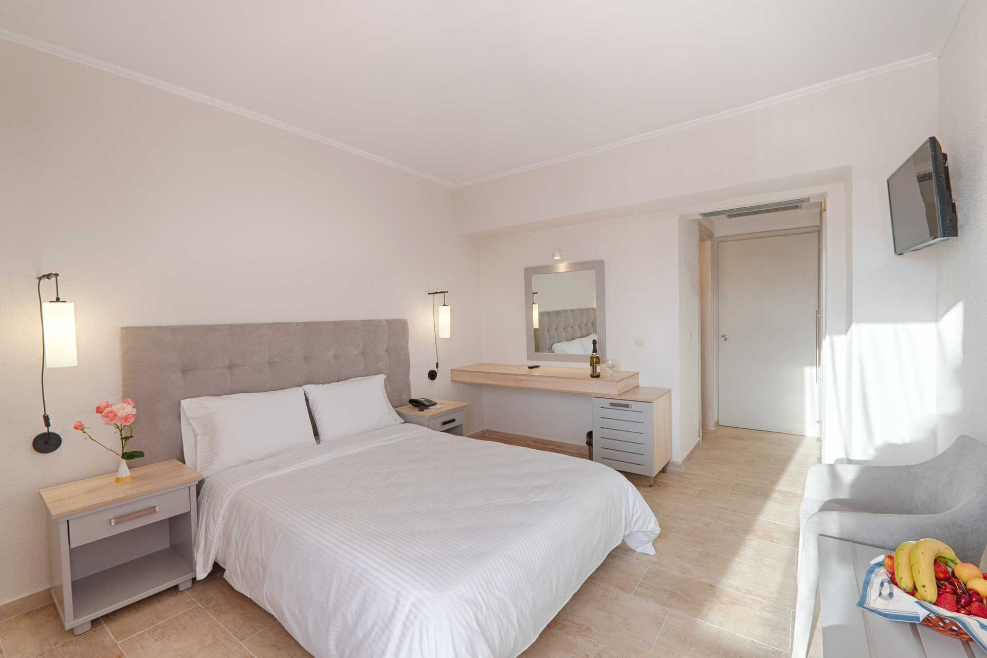 Dobbeltrom med balkong. En dobbeltseng eller to enkeltsenger. Mulig med ekstraseng. Luftkondisjonering og wifi inkludert. Safe mot avgift. Kjøleskap. TV. Hårføner. Badekar eller dusj samt wc. Rengjøring 7 ggr/uke.