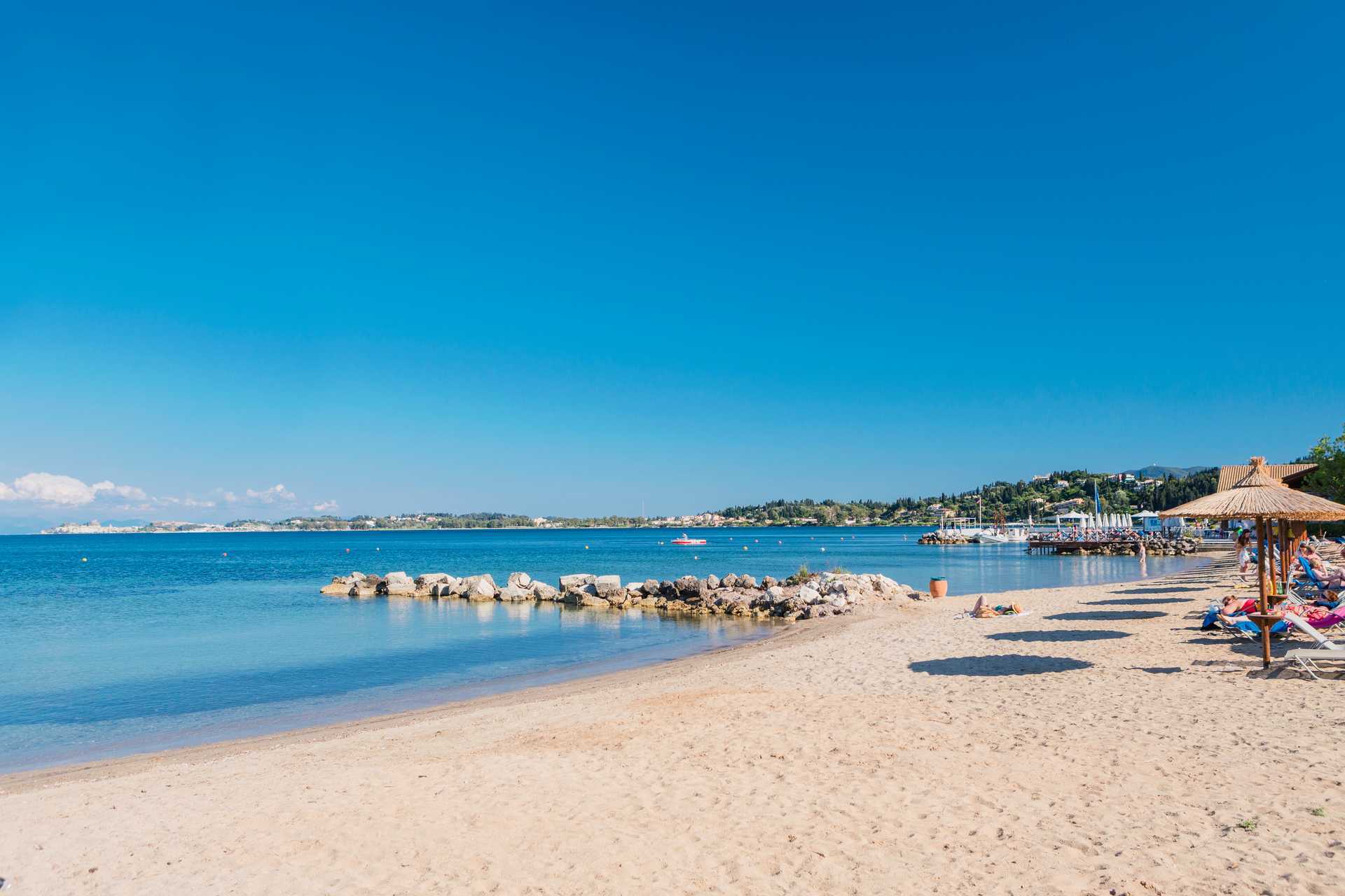 Gouvia & Kontokali på østkysten har rullesteinstrender med sandbunn. I Sidari i nord er det nydelige viker og sandsteinsklipper samt en fin sandstrand.