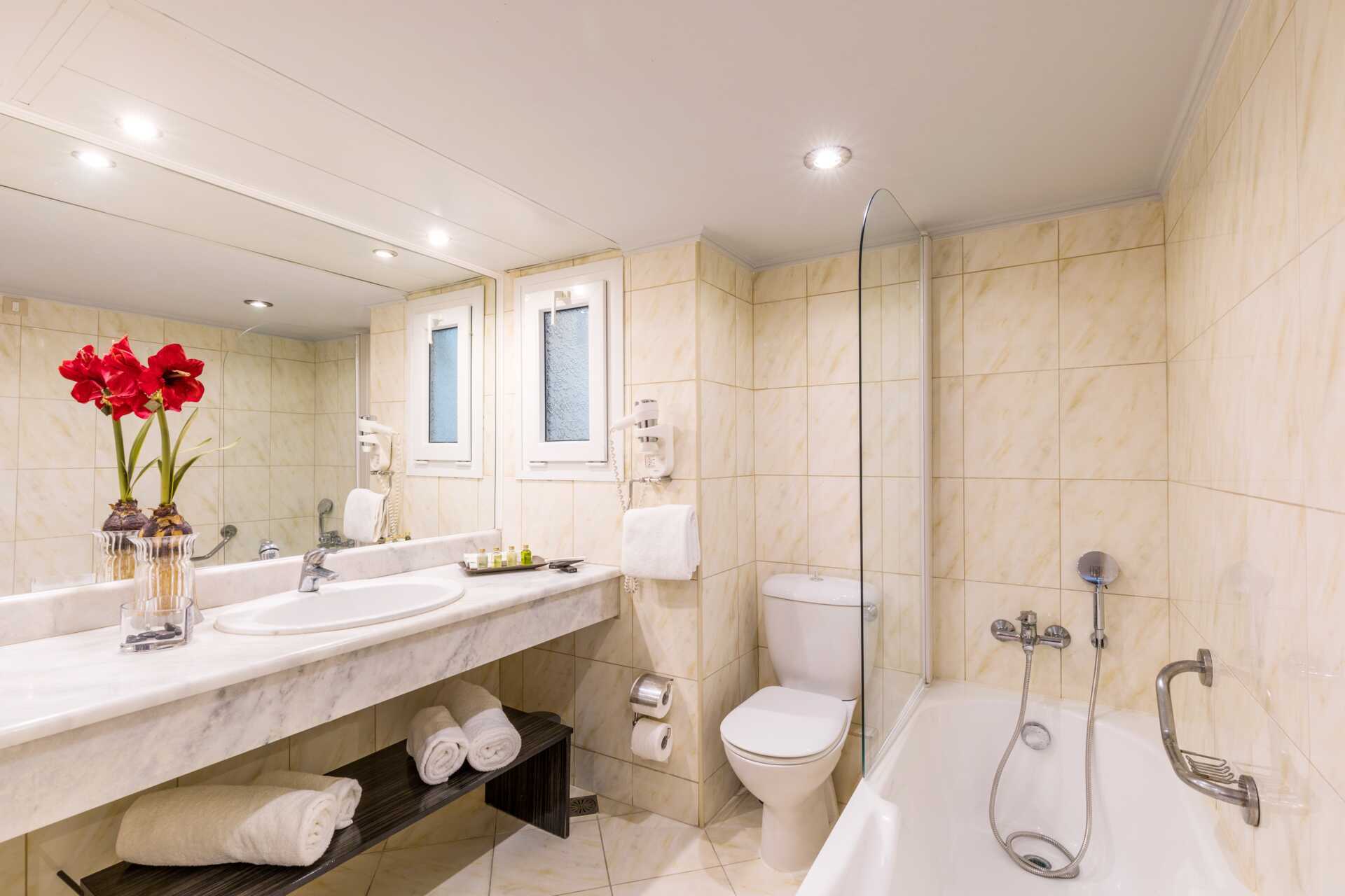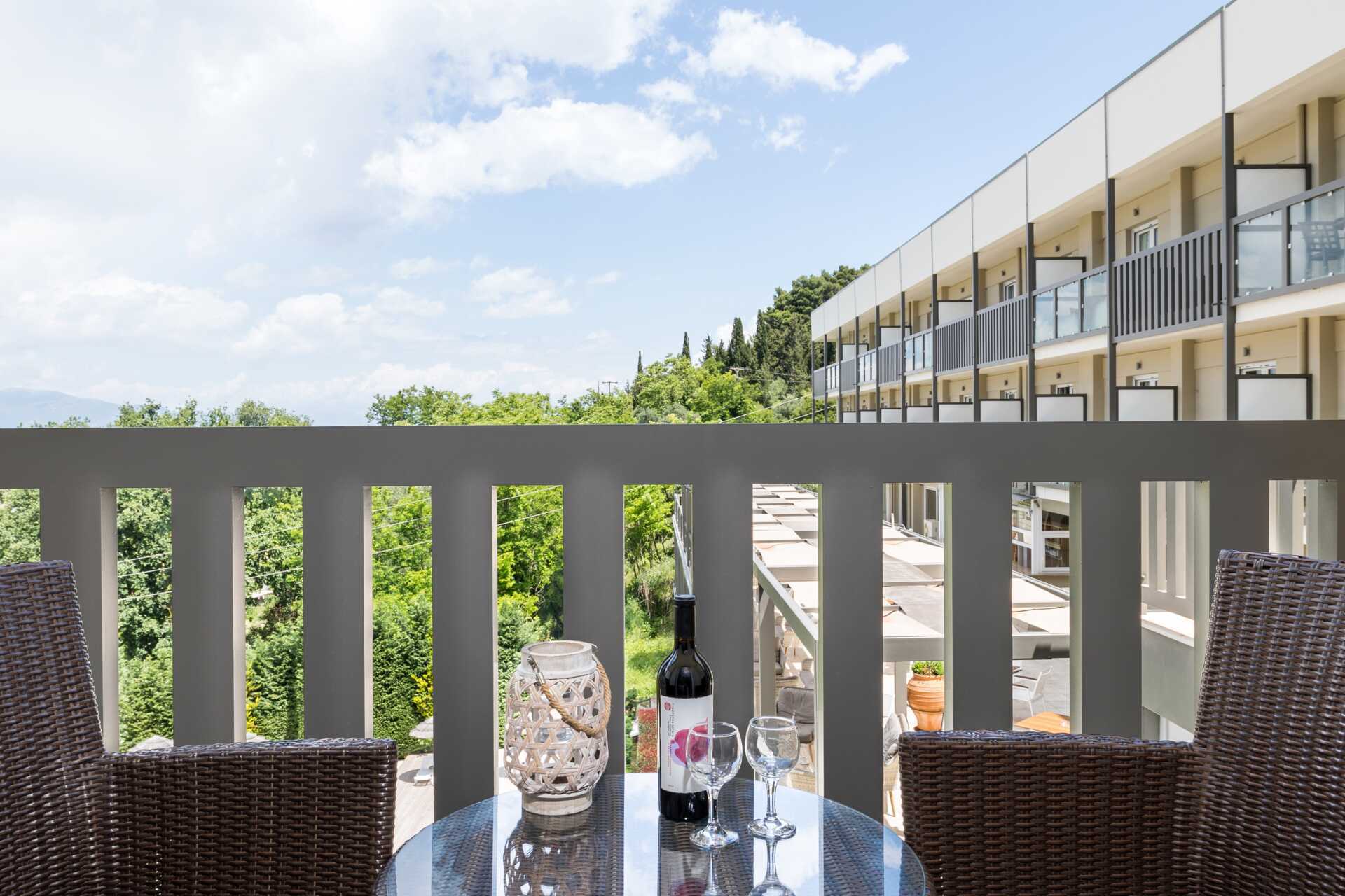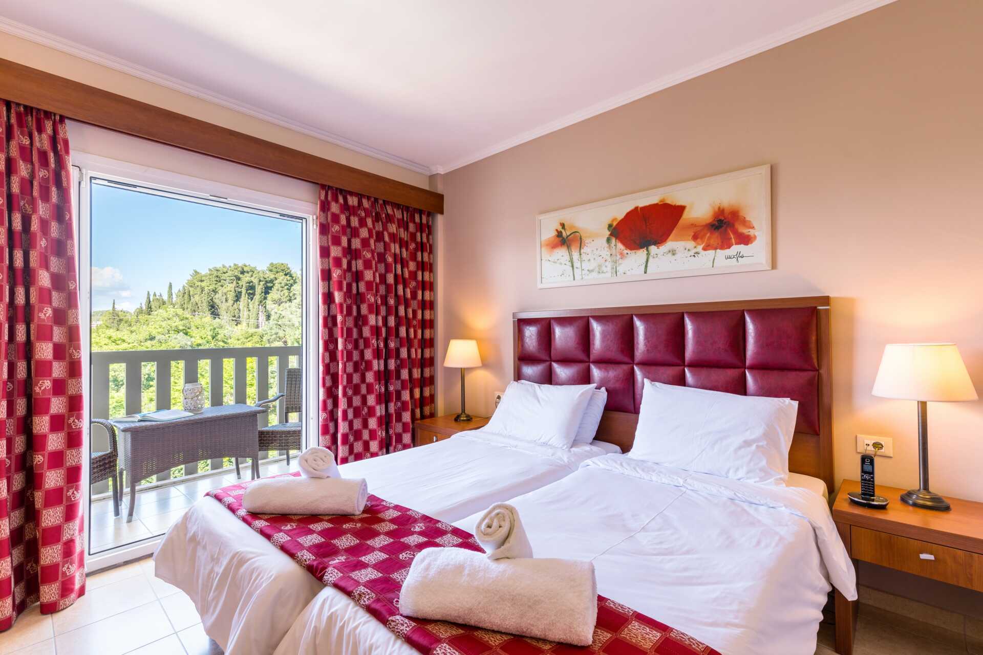 Familierom med balkong og bassengutsikt. To enkeltsenger. Mulig med ekstrasenger i to enkeltsenger. Wifi, luftkondisjonering og safe inkludert. Kjøleskap. TV. Hårføner. Dusj og wc. Rengjøring 7 ggr/uke. Barn under 2 år regnes inn i maksantallet i rommet.