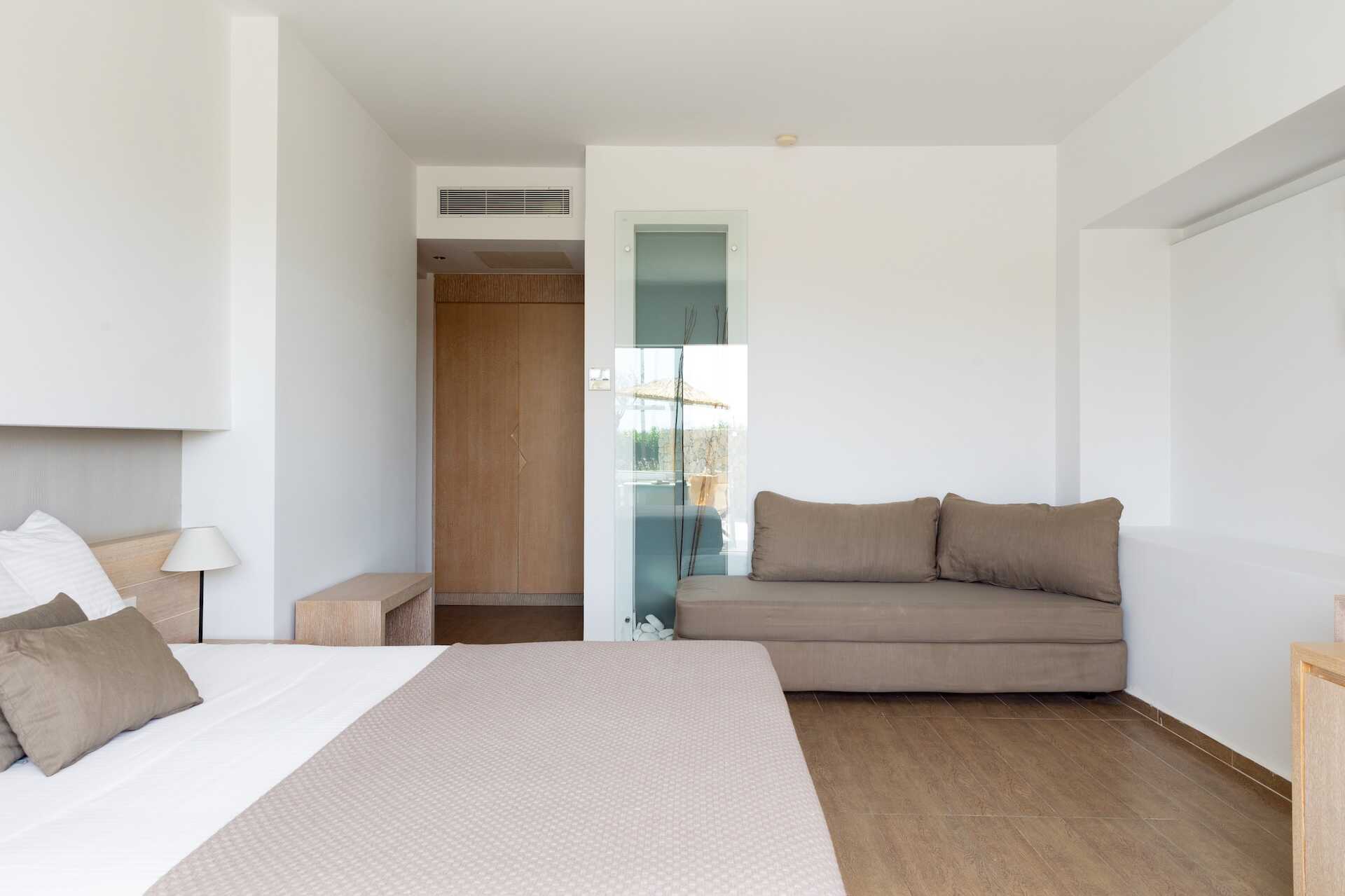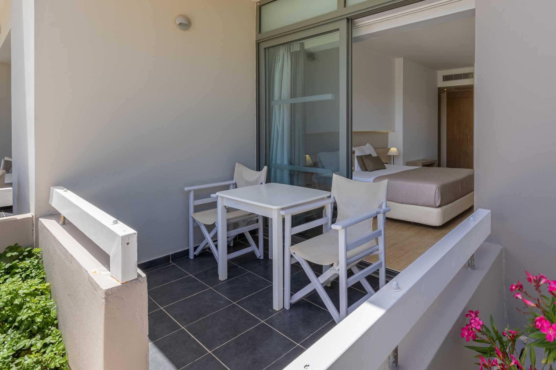 Familierom med balkong eller terrasse. En dobbeltseng eller to enkeltsenger. Mulig med ekstraseng for to personer i sovesofa. Wifi, luftkondisjonering og safe inkludert. Vannkoker samt kaffe og te. Minibar inkludert, etterfylles hver dag med vann, vin, juice, øl og brus. TV. Hårføner. Badekar eller dusj samt wc. Rengjøring 7 ggr/uke. Barn under 2 år regnes inn i maksantallet i rommet.