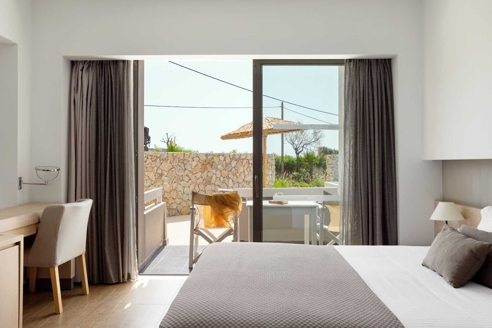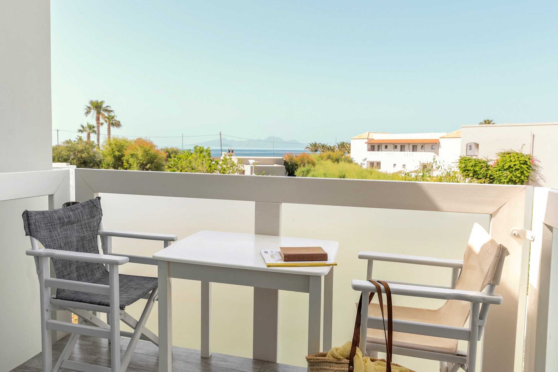 Dobbeltrom med terrasse eller balkong, noen balkonger med havutsikt. To enkeltsenger. Mulig med en ekstraseng i sovesofa. Wifi, luftkondisjonering og safe inkludert. Vannkoker samt kaffe og te. Minibar inkludert - etterfylles hver dag med vann, vin, juice, øl og brus. TV. Hårføner. Badekar eller dusj samt wc. Rengjøring 7 ggr/uke. Barn under 2 år regnes inn i maksantallet i rommet.