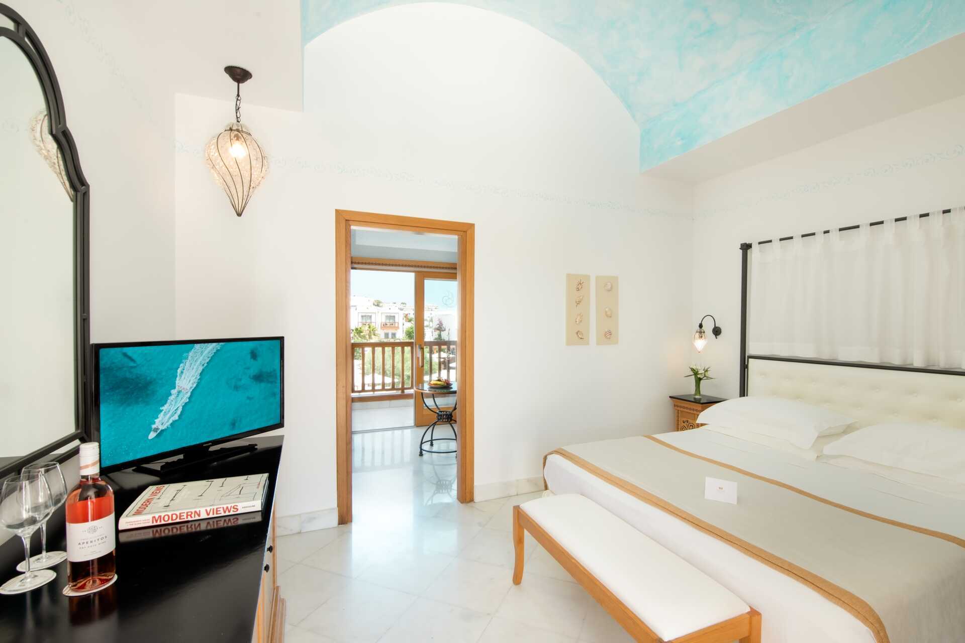 Dobbeltrom i bungalower med uteplass og utgang til basseng. En dobbeltseng eller to enkeltsenger. Mulig med ekstrasenger i sovesofa. Wifi, luftkondisjonering og safe inkludert. Minibar med vann, brus og øl inkludert, etterfylles hver dag. Nespresso kaffemaskin Vannkoker samt kaffe og te. TV. Badekåper og tøfler Hårføner. Badekar, separat dusj og wc. Rengjøring 7 ggr/uke. Barn under 2 år regnes inn i maksantallet i rommet.