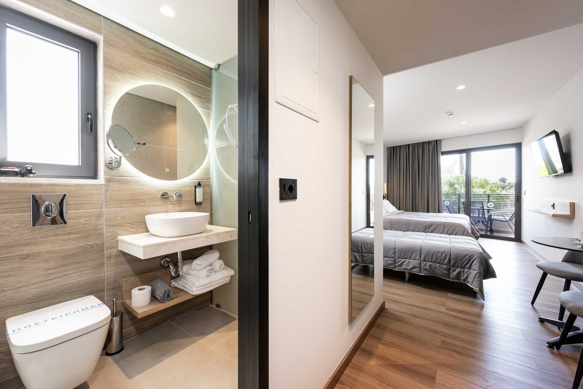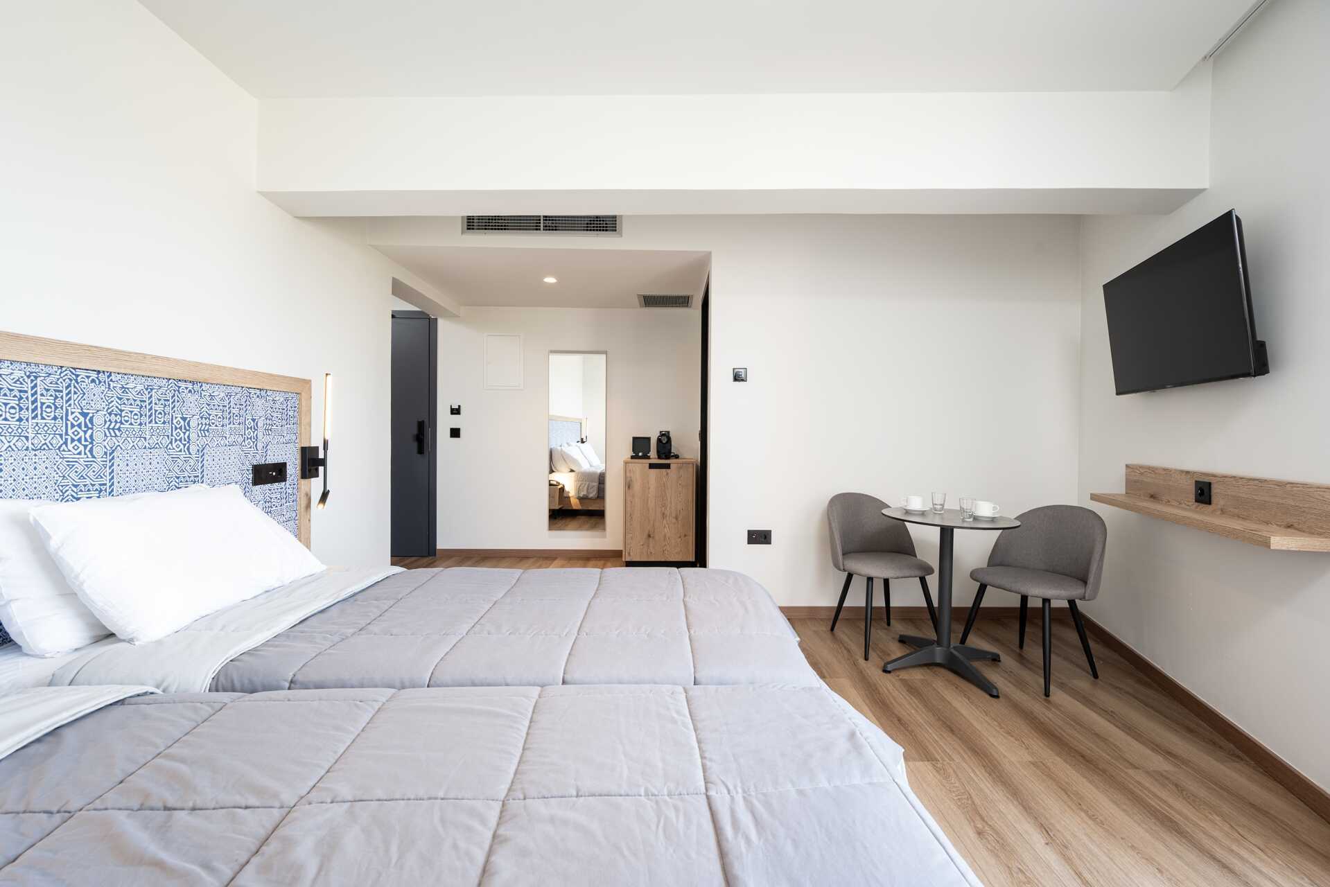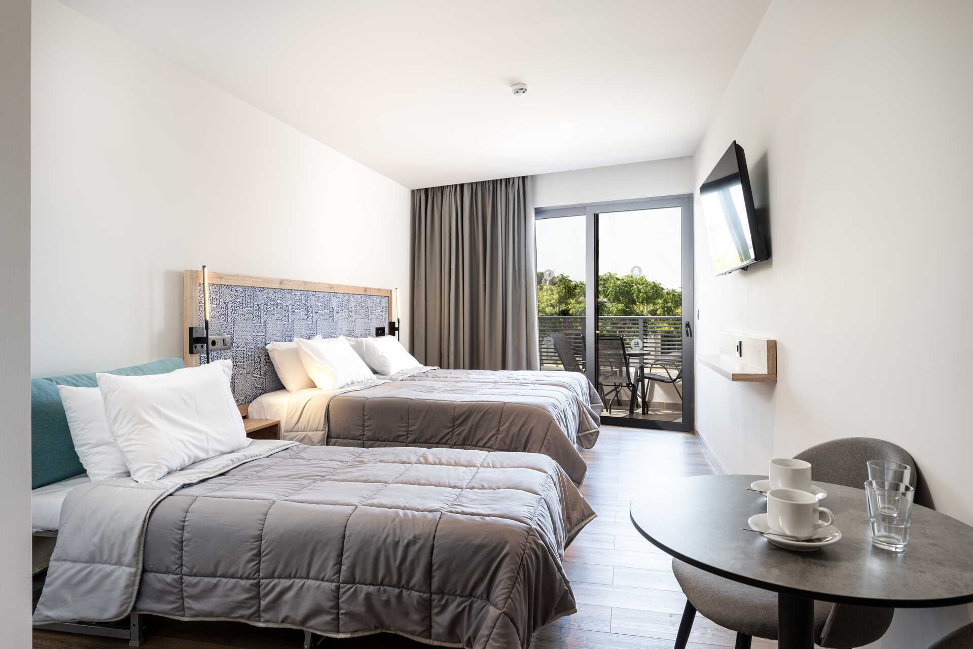 Dobbeltrom med balkong. En dobbeltseng eller to enkeltsenger. Mulig med ekstraseng i oppredbar lenestol. Wifi, luftkondisjonering og safe inkludert. Kjøleskap. Kaffemaskin – kapsler inkludert ved ankomst, påfyll mot avgift. TV. Badekåper og tøfler Hårføner. Baderom med dusj og wc. Rengjøring 6 ggr/uke.