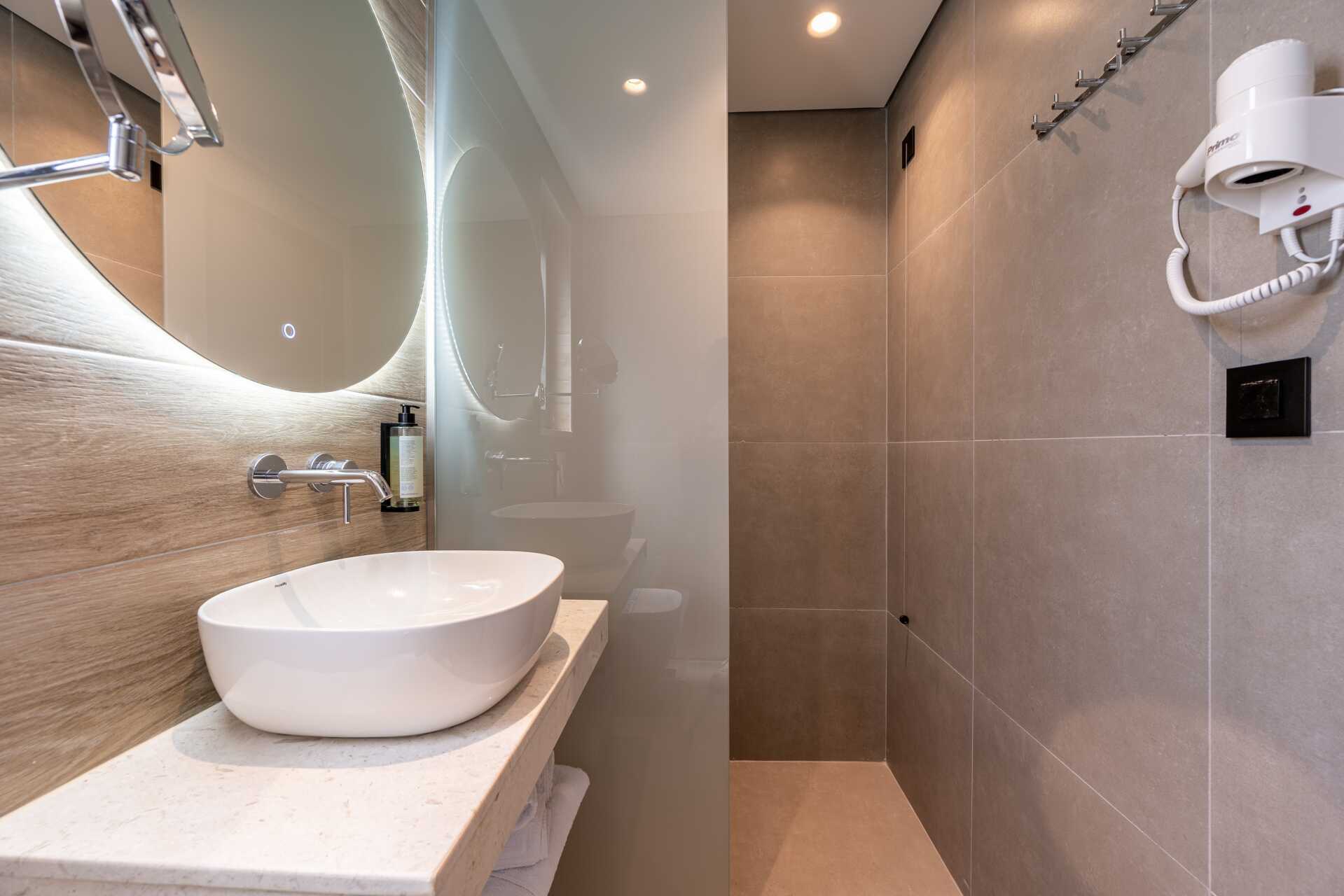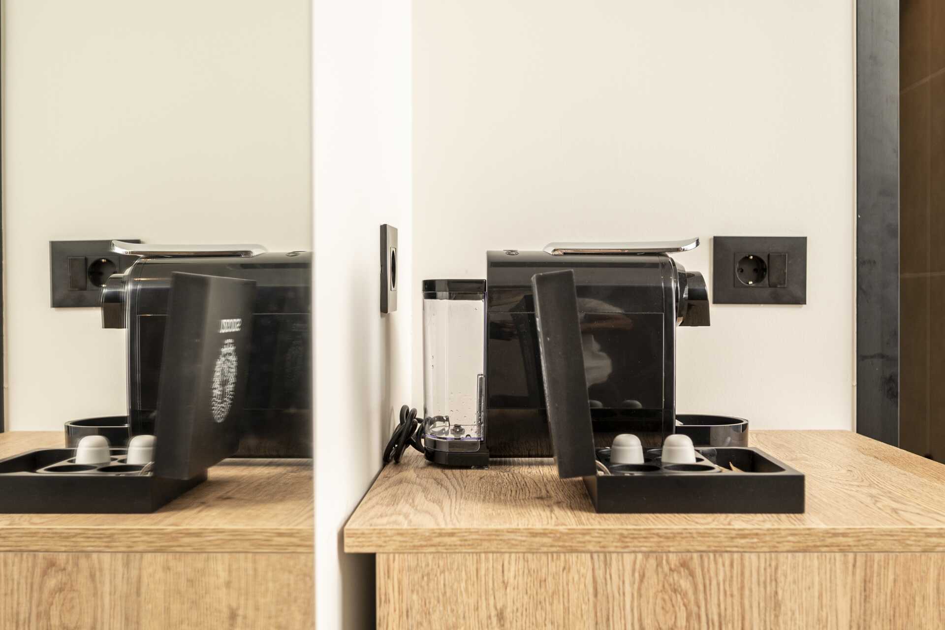 Dobbeltrom delvis under bakkeplan med markbalkong En dobbeltseng eller to enkeltsenger. Mulig med ekstraseng i oppredbar lenestol. Wifi, luftkondisjonering og safe inkludert. Kjøleskap. Kaffemaskin – kapsler inkludert ved ankomst, påfyll mot avgift. TV. Badekåper og tøfler Hårføner. Baderom med dusj og wc. Rengjøring 6 ggr/uke.