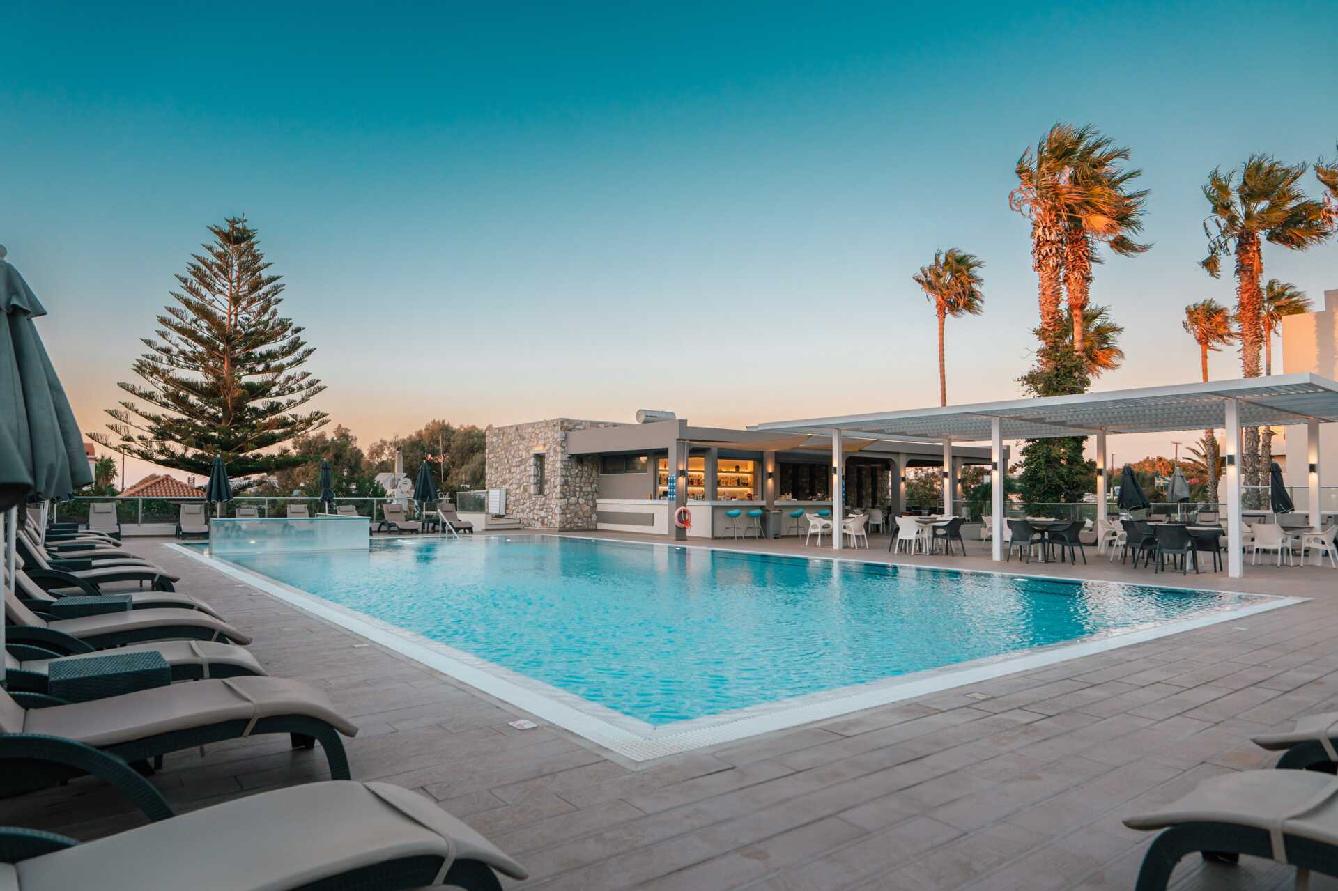 Velkommen til Cosmopolitan Kos – et moderne og stilig hotell i nærheten av den populære Lambi Beach. Her venter rolige dager ved bassenget, hvor du kan unne deg noe deilig fra hotellets poolbar. For de som liker å utforske øya, finnes det fine sykkelstier utenfor hotellet, som fører helt inn til sjarmerende Kos by.