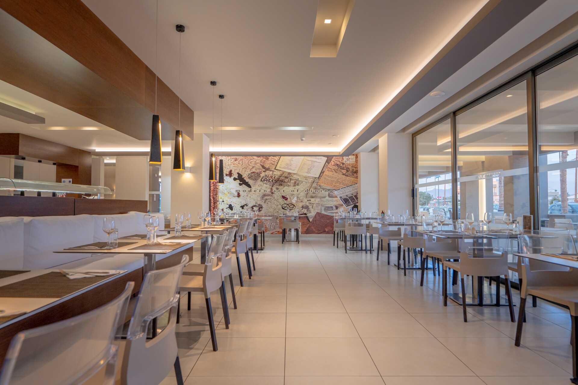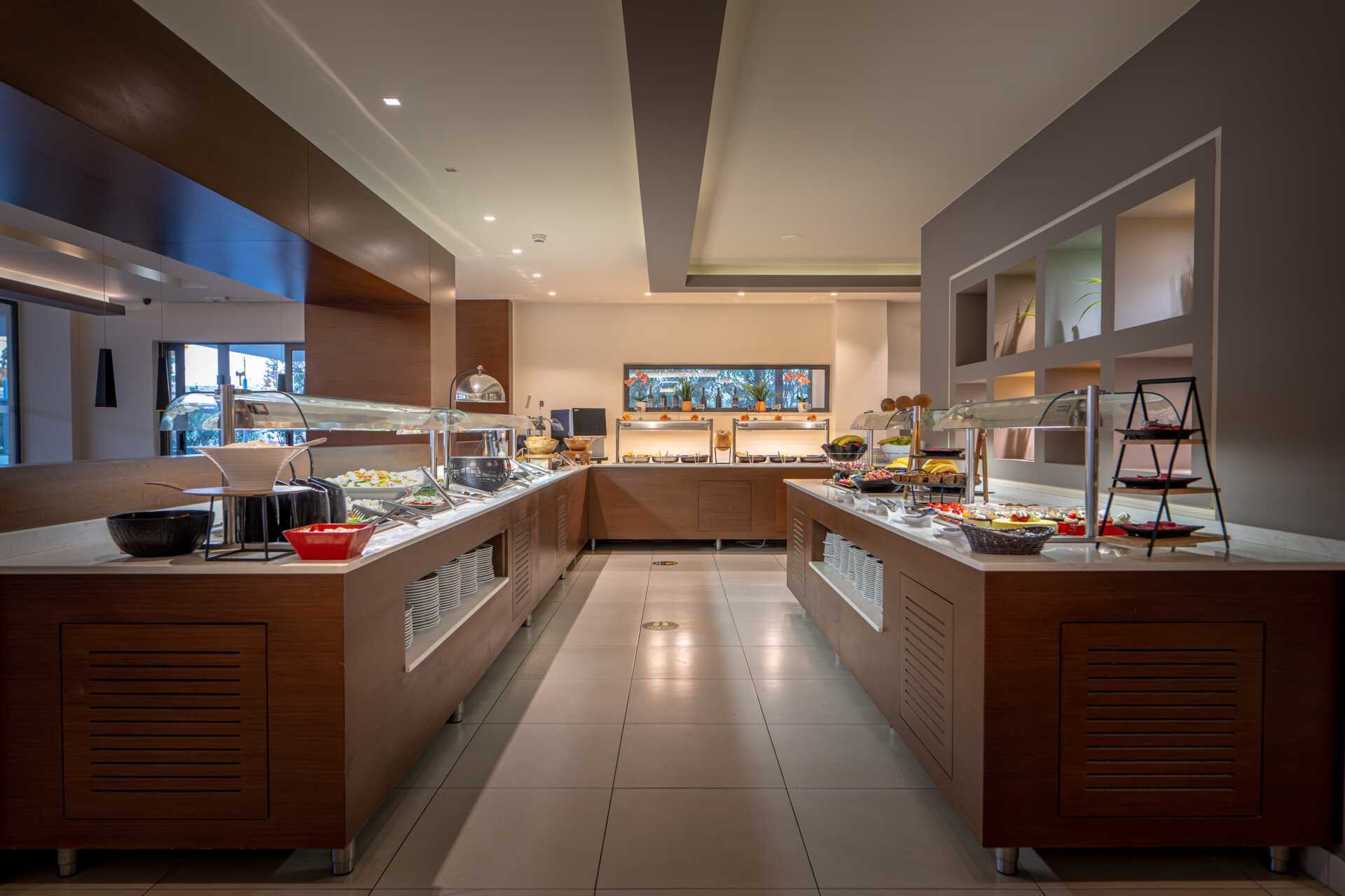 Hotellets bufférestaurant serverer frokost og middag med smaker fra Hellas og kjøkkenene rundt Middelhavet. På dagtid kan du spise lette måltider og salater i poolbaren , og deretter ta en god drink i hovedbaren eller lobbybaren som åpner mot kvelden.