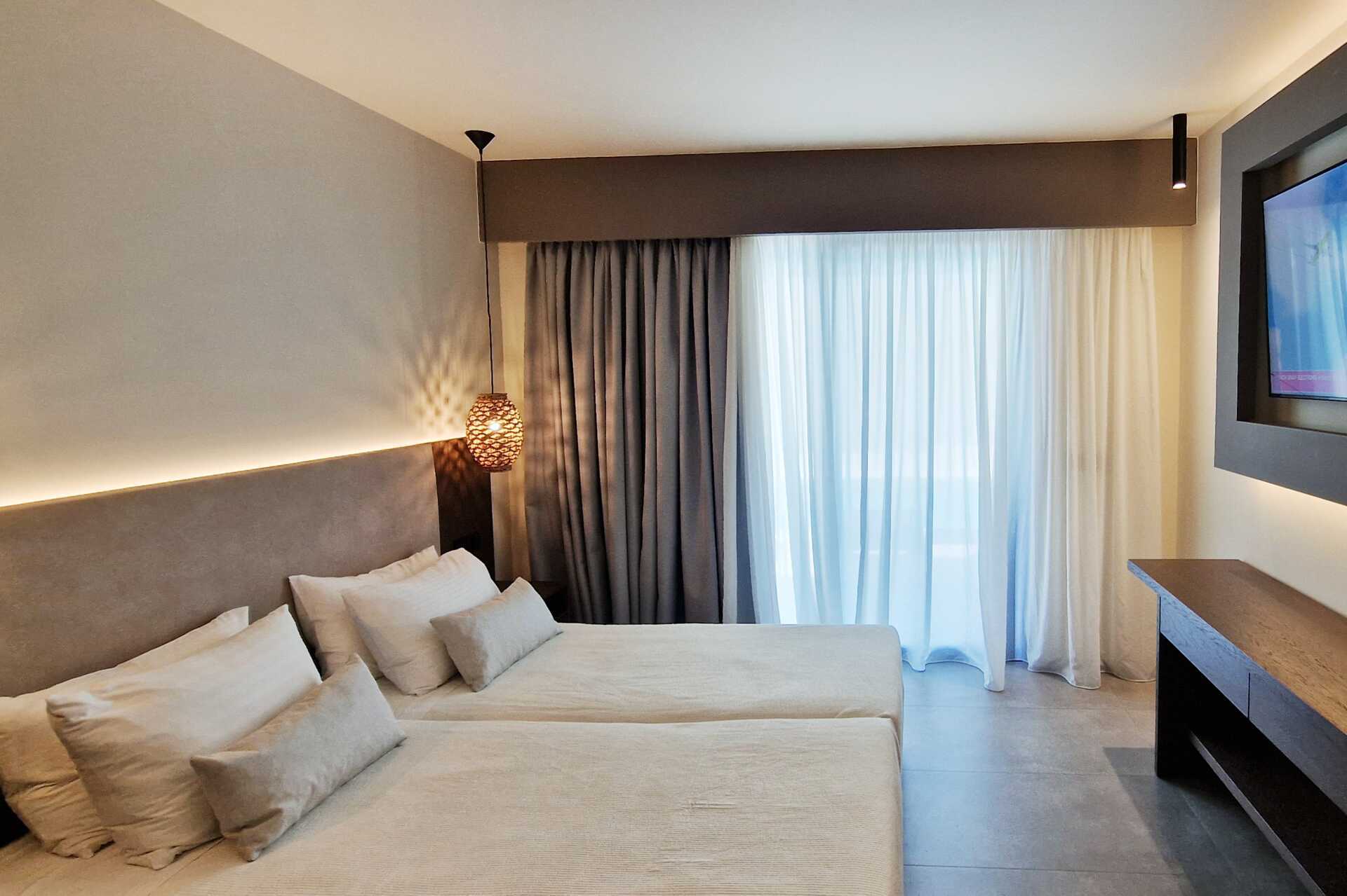 Juniorsuite med utgang til delt basseng. Juniorsuitene ligger i bygningen fra 2024. En dobbeltseng eller to enkeltsenger. Mulig med en ekstraseng i enkeltseng. Wifi, luftkondisjonering og safe inkludert. Kjøleskap. Vannkoker samt kaffe og te. Espressomaskin fra Krups, kapsler mot avgift. TV. Hårføner. Baderom med dusj og wc. Rengjøring 7 ggr/uke. Aldersgrensen er 16 år for å bo i denne romtypen.