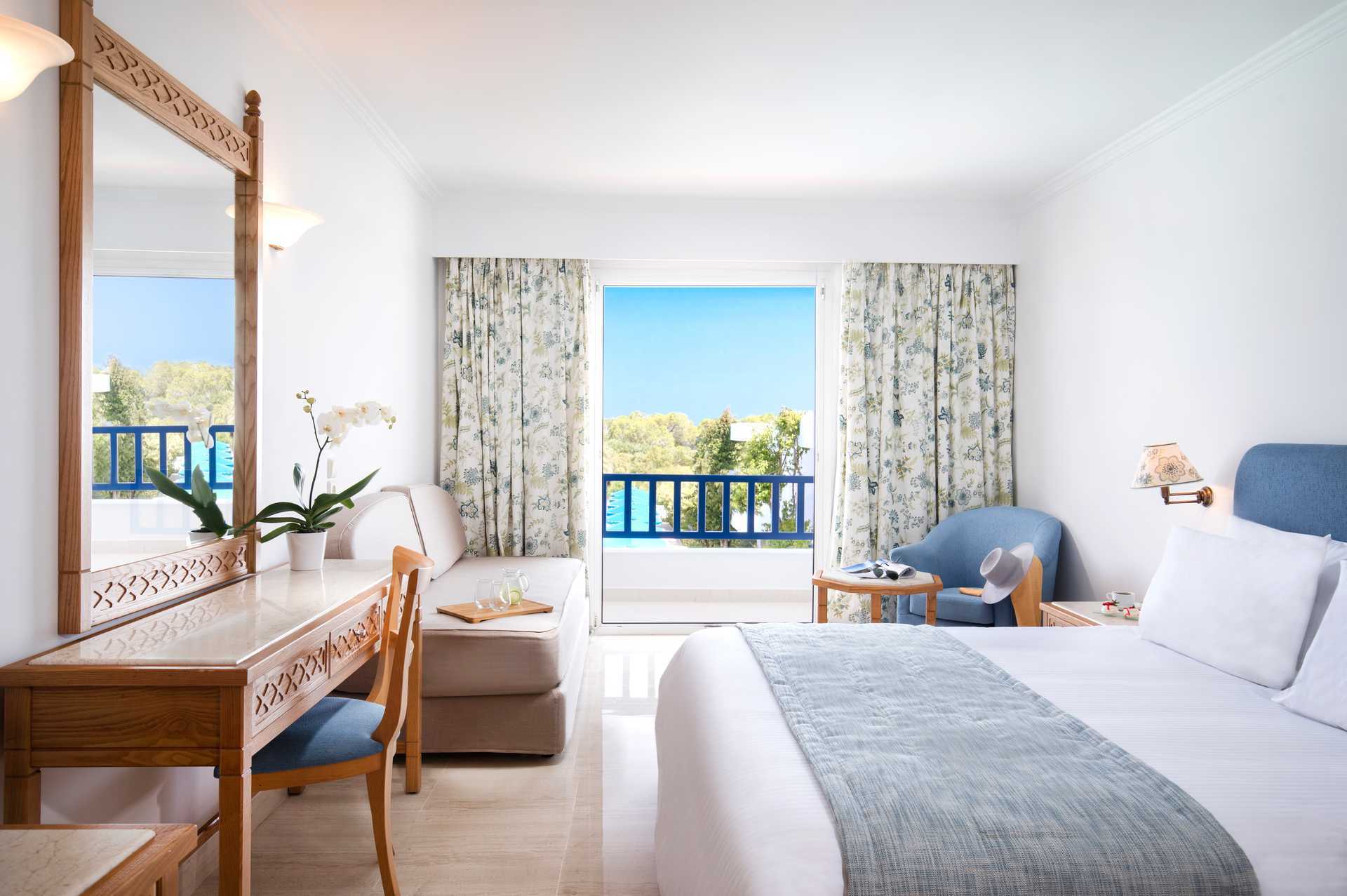 Dobbeltrom med balkong med havutsikt eller bassengutsikt. En dobbeltseng eller to enkeltsenger. Mulig med ekstrasenger i sovesofa. Wifi, safe og luftkondisjonering inkludert. Kjøleskap. Vannkoker samt kaffe og te. TV. Badekåper og tøfler Hårføner. Badekar og wc. Rengjøring 7 ggr/uke. Barn under 2 år regnes inn i maksantallet i rommet.