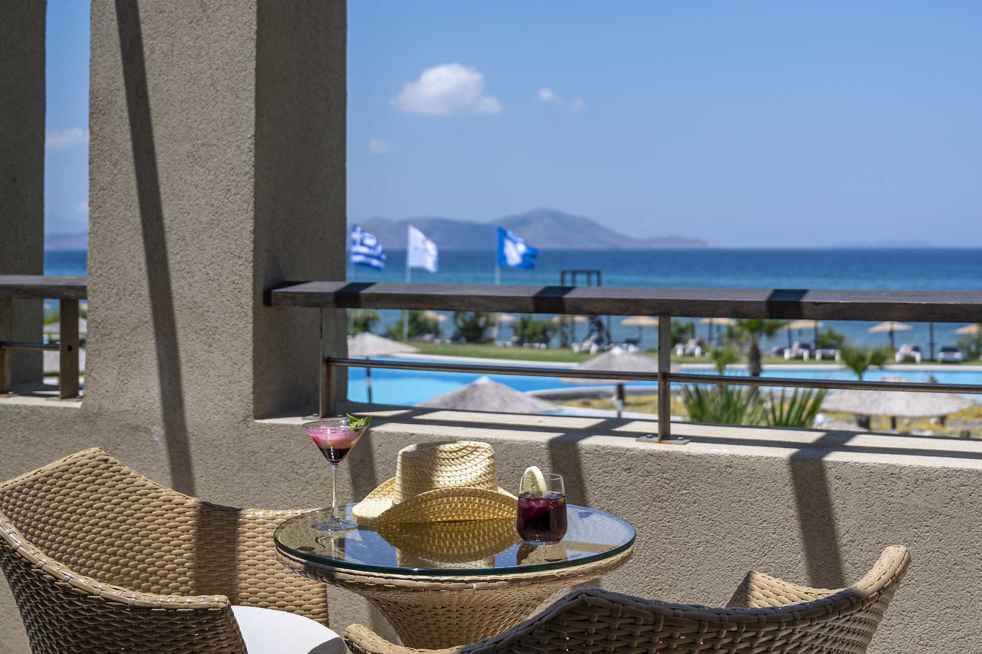 Dobbeltrom med balkong eller terrasse, noen med havutsikt. En dobbeltseng eller to enkeltsenger. Mulig med en ekstraseng i sovesofa. Wifi, luftkondisjonering og safe inkludert. Minibar. Vannkoker samt kaffe og te. TV. Hårføner. Badekar eller dusj samt wc. Rengjøring 7 ggr/uke.