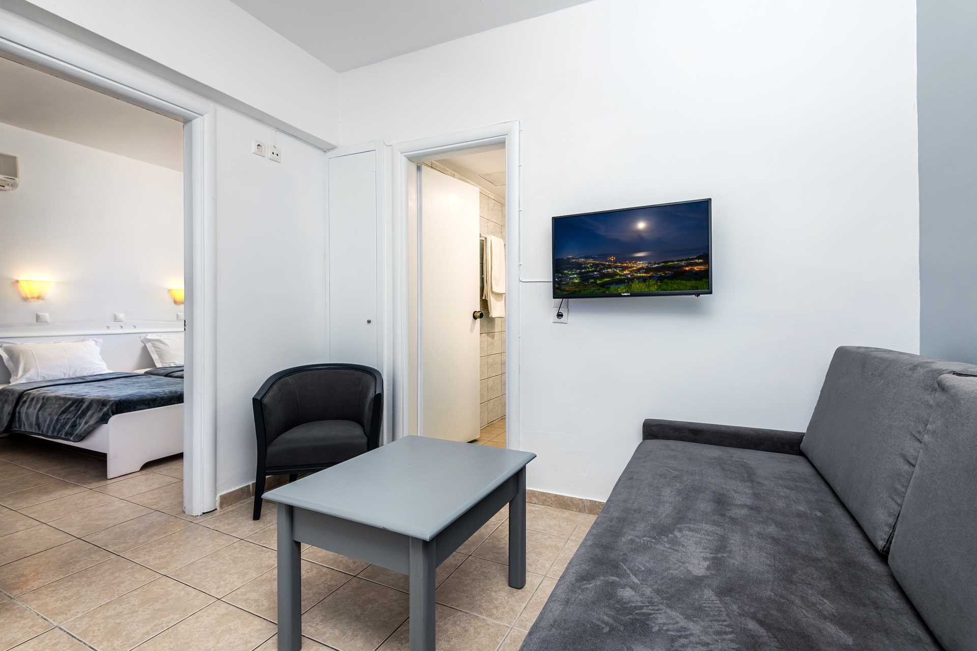 Familierom med balkong eller terrasse. Familierommet består av et soverom og en stue. En dobbeltseng eller to enkeltsenger. Mulig med ekstraseng i enkeltseng. Wifi og luftkondisjonering inkludert. Safe mot avgift. Kjøleskap. Vannkoker samt kaffe og te. TV. Hårføner. Badekar eller dusj samt wc. Rengjøring 5 ggr/uke.