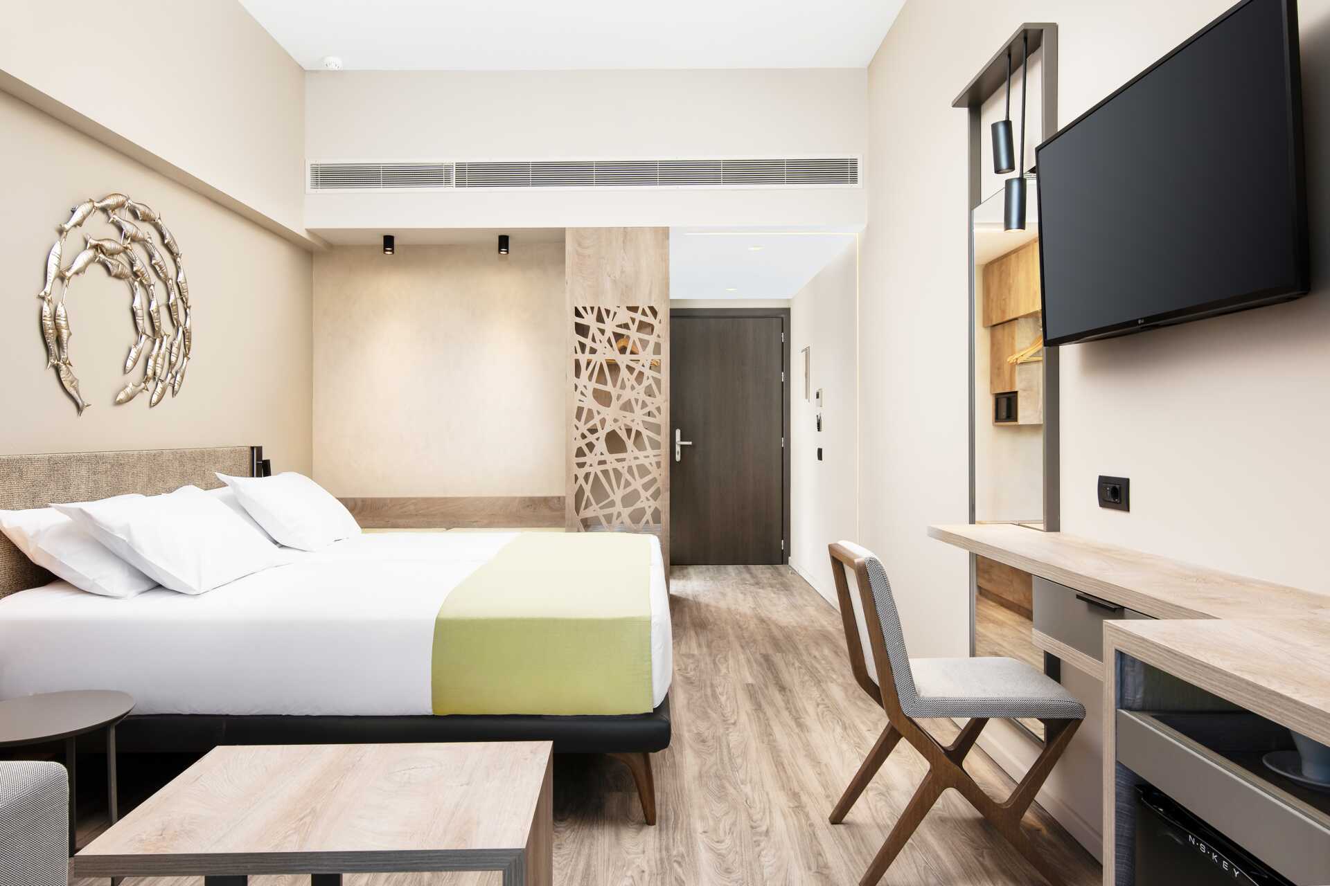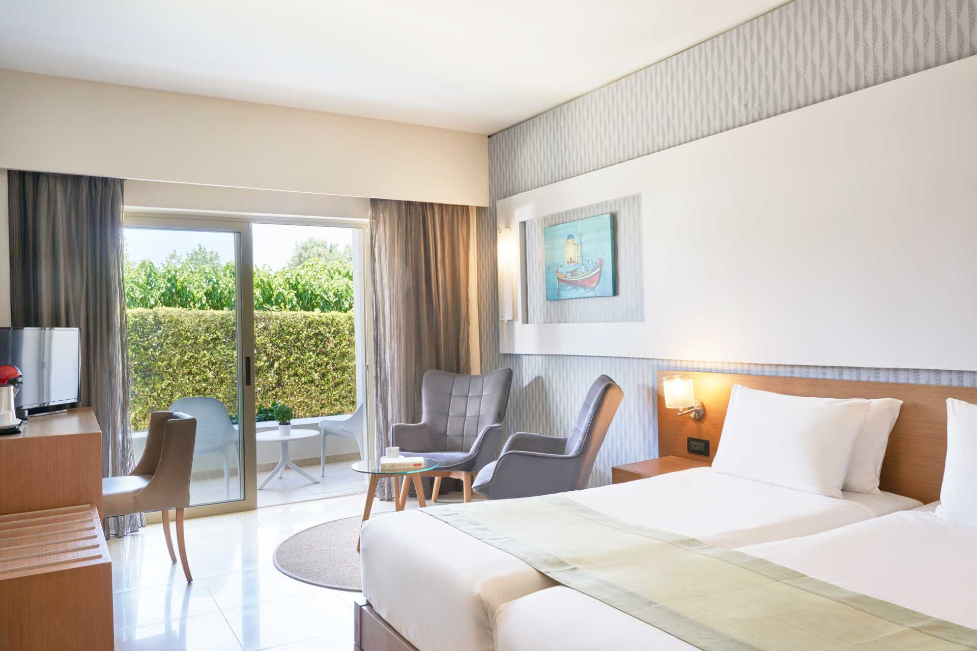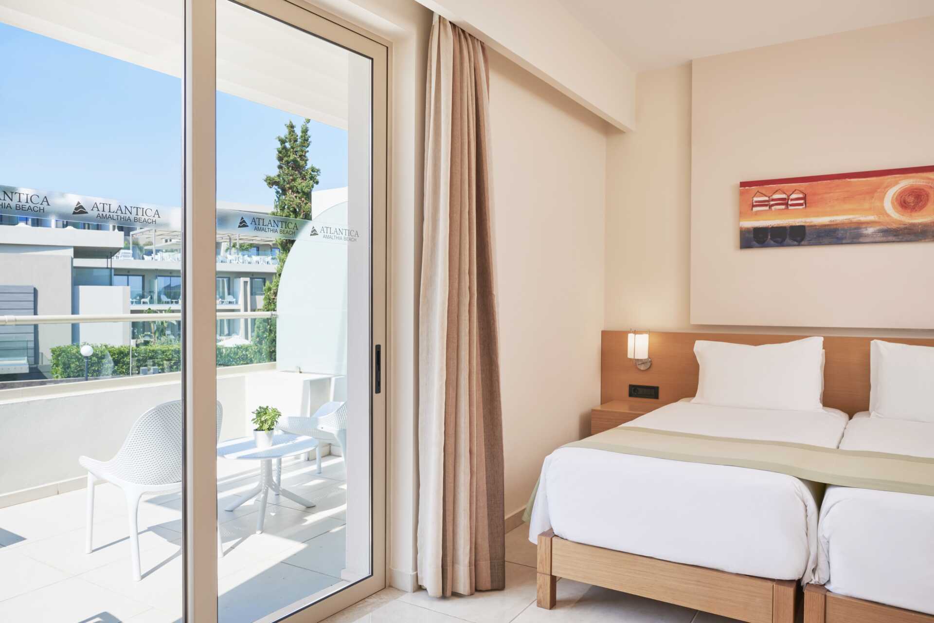 Superiorrom med balkong eller terrasse. En dobbeltseng eller to enkeltsenger. Wifi, luftkondisjonering og safe inkludert. Kjøleskap. Vannkoker samt kaffe og te. TV. Hårføner. Dusj og wc. Rengjøring 7 ggr/uke.