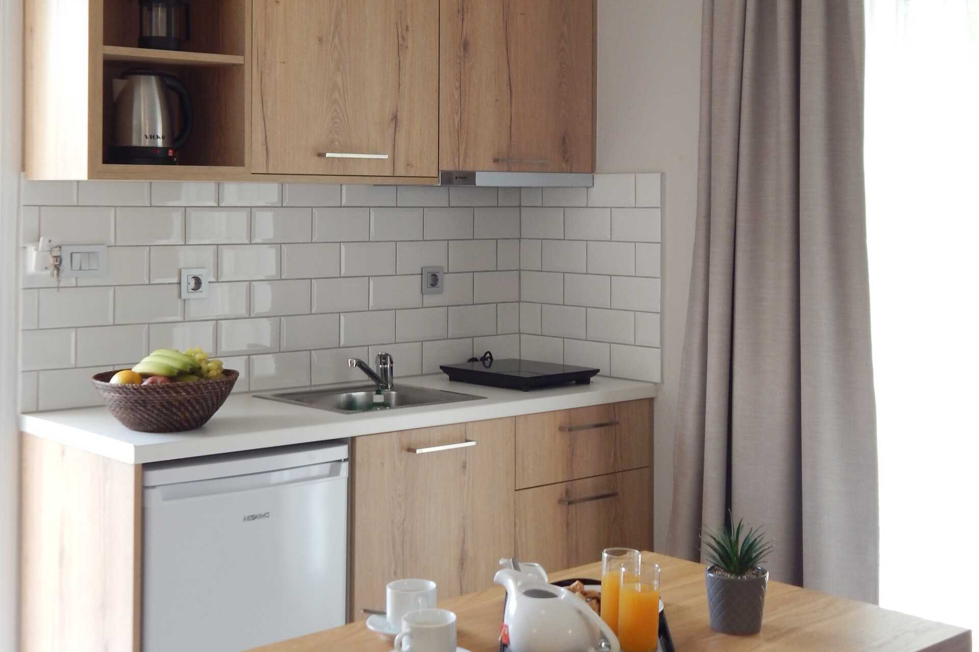 Ettromsleilighet med balkong eller markterrasse. Minikjøkken. En dobbeltseng eller to enkeltsenger. Minikjøkken med kokeplater, kjøleskap med fryser, vannkoker og enkelt kjøkkenutstyr. Wifi og luftkondisjonering er inkludert. Safe mot avgift. Hårføner. Dusj og wc. Rengjøring 6 ggr/uke.