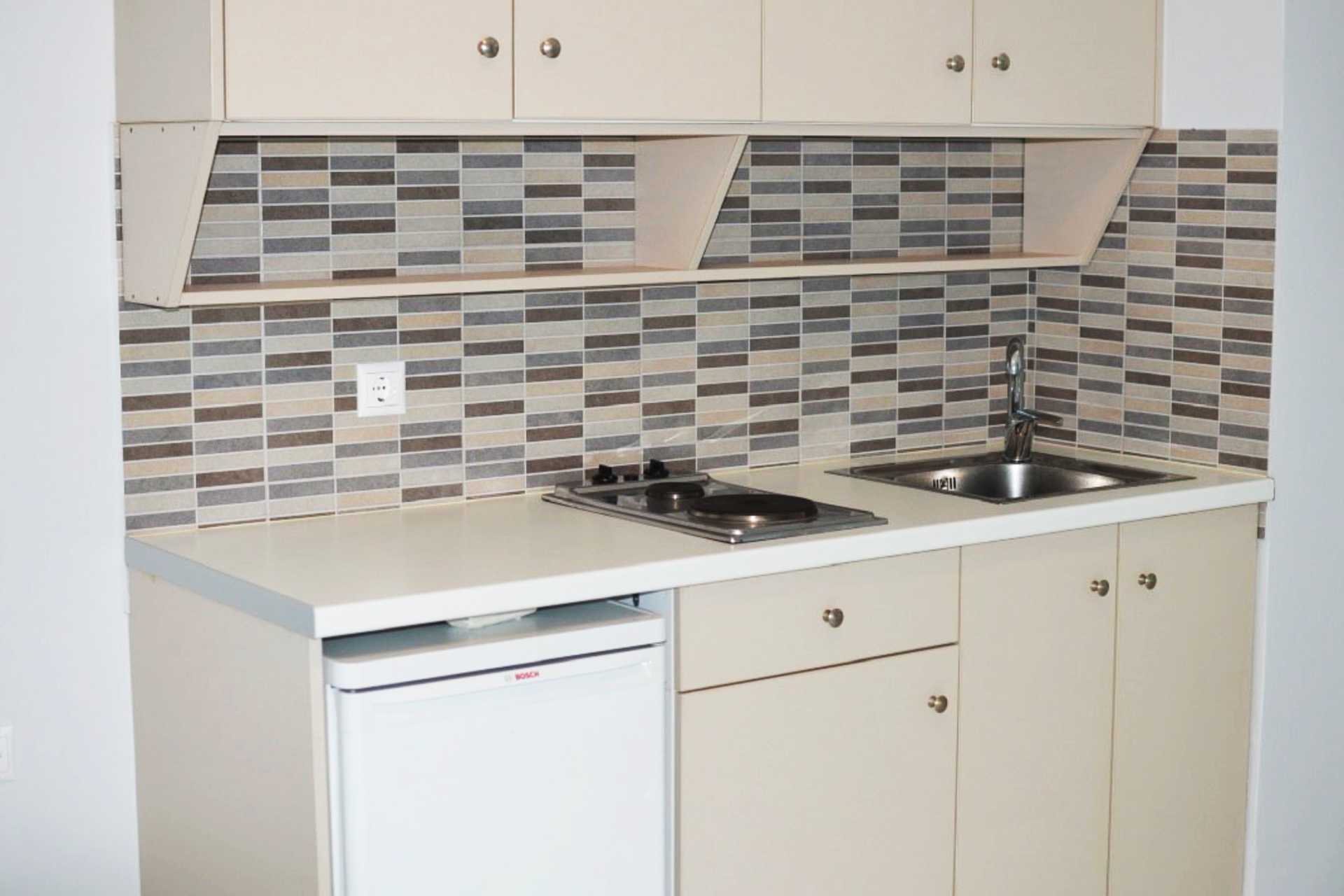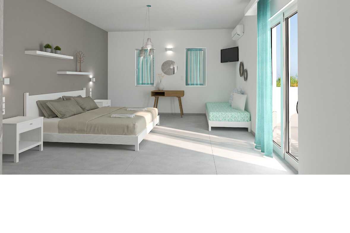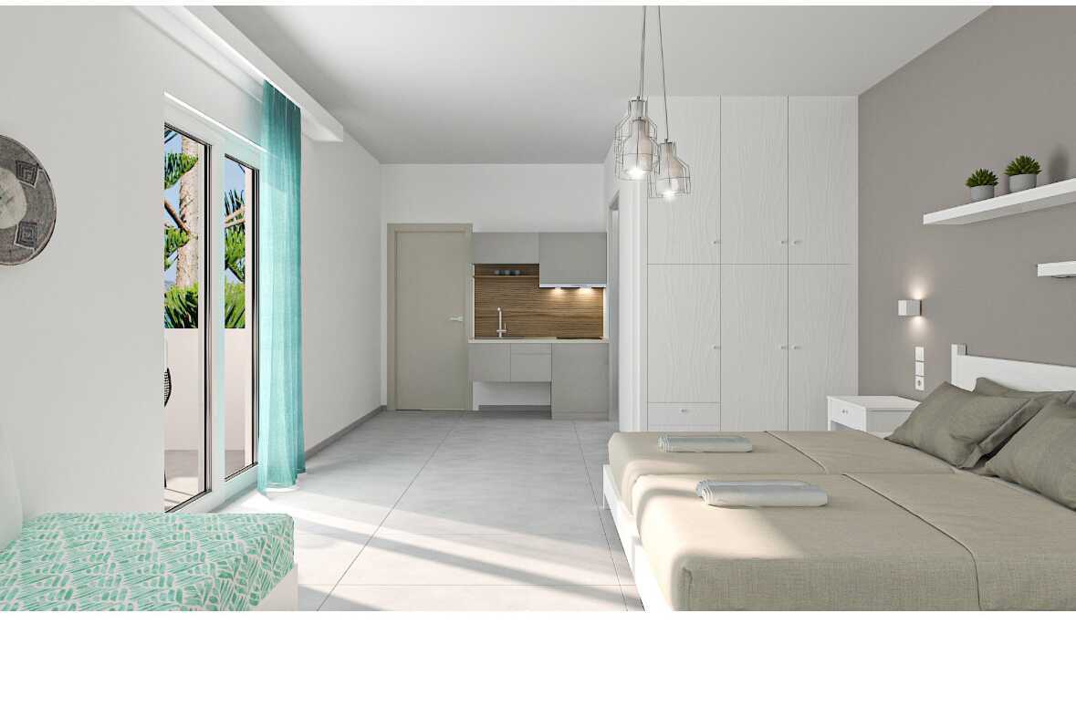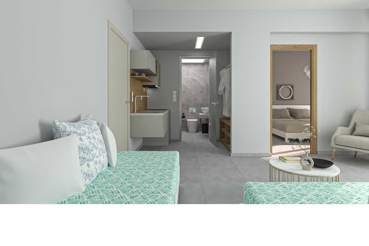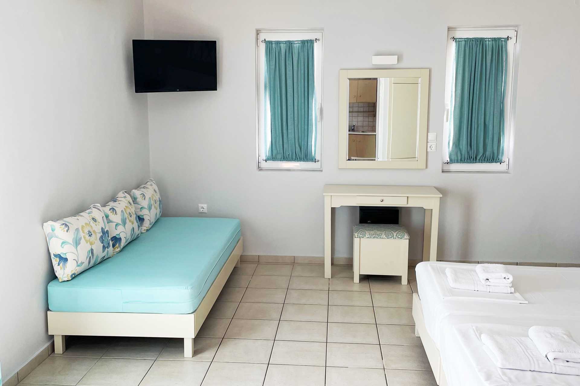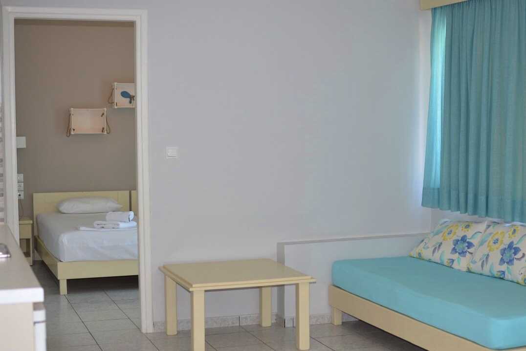 Ettromsleilighet superior med balkong eller terrasse. Leilighetene ble renoverte til sommeren 2023. Kombinert soverom og minikjøkken. To enkeltsenger. Mulig med ekstraseng i sovesofa eller feltseng. Minikjøkken med kokeplater, kjøleskap, brødrister, kaffetrakter og enkelt kjøkkenutstyr. Wifi, luftkondisjonering og safe inkludert. TV. Hårføner. Baderom med dusj og wc. Rengjøring 6 ggr/uke.