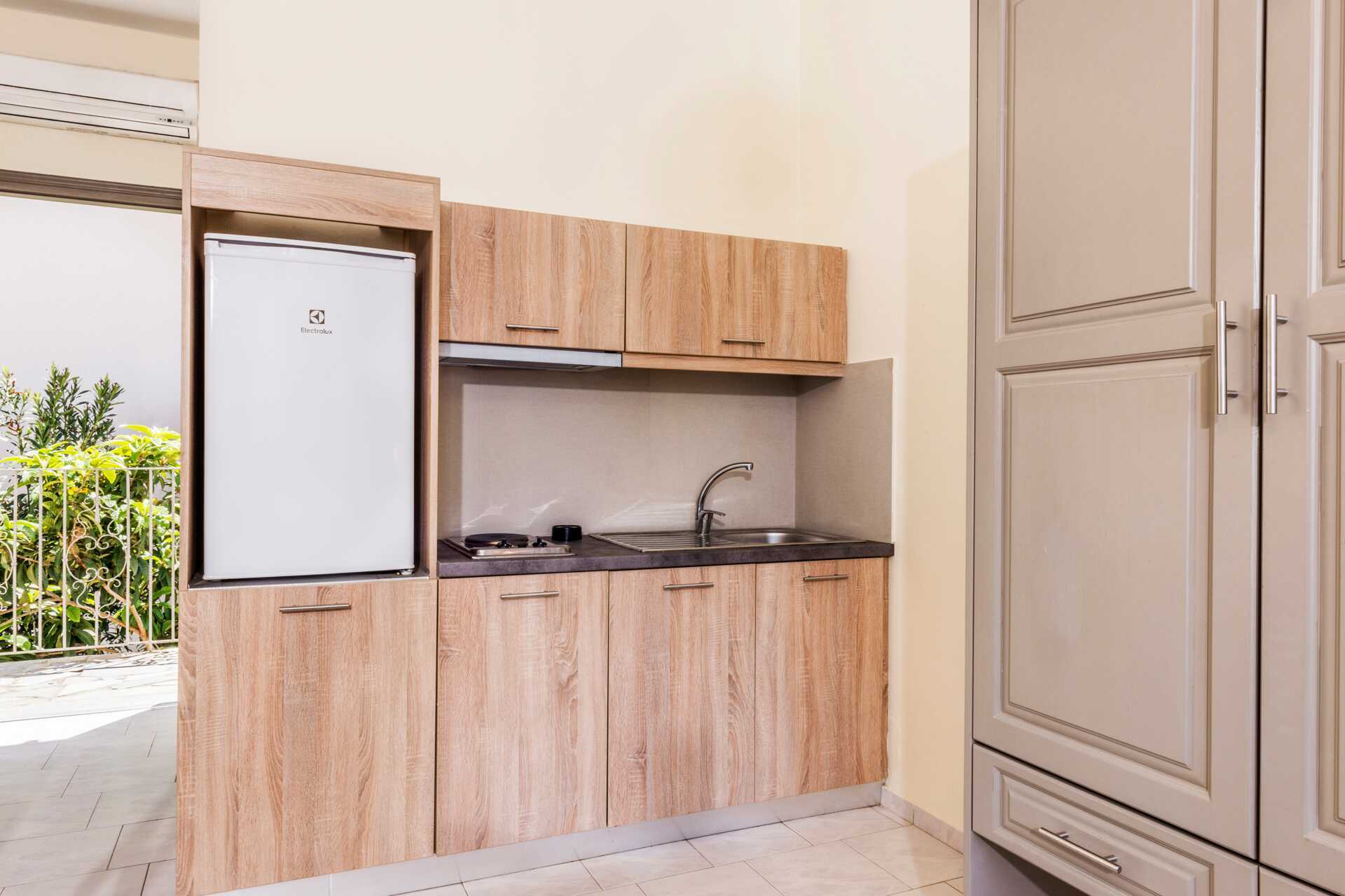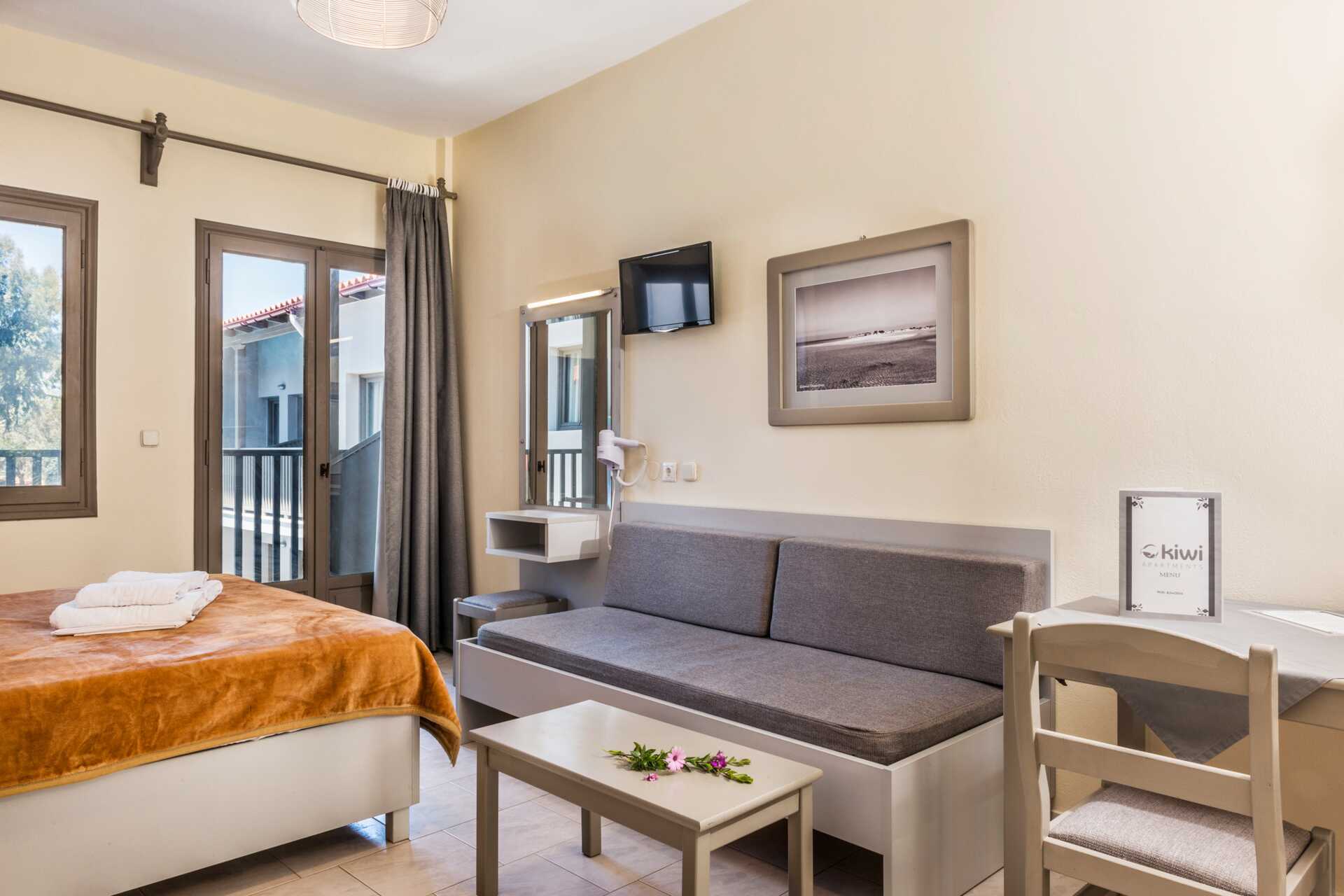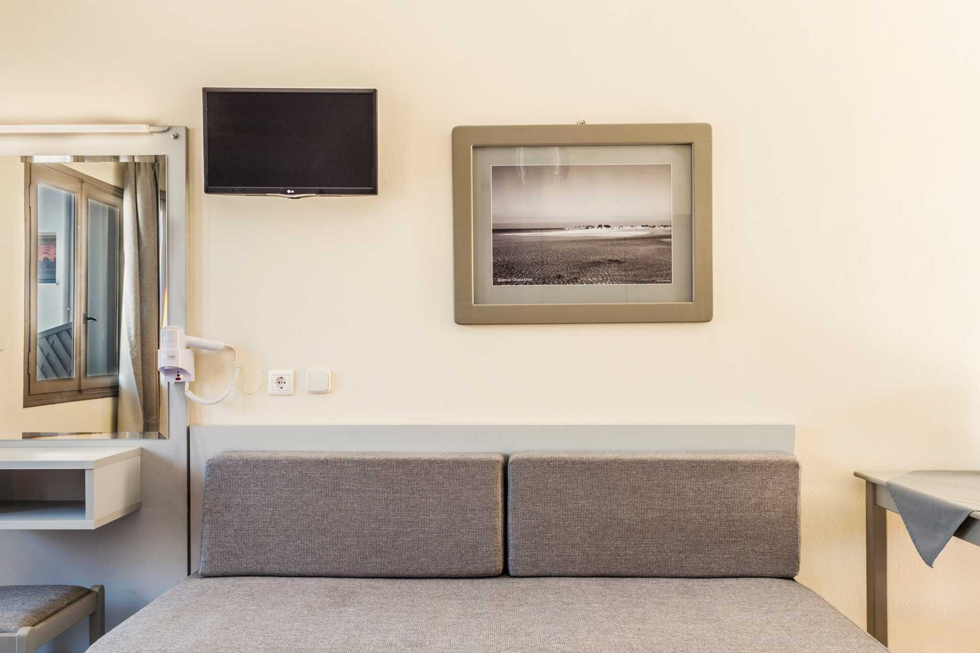 Ettromsleilighet med balkong med utsikt over bassenget eller markbalkong. Soverom og oppholdsrom med minikjøkken i ett. En dobbeltseng eller to enkeltsenger. Mulig med en ekstraseng i sovesofa. Minikjøkken med kjøleskap, kokeplater, stekeovn, vannkoker og enkelt kjøkkenutstyr. Wifi og luftkondisjonering er inkludert. Safe mot avgift. TV med lokale kanaler. Hårføner. Badekar eller dusj samt wc. Rengjøring 6 ggr/uke.