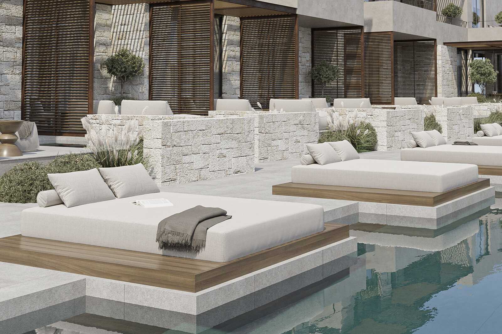 Dobbeltrom med eget basseng på markterrassen. En dobbeltseng. I noen rom er det mulighet for en ekstra enkeltseng. Wifi, luftkondisjonering og safe inkludert. Kjøleskap. TV. Badekåper. Hårføner. Baderom med dusj og wc. Rengjøring 7 ggr/uke.