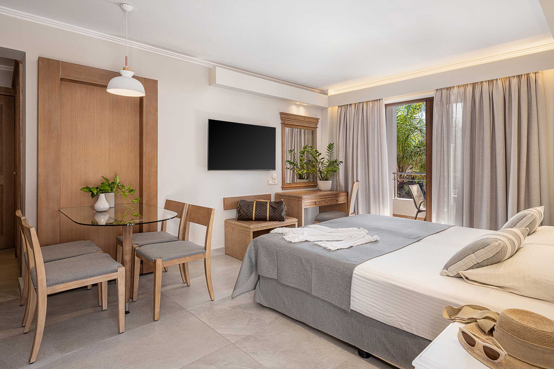 Ettromsleiligheter med balkong eller markbalkong i ulike former og størrelser, noen balkonger har bassengutsikt. Leilighetene varierer i størrelse og utseende. Kombinert soverom og minikjøkken. En dobbeltseng eller to enkeltsenger. Mulig med en ekstraseng i sovesofa. Minikjøkken med kokeplater, kjøleskap, vannkoker, kaffetrakter/presskanne og enkelt kjøkkenutstyr. Wifi og luftkondisjonering inkludert. Safe mot avgift. TV. Hårføner. Dusj og wc. Rengjøring 6 ggr/uke.