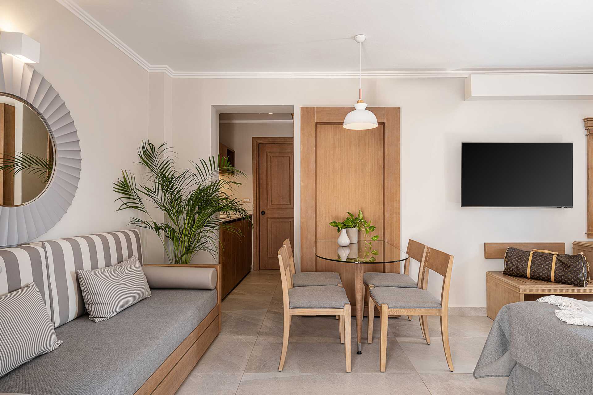 Toromsleiligheter med balkong eller markbalkong av varierende design og størrelse, noen med bassengutsikt. Leilighetene er av varierende størrelse og utseende. Et soverom og en stue med minikjøkken. To enkeltsenger eller en dobbeltseng. Mulig med en ekstraseng i sovesofa. I leilighetene som tar 5 personer er en av ekstrasengene plassert inne på soverommet. Minikjøkken med kokeplater, kjøleskap, vannkoker, kaffetrakter/presskanne og enkelt kjøkkenutstyr. Wifi og luftkondisjonering inkludert. Depositum mot ekstra kostnad. TV. Hårføner. Dusj og wc. Rengjøring 6 ggr/uke.