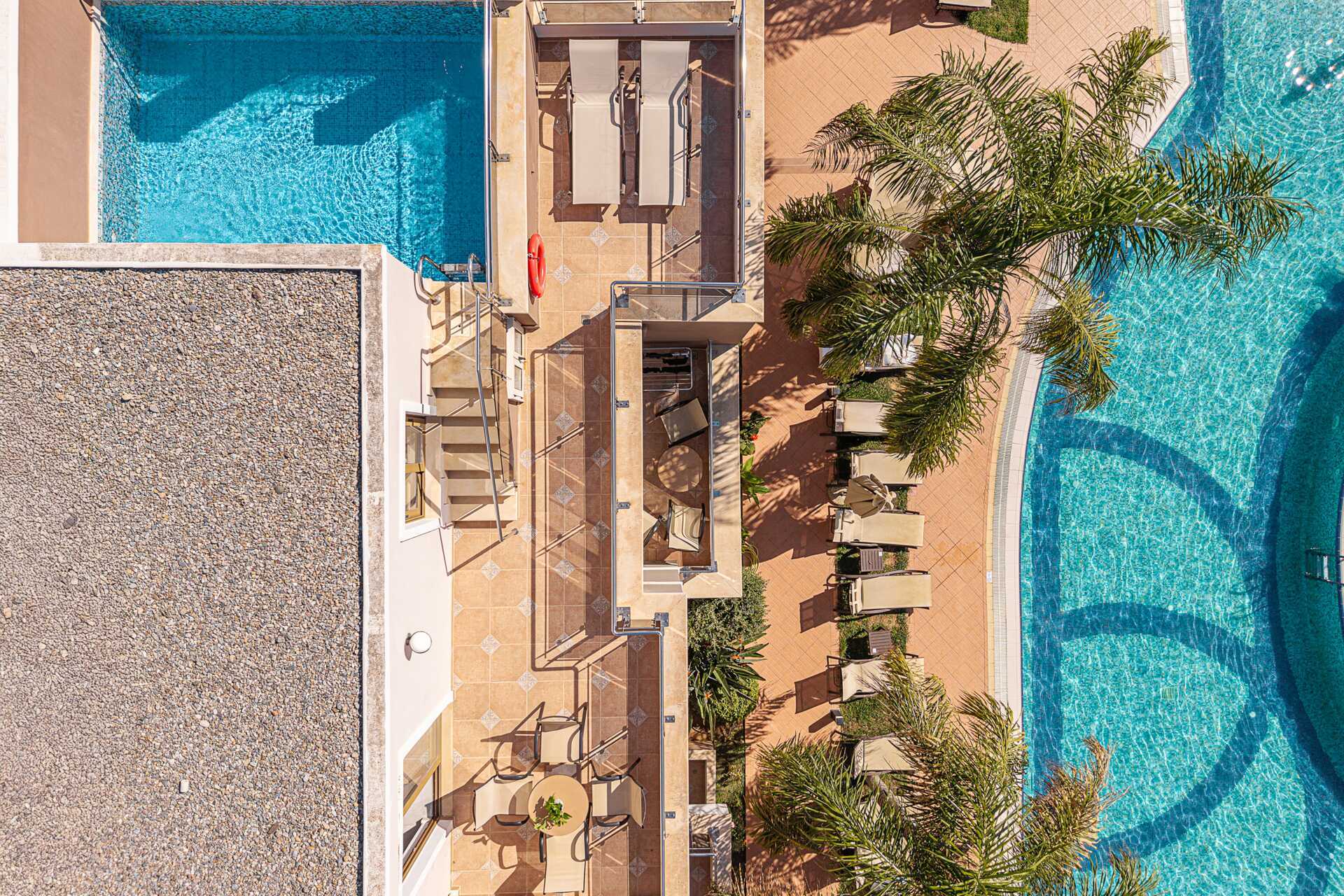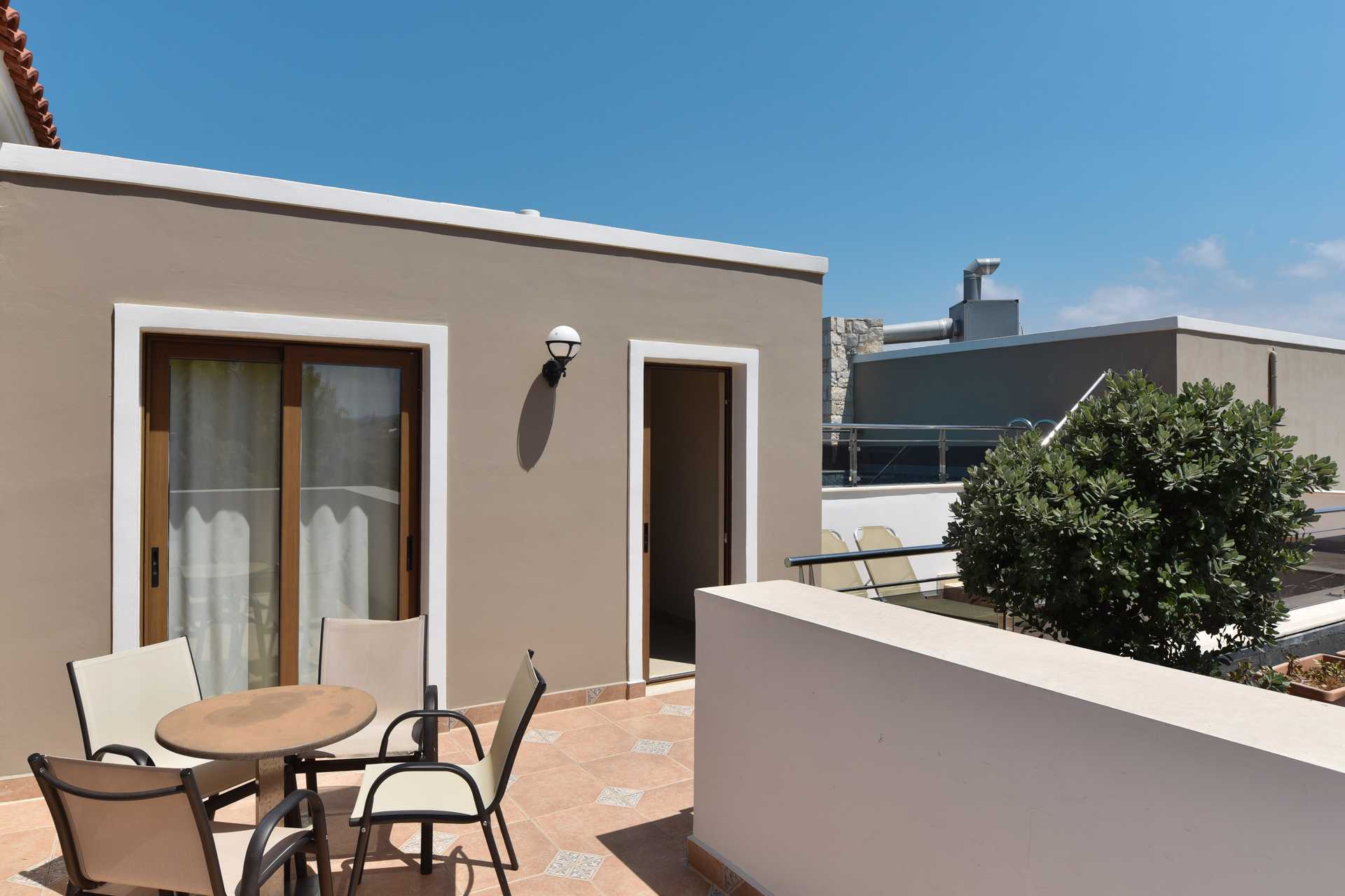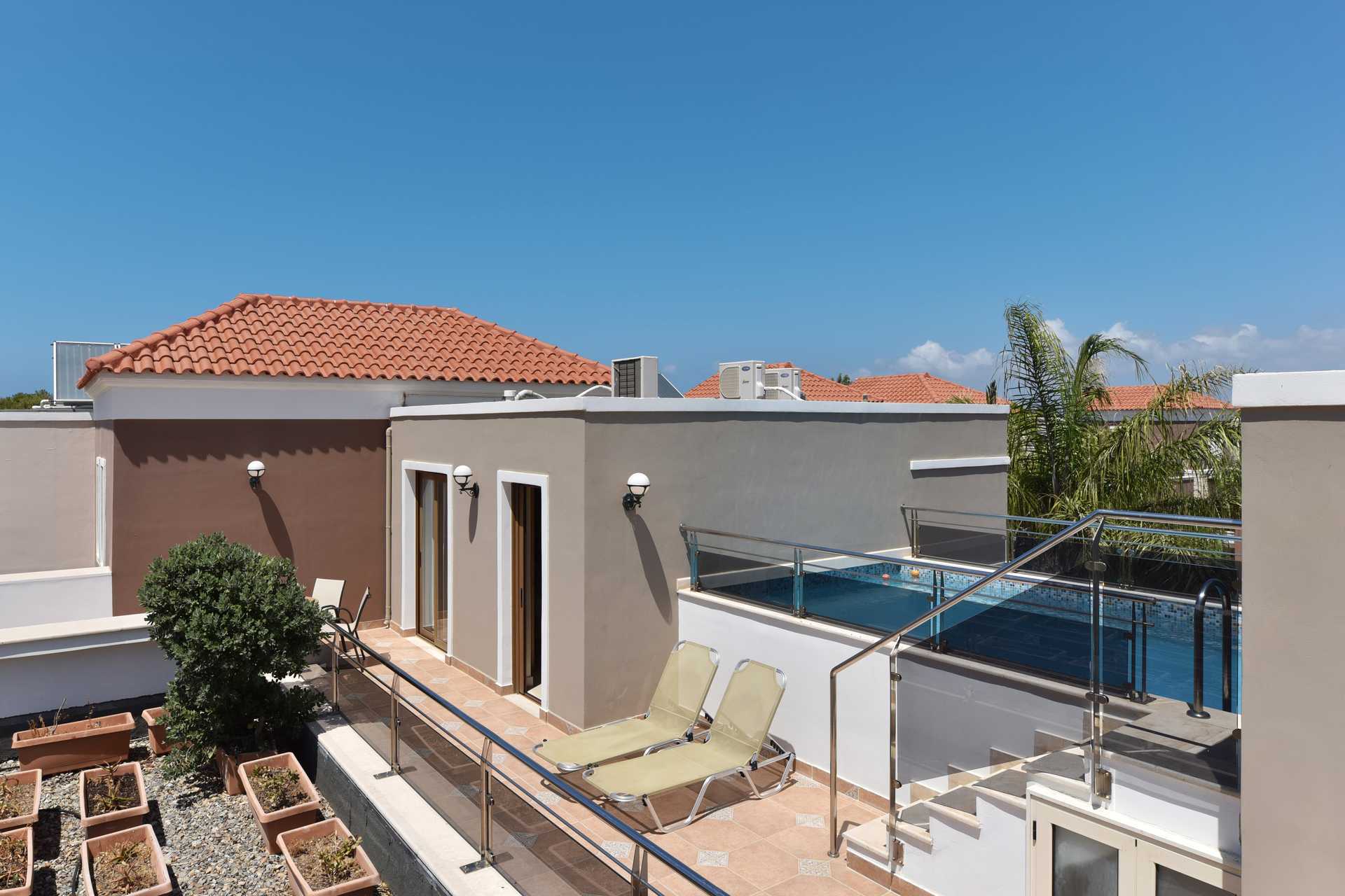 Toromsleiligheter med eget basseng, beliggende i tredje etasje. Balkong i ulike former og størrelser med bassengutsikt. Det egne bassenget er tilgjengelig via en trapp fra balkongen. Leilighetene er av varierende størrelse og utseende, og består av et soverom og kombinert stue med minikjøkken. To enkeltsenger eller en dobbeltseng. Mulig med en ekstraseng i sovesofa. Minikjøkken med kokeplater, kjøleskap, vannkoker, kaffetrakter/presskanne og enkelt kjøkkenutstyr. Wifi og luftkondisjonering inkludert. Depositum mot ekstra kostnad. TV. Hårføner. Dusj og wc. Rengjøring 6 ggr/uke.