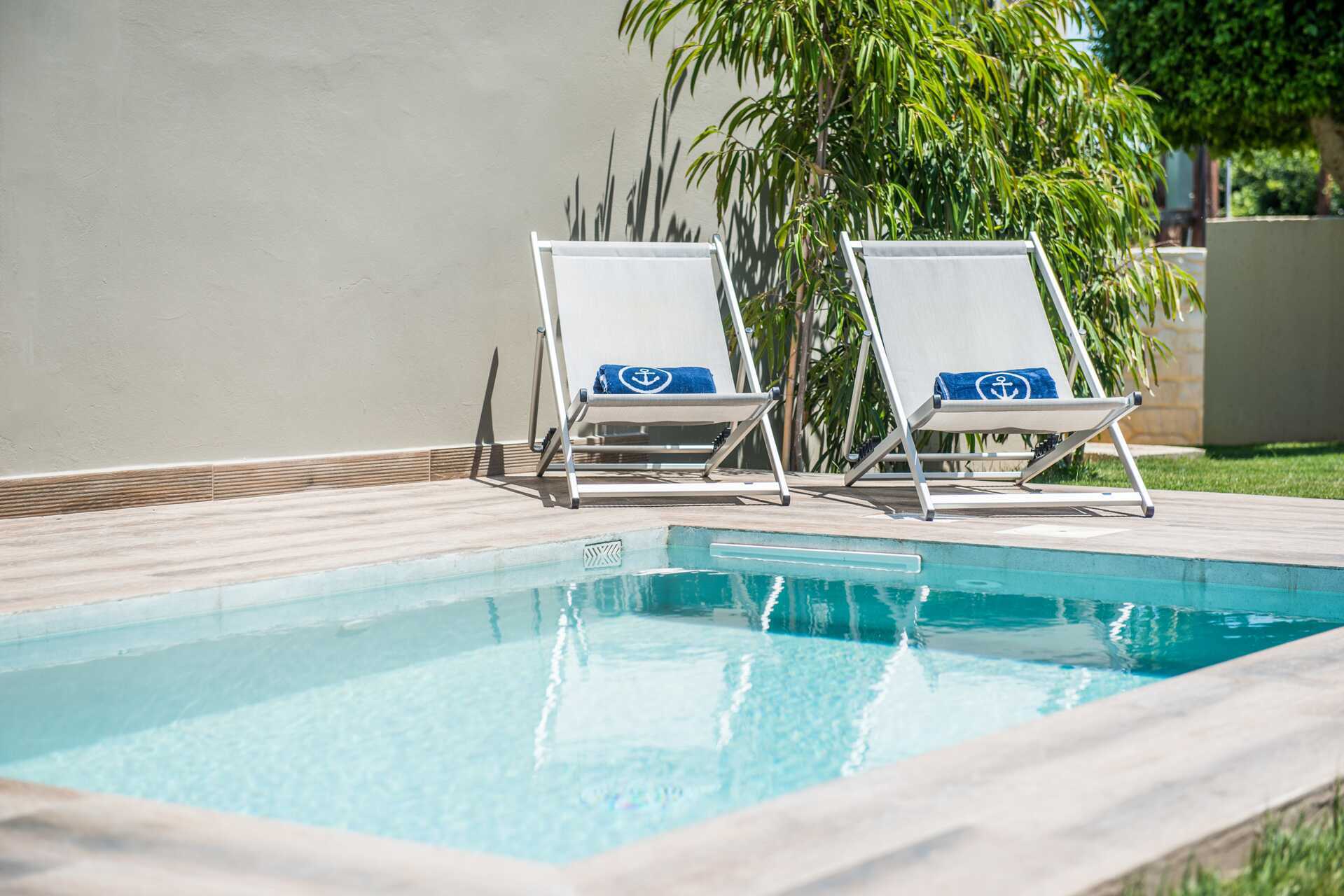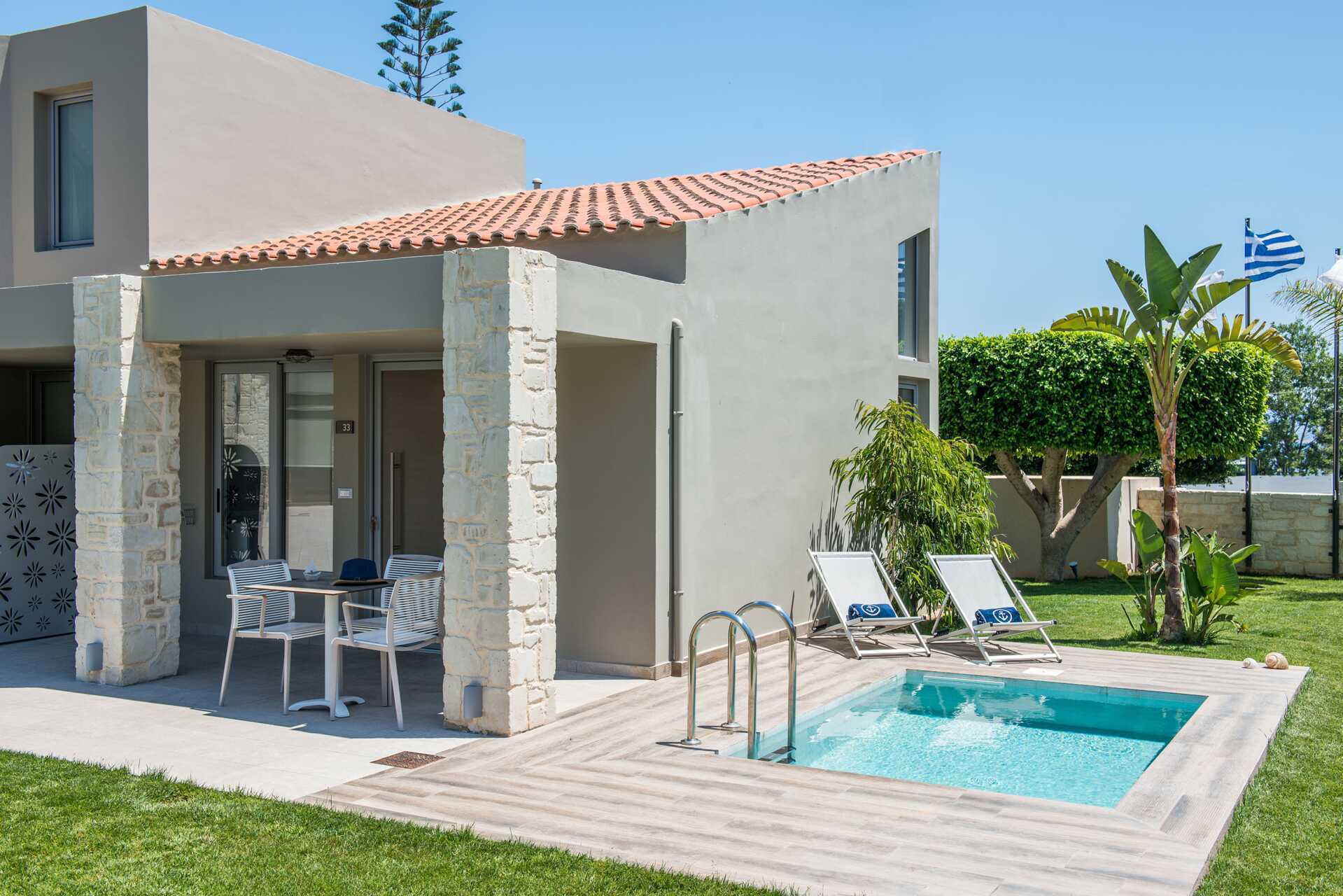 Her kan du tilbringe dagene ved et av de tre bassengområdene og for de minste er det også to separate barnebasseng, ett ved Village og ett på Royal. Bassenget på Elina er oppvarmet til slutten av mai og fra første oktober. Solsenger og parasoller ved bassengområdene tilbys uten avgift. Bassenghåndklær inkludert. Ønsker du å ta en dukkert i havet, er du i gangavstand fra den grunne stranden Chryssi Akti, hvor det også er solsenger og parasoller mot avgift.