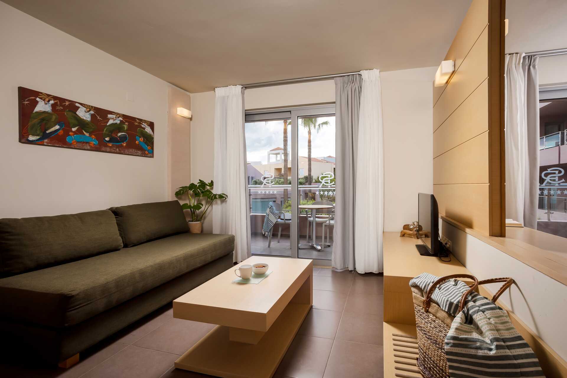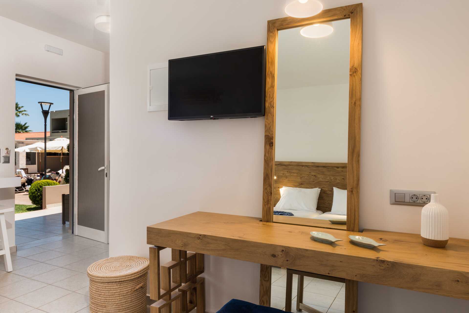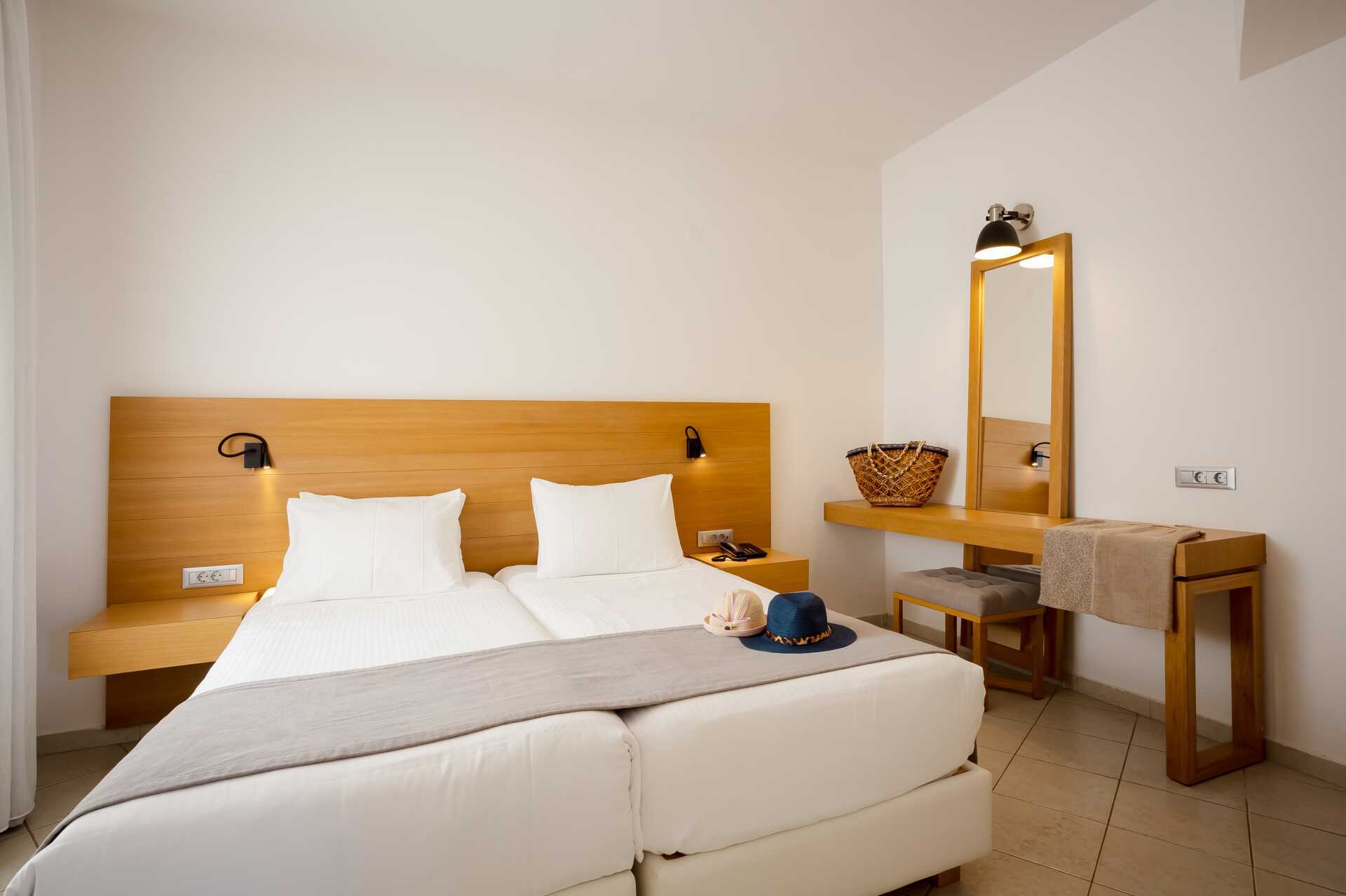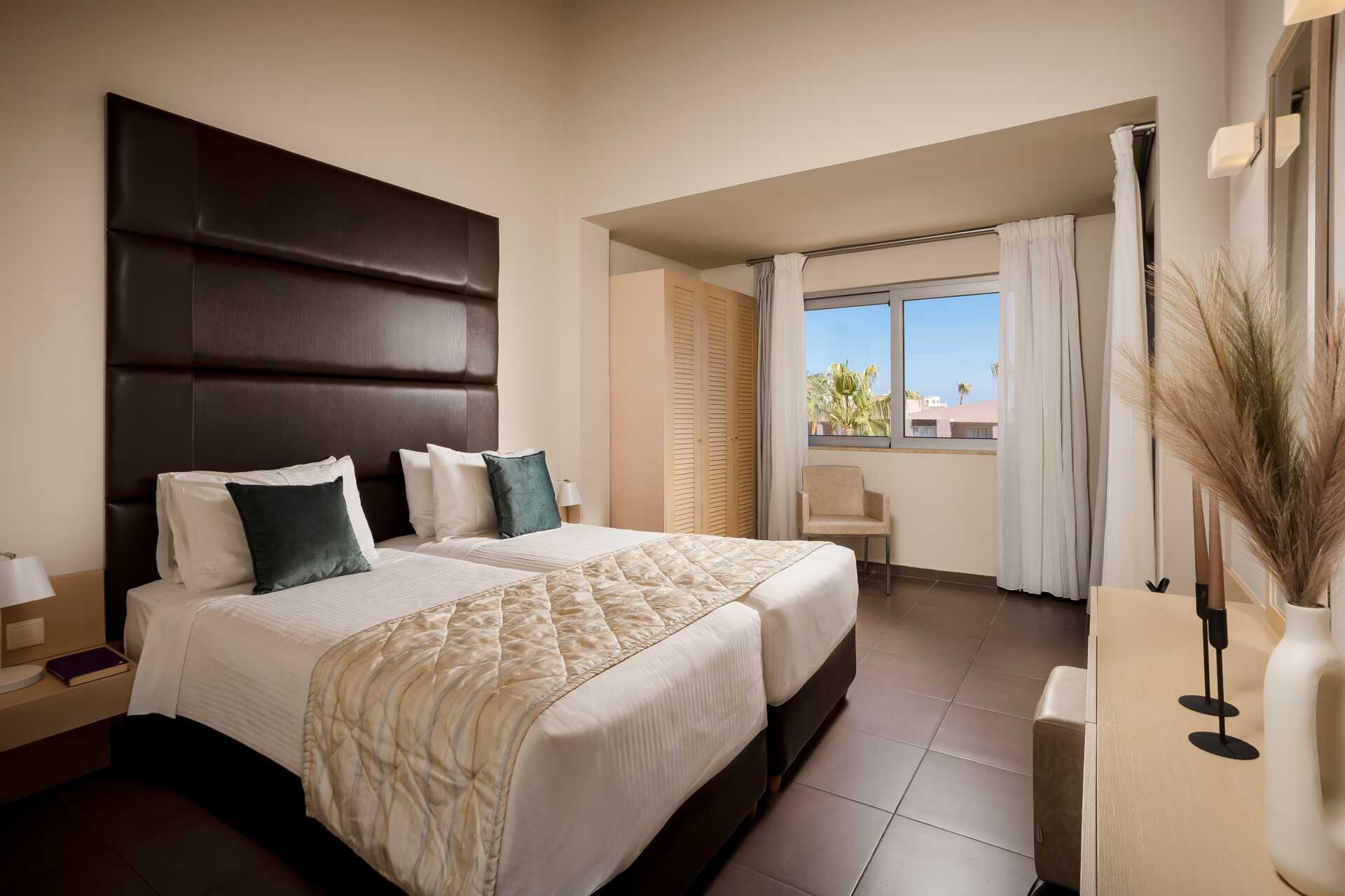 Treromsleilighet med balkong med bassengutsikt eller stor balkong med bassengutsikt. Leilighetene ligger i landsbydelen. To soverom og en stue med minikjøkken. To enkeltsenger i hvert soverom. Minikjøkken med kokeplater, kjøleskap, kaffetrakter, vannkoker og enkelt kjøkkenutstyr. Wifi, luftkondisjonering og safe inkludert. Klimaanlegg er tilgjengelig på alle rom. TV. Hårføner. Badekar eller dusj samt wc. Rengjøring 6 ggr/uke.