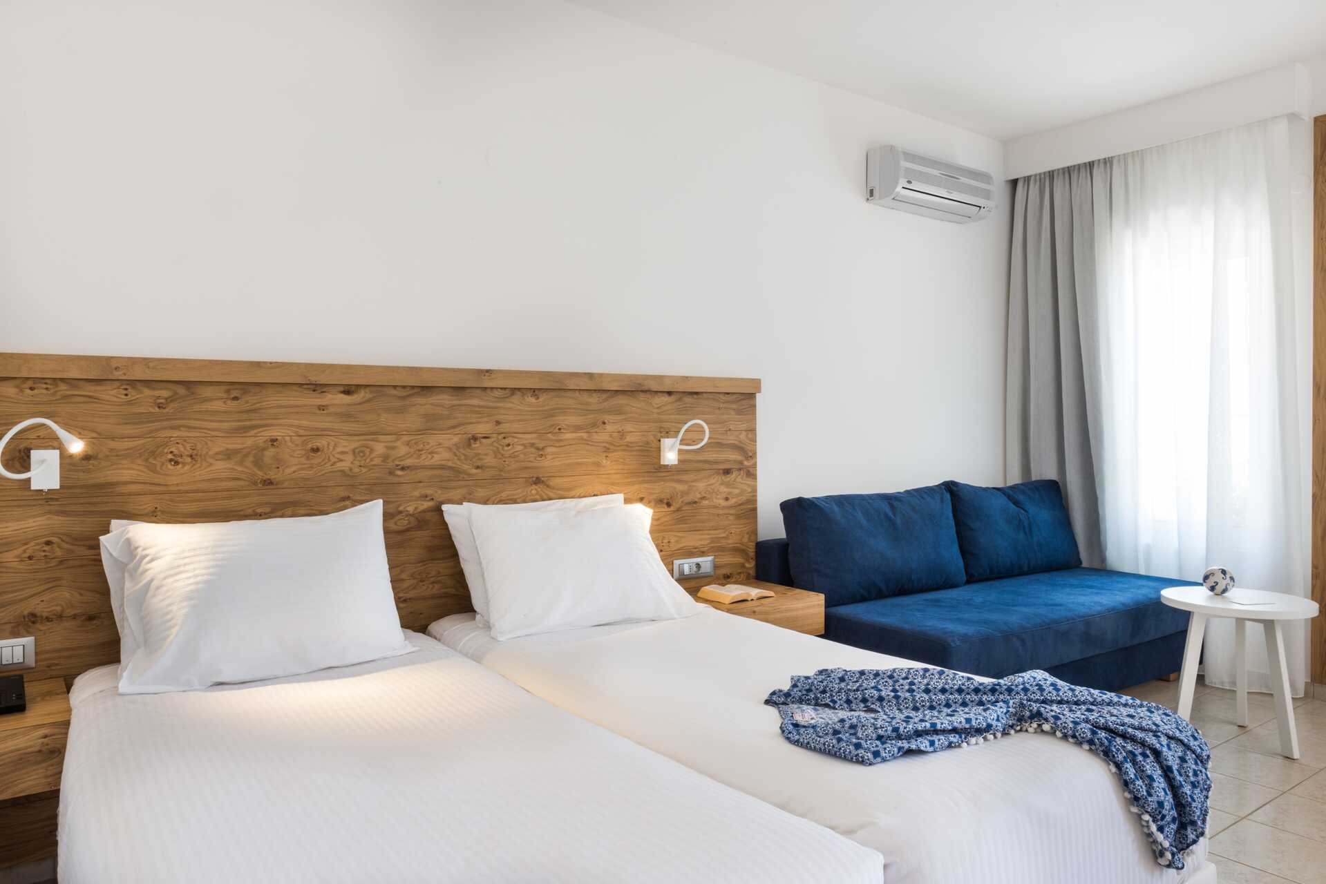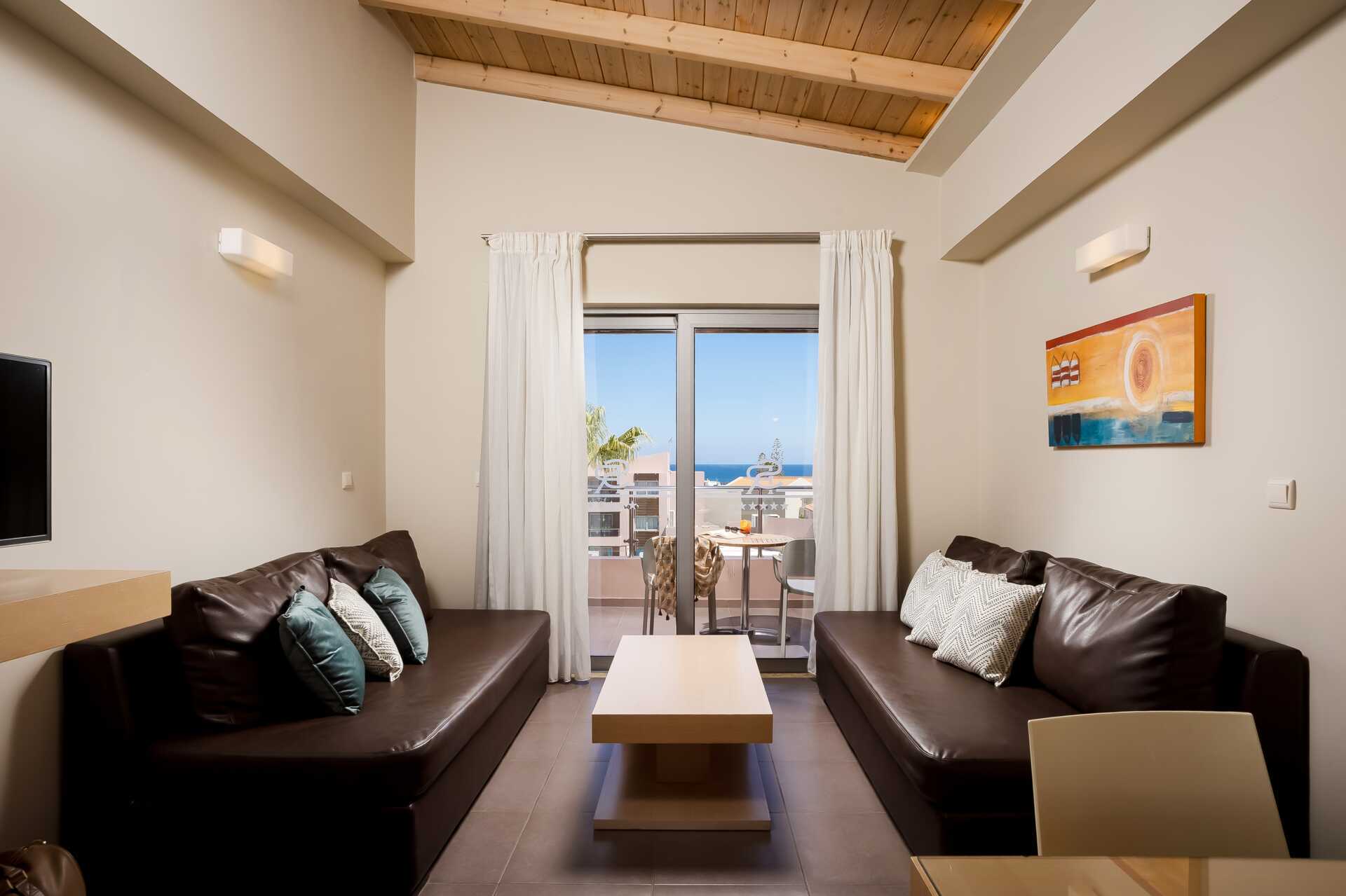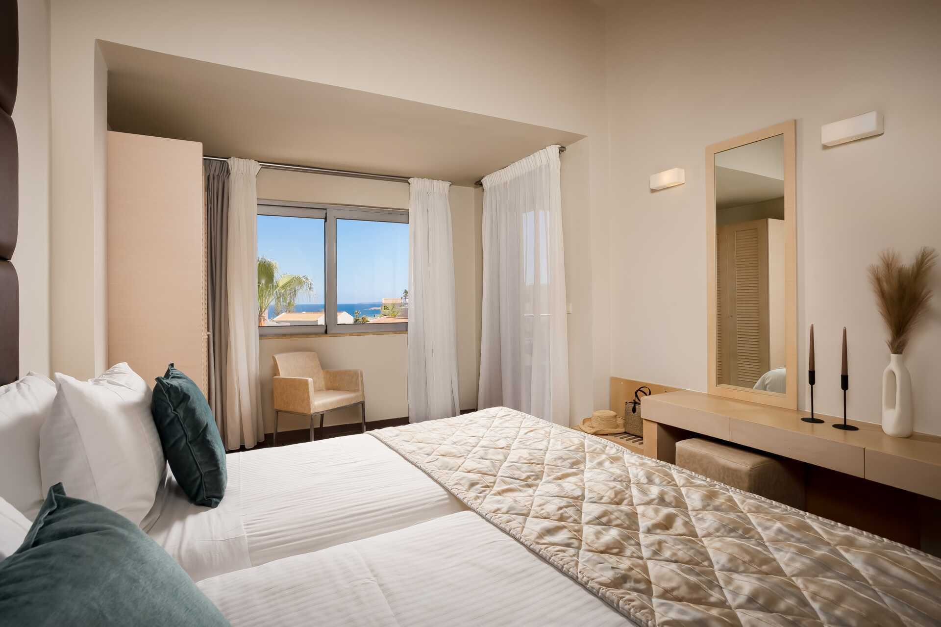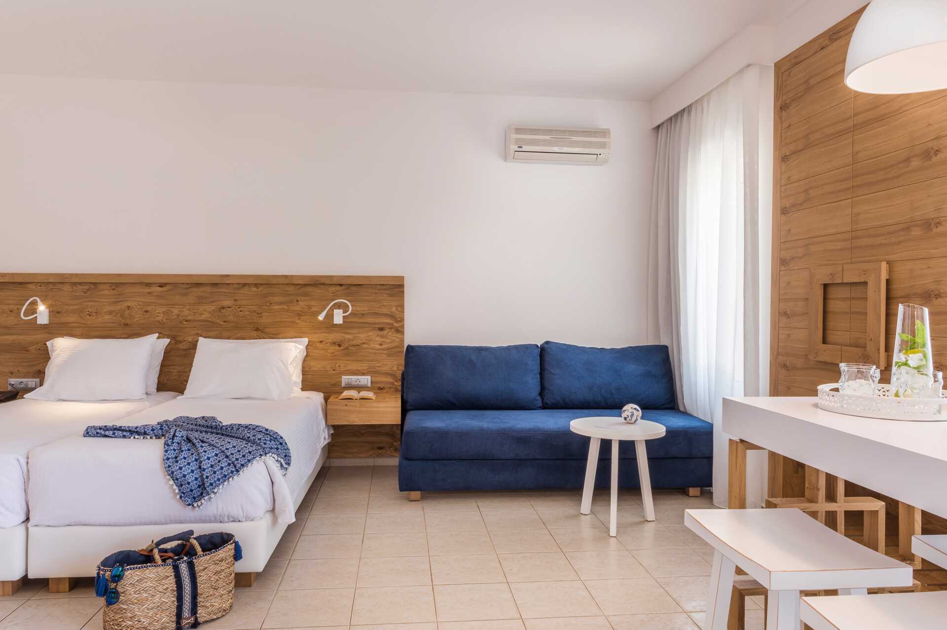 Treromsleilighet med balkong med bassengutsikt eller stor balkong med bassengutsikt. Leilighetene ligger i landsbydelen. To soverom og en stue med minikjøkken. To enkeltsenger i hvert soverom. Minikjøkken med kokeplater, kjøleskap, kaffetrakter, vannkoker og enkelt kjøkkenutstyr. Wifi, luftkondisjonering og safe inkludert. Klimaanlegg er tilgjengelig på alle rom. TV. Hårføner. Badekar eller dusj samt wc. Rengjøring 6 ggr/uke.