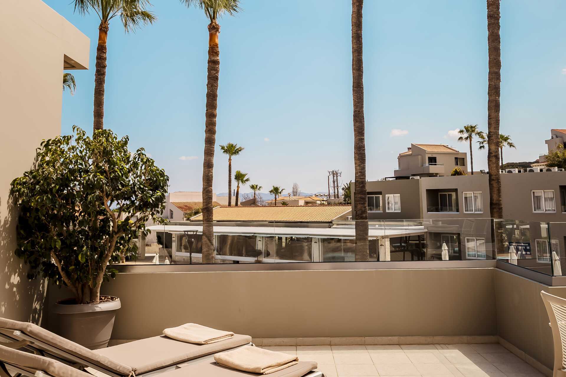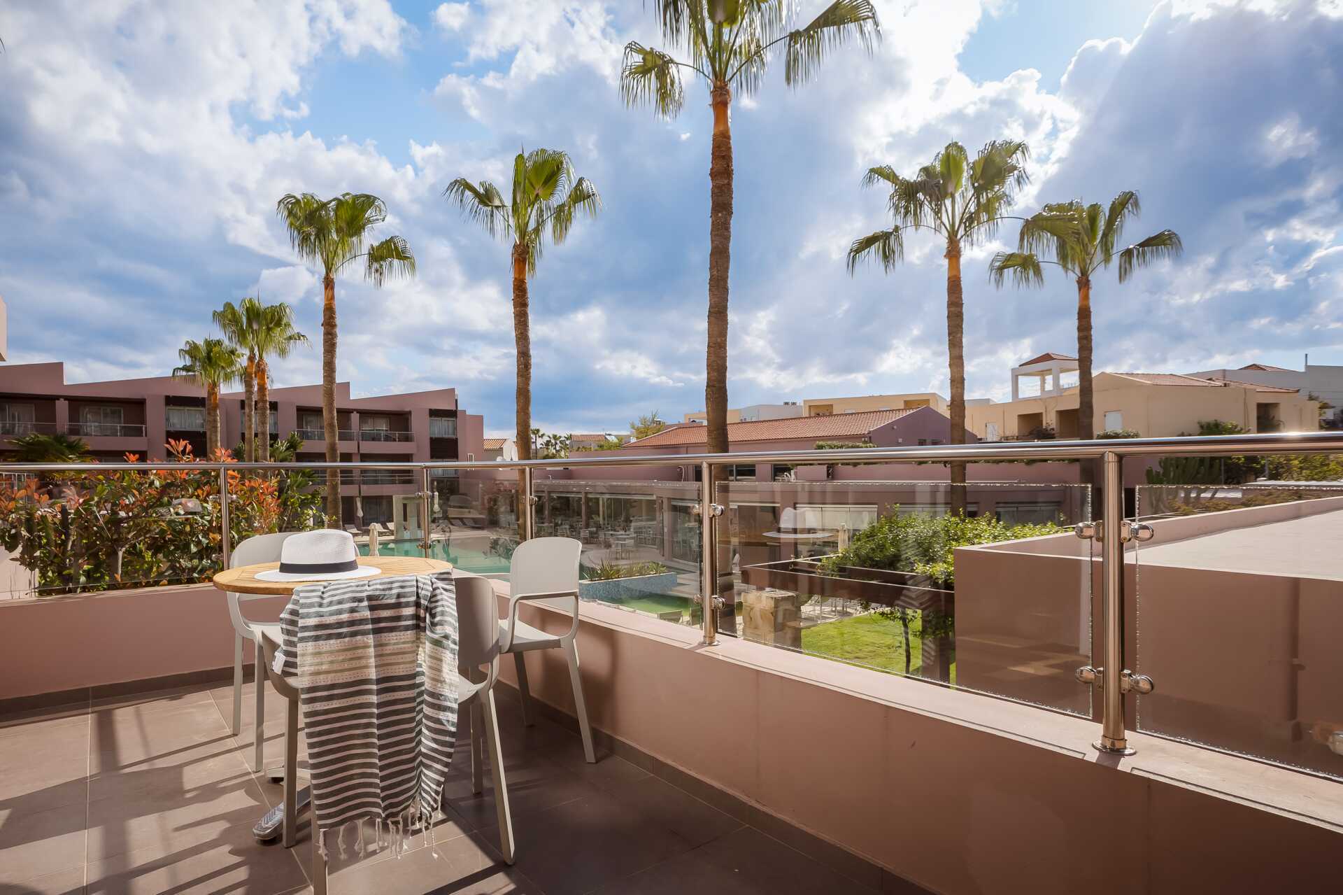 Toromsleilighet i etasje og med balkong, noen med utsikt over bassenget. Leilighetene ligger i Elina-delen. I entréetasjen er det kombinert stue med minikjøkken, ekstrasenger i sovesofa, bad med dusj og wc og minikjøkken med kokeplater, kjøleskap, kaffetrakter, vannkoker og enkel kjøkkenutstyr. En trapp opp er det et soverom med to enkeltsenger, en balkong og et separat wc. Wifi, luftkondisjonering og safe inkludert. TV. Hårføner. Rengjøring 6 ggr/uke. Barnesengen kan kun plasseres i underetasjen (inngangsetasjen), noe som betyr at vi ikke anbefaler bruk av barneseng i denne leiligheten.