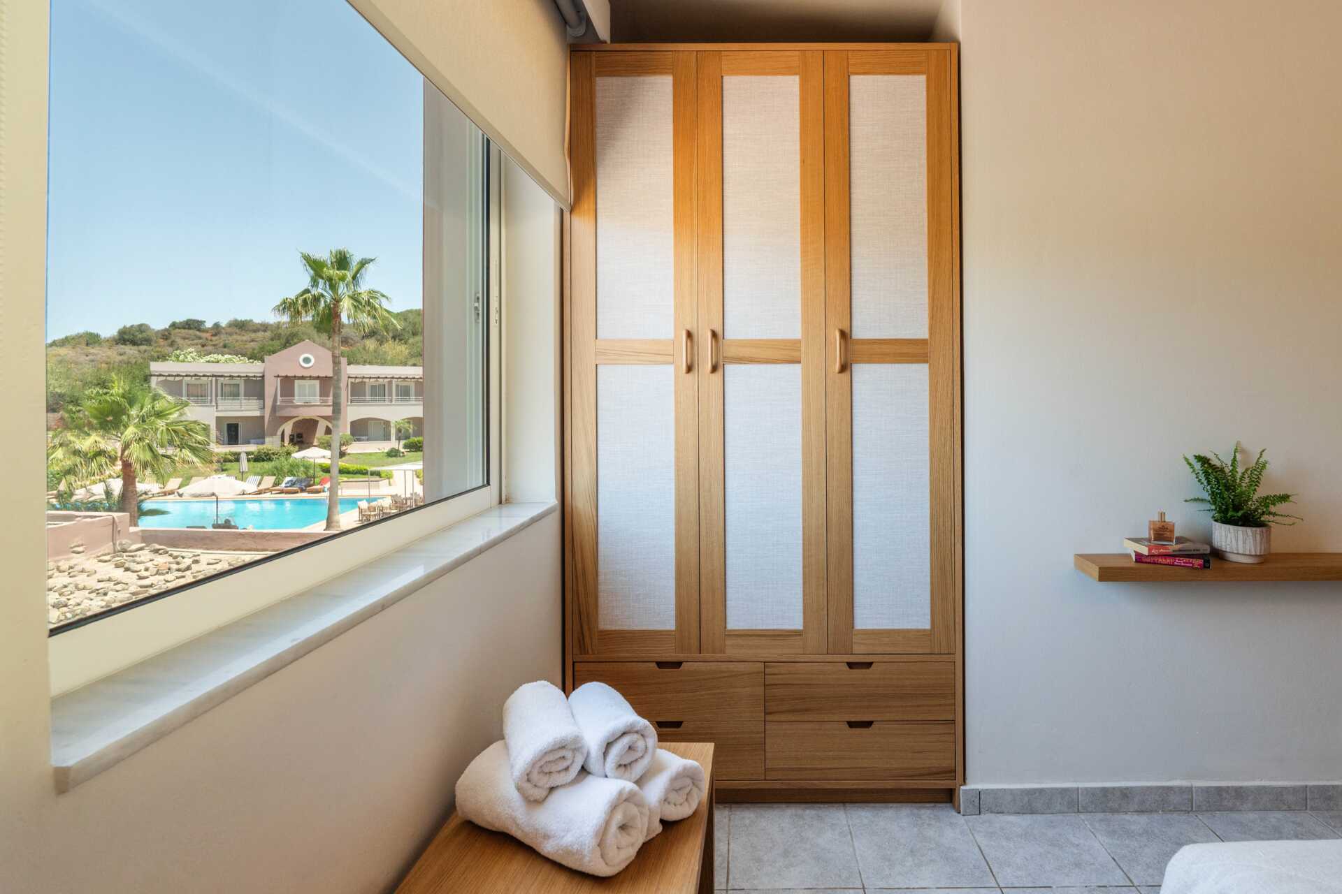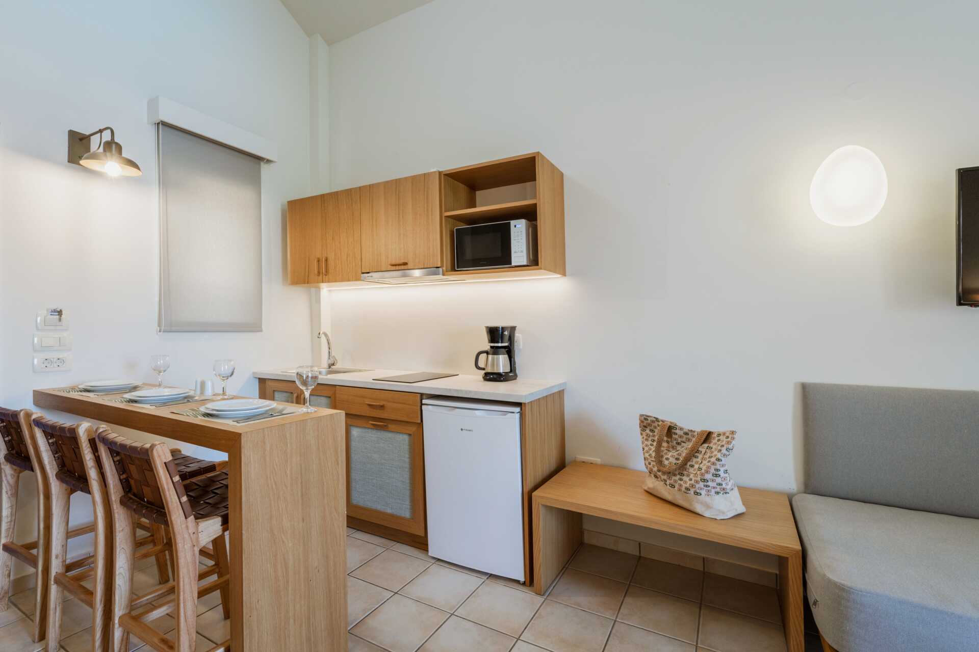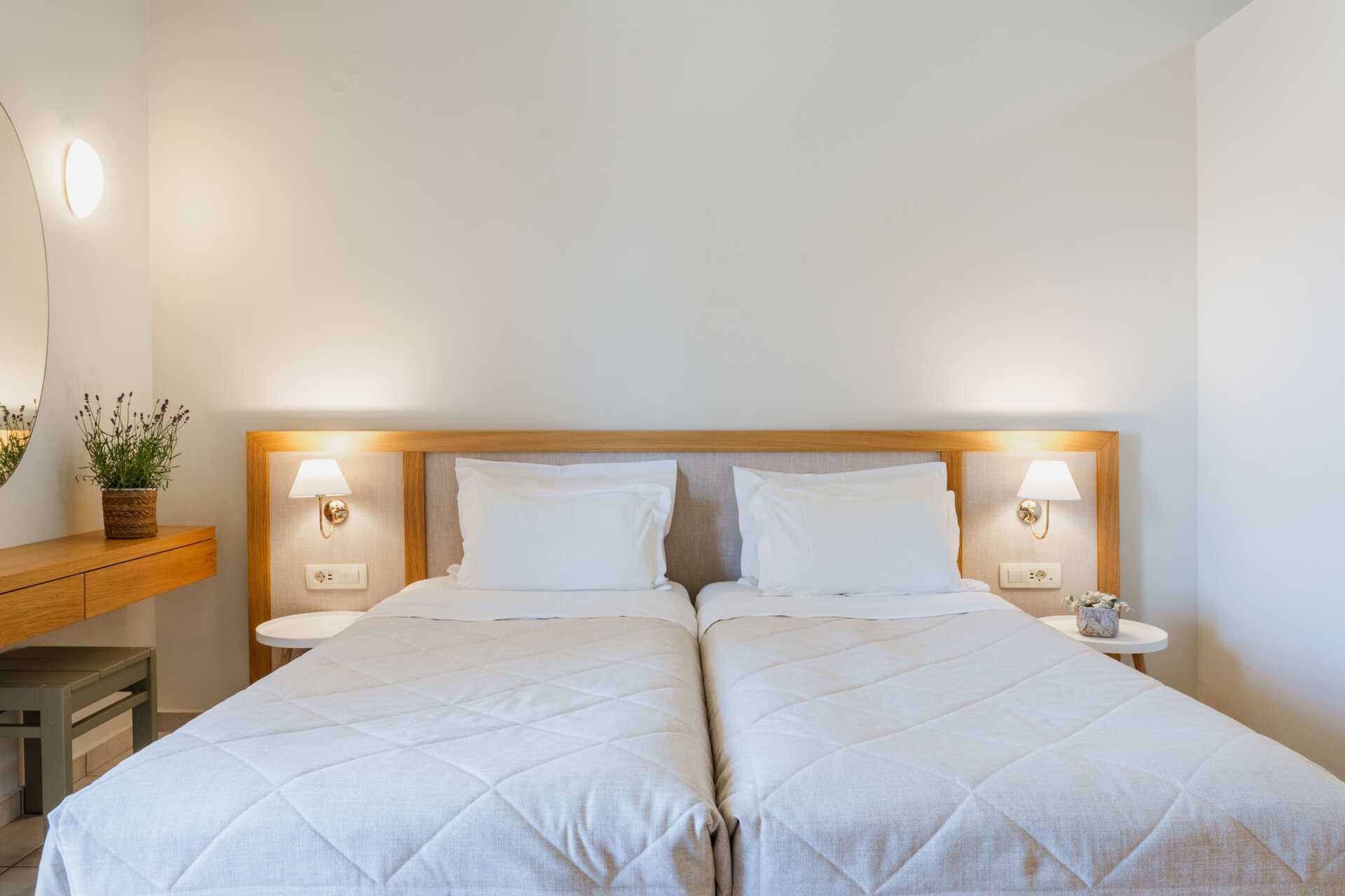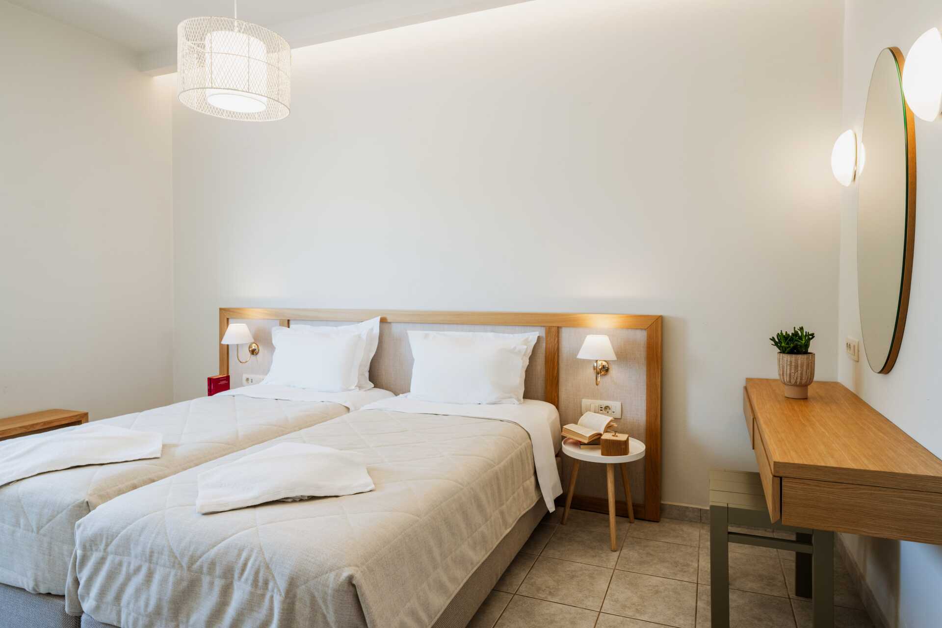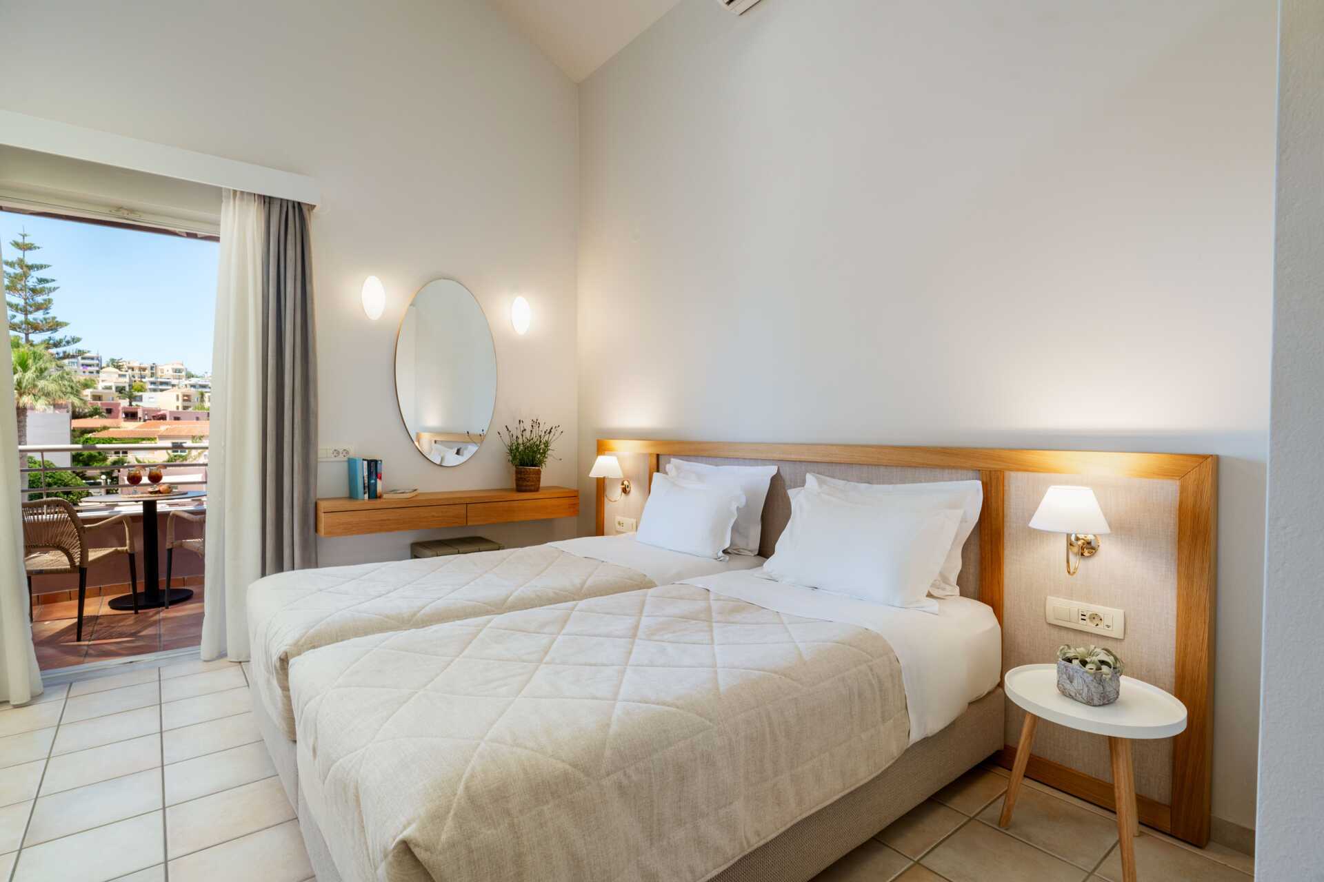 Ettromsleilighet med balkong eller markbalkong, noen balkonger har bassengutsikt.I leilighetene med bassengutsikt må den tredje personen være et barn. Minikjøkken. To enkeltsenger. Mulig med ekstraseng i sovesofa. Minikjøkken med kokeplater, kjøleskap, kaffetrakter, brødrister og enkelt kjøkkenutstyr. Wifi, luftkondisjonering og safe inkludert. TV. Hårføner. Dusj og wc. Rengjøring 6 ggr/uke.