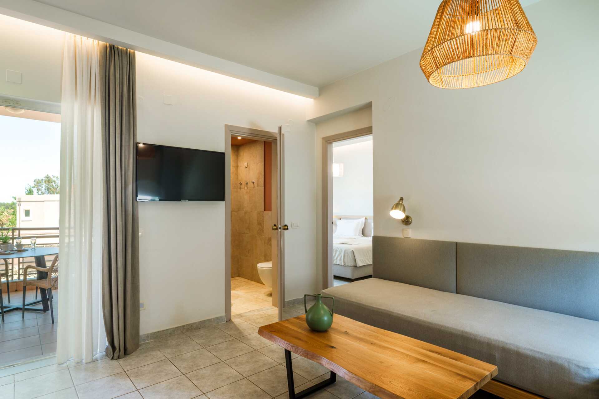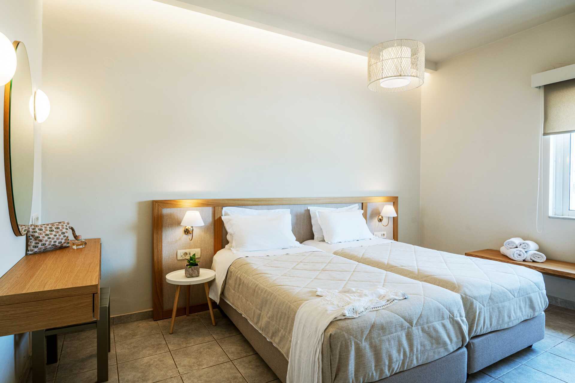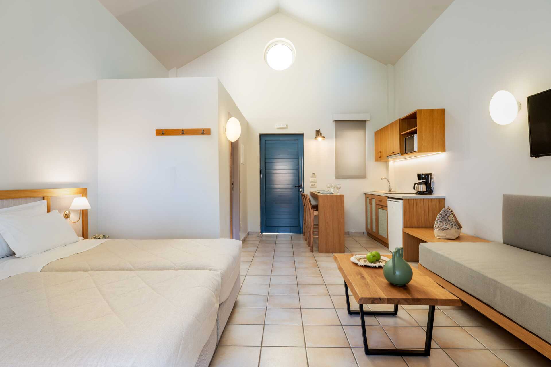 Toromsleilighet med balkong eller markbalkong, noen med bassengutsikt. Et soverom og stue med minikjøkken. En dobbeltseng eller to enkeltsenger. Mulig med ekstrasenger i sovesofaer. Minikjøkken med kokeplater, kjøleskap, kaffetrakter, smørbrødgrill og enkelt kjøkkenutstyr. Wifi, luftkondisjonering og safe inkludert. TV. Hårføner. Baderom med dusj og wc. Rengjøring 6 ggr/uke.