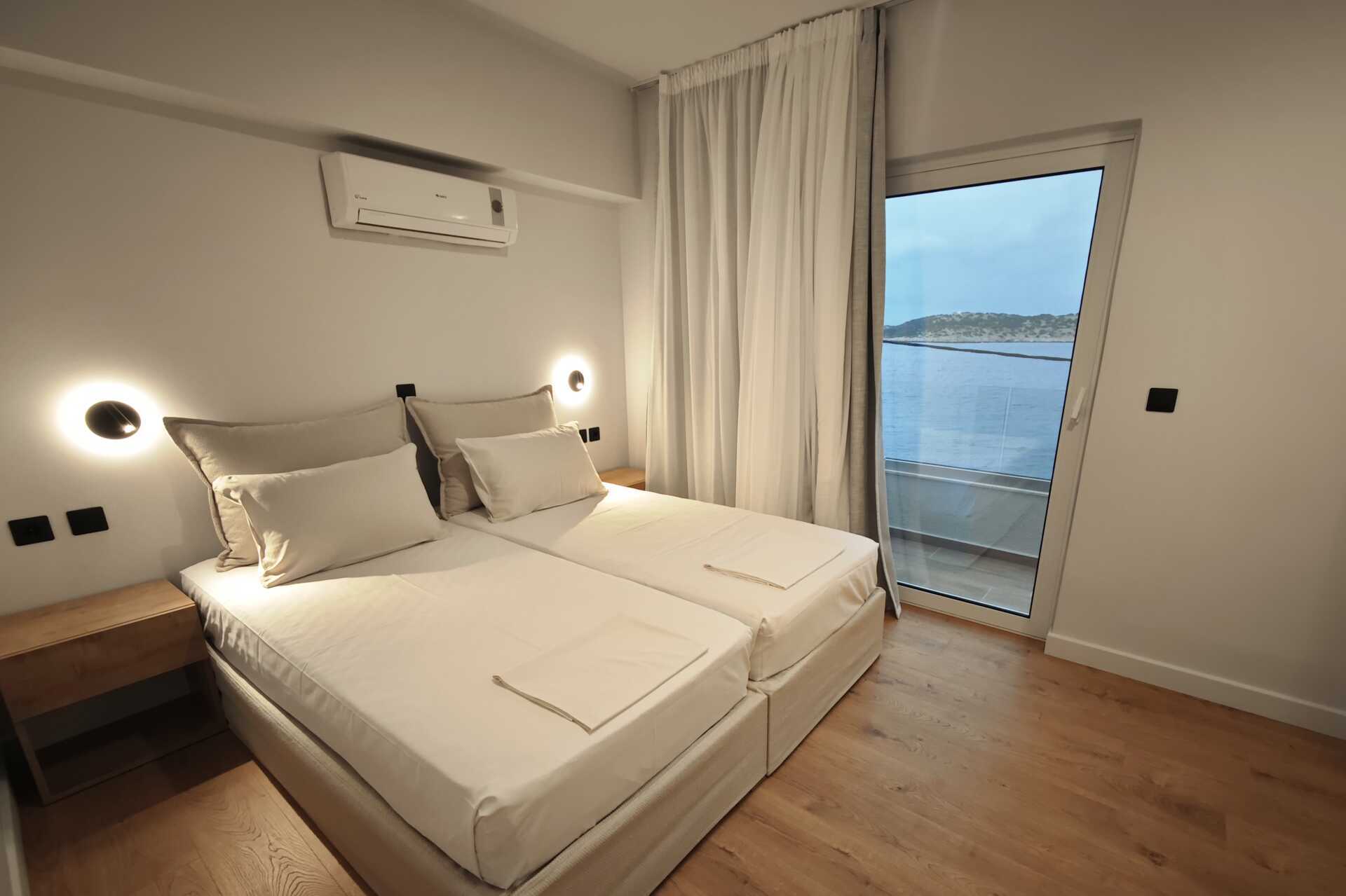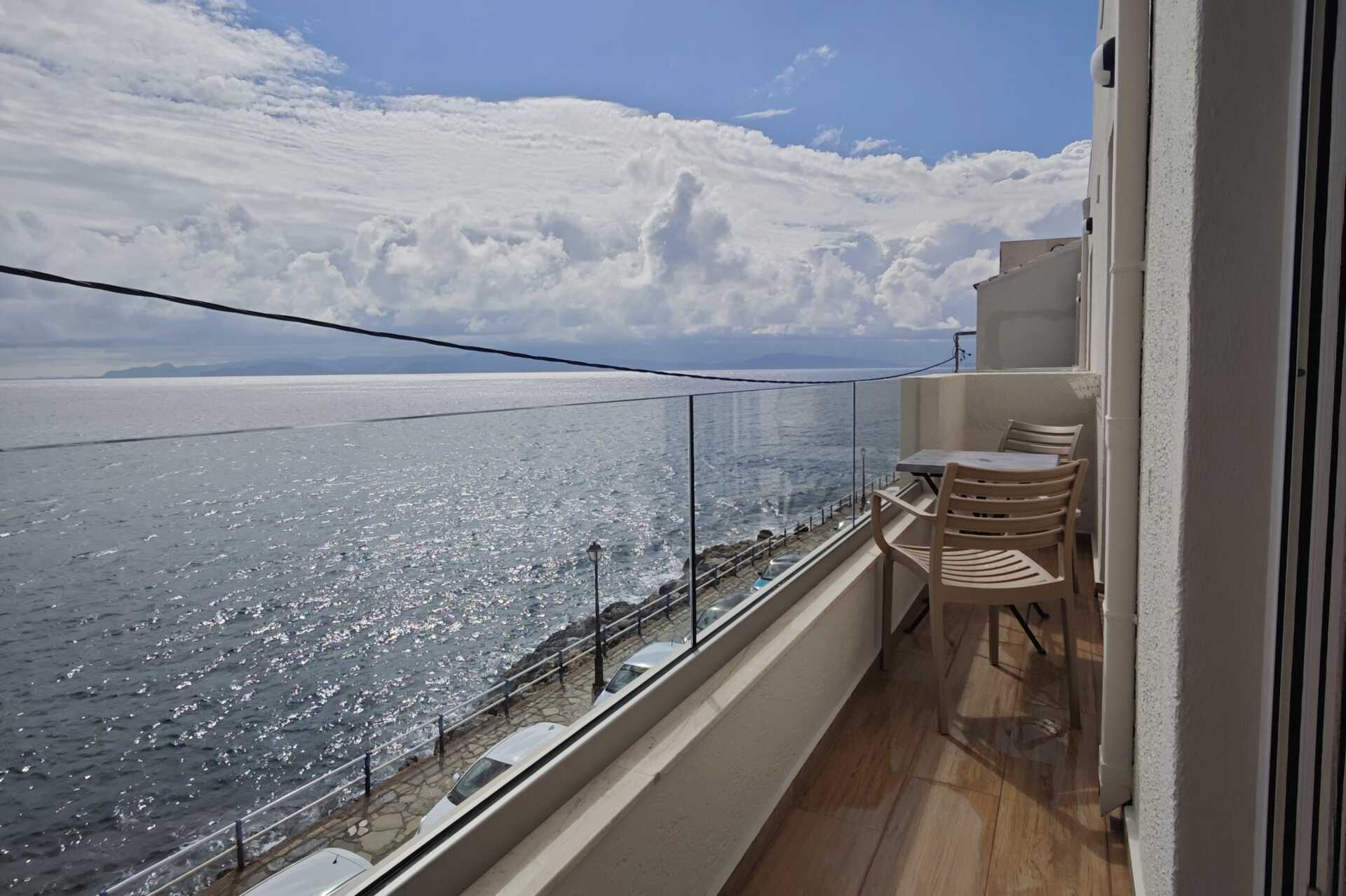 Toromsleilighet med balkong og havutsikt, størrelsen på balkongen kan variere mye, med alt fra en smal balkong med kun to stoler og et smalt bord til en balkong med fire stoler og et bord, spesifikk størrelse på balkongen kan ikke garanteres - eller med stor balkong eller terrasse med havutsikt. Et soverom og kombinert stue med minikjøkken. En dobbeltseng eller to enkeltsenger. Mulig med ekstraseng i sovesofa med uttrekkbar seng. Minikjøkken med kokeplater, kjøleskap, vannkoker, kaffetrakter og enkelt kjøkkenutstyr. Wifi, luftkondisjonering og safe inkludert. TV med én lokal kanal. Hårføner. Baderom med dusj og wc. Rengjøring 6 ggr/uke.