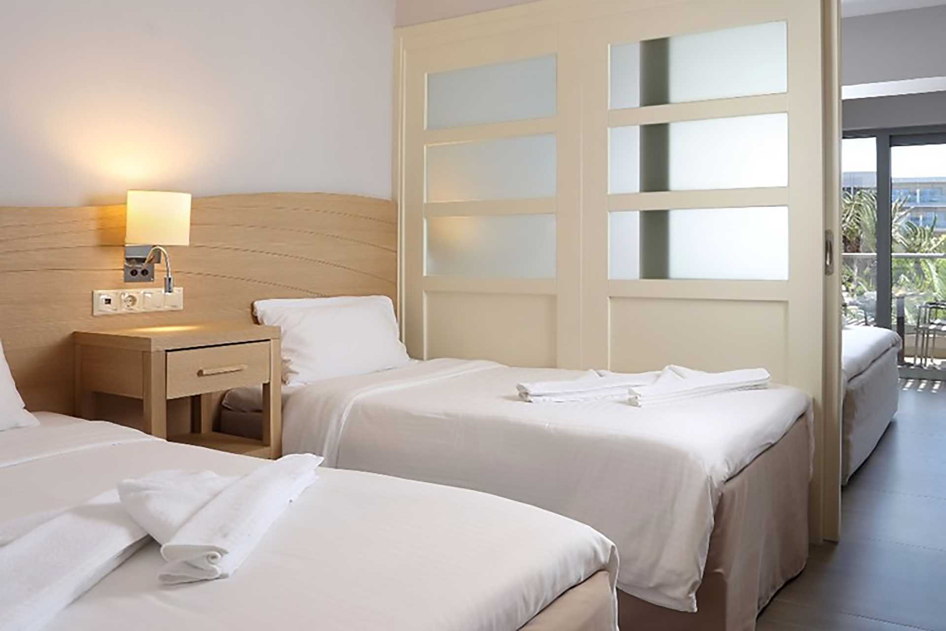 Familierom med balkong, noen med begrenset havutsikt. Ett soverom og et kombinert soverom/stue. En dobbeltseng to enkeltsenger. Wifi, luftkondisjonering og safe inkludert. Kjøleskap. Vannkoker samt kaffe og te. Nespresso kaffemaskin - kapsler inkludert og etterfylles hver dag. Mikrobølgeovn. TV. Strykejern og strykebrett. Hårføner. Dusj og wc. Rengjøring 7 ggr/uke. Barn under 2 år regnes inn i maksantallet i rommet.