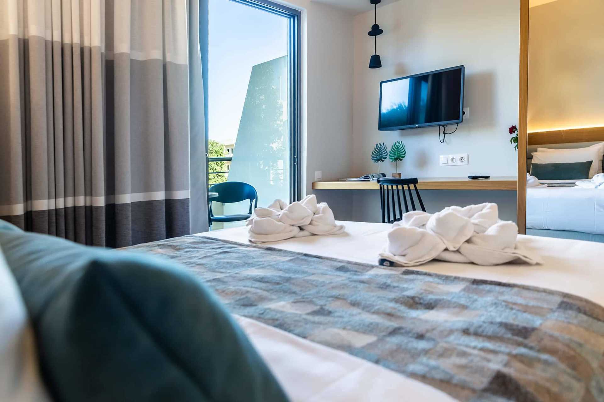 Ettromsleilighet superior med balkong. Soverom kombinert med minikjøkken. En dobbeltseng eller to enkeltsenger. Minikjøkken med kokeplater, kjøleskap, vannkoker, kaffetrakter og enkelt kjøkkenutstyr. Wifi og luftkondisjonering er inkludert. Safe mot avgift. TV. Bad med dusj og wc. Rengjøring 6 ggr/uke. Barn under 2 år regnes inn i maksantallet i rommet.