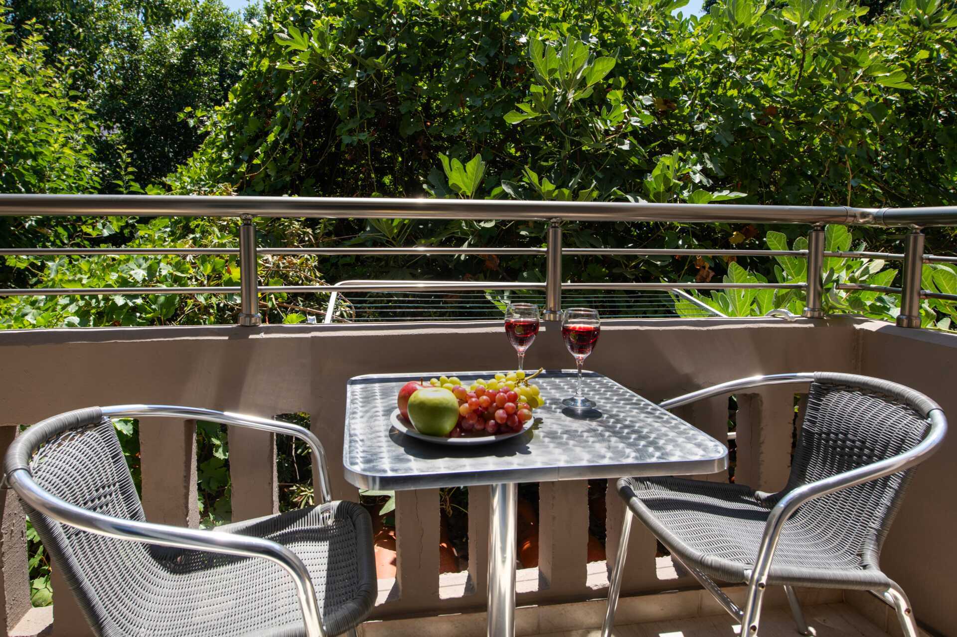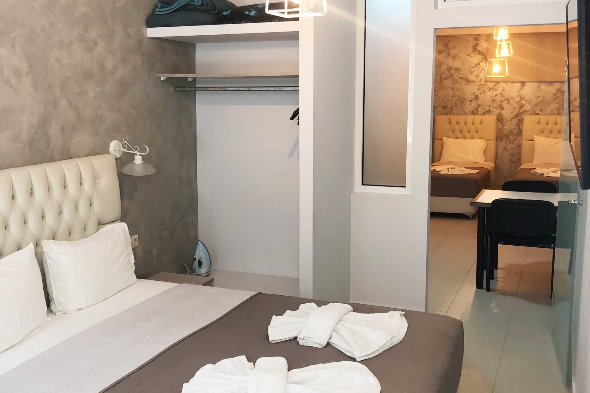 Dobbeltrom med balkong. En dobbeltseng eller to enkeltsenger. Wifi inkludert. Luftkondisjonering mot avgift. Kjøleskap. TV. Hårføner. Dusj og wc. Rengjøring 3 ggr/uke. Barn under 2 år regnes inn i maksantallet i rommet.