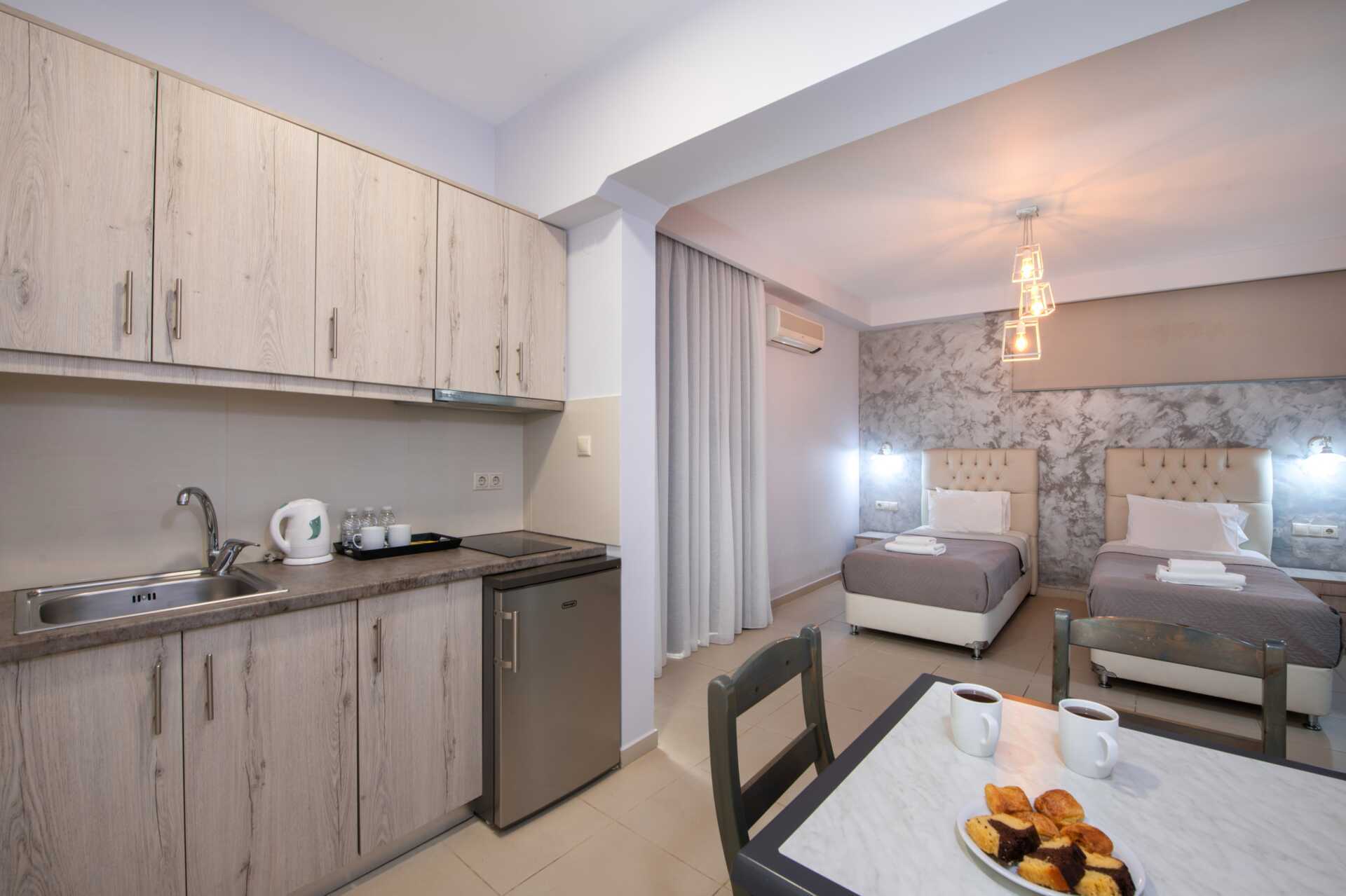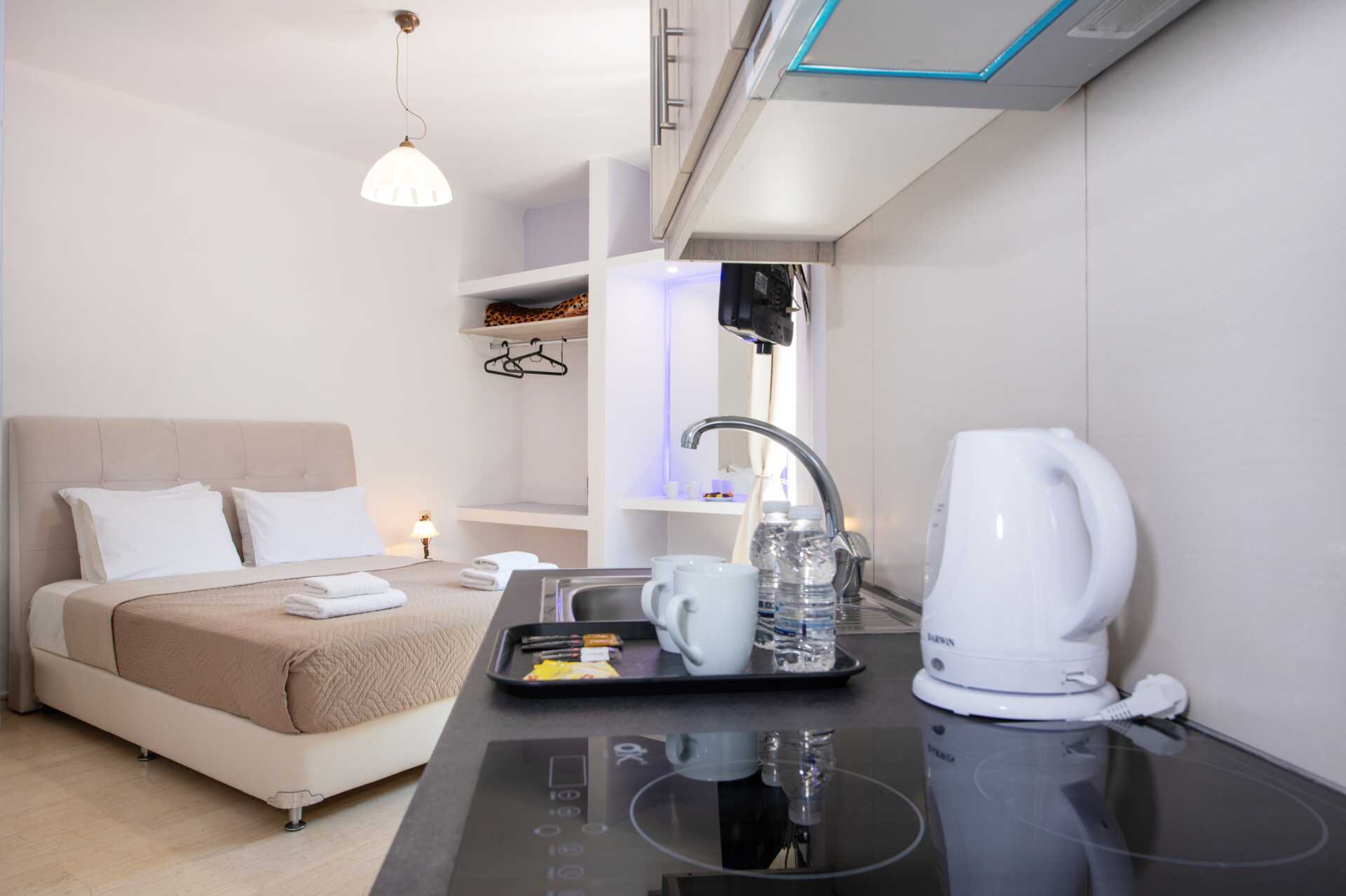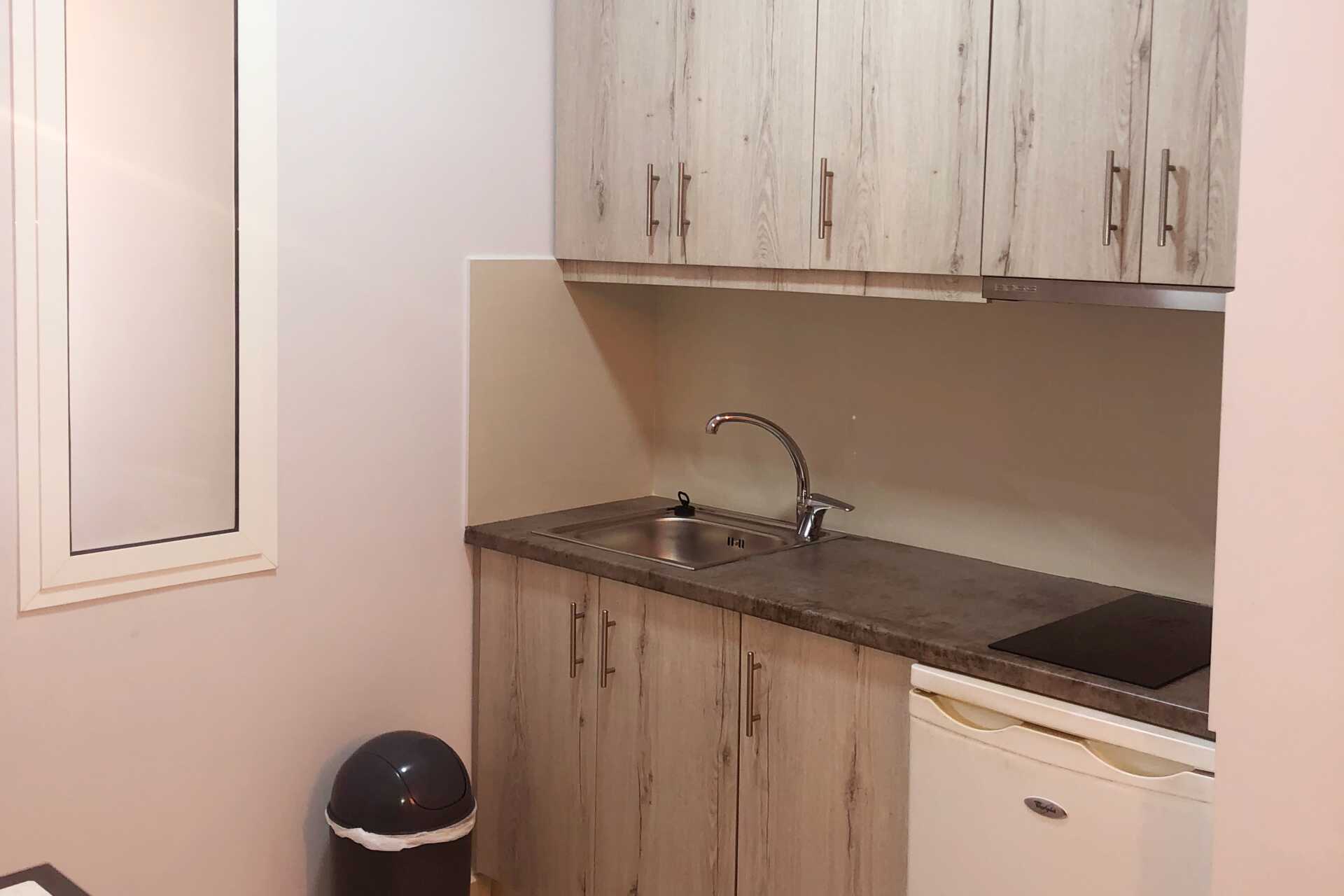 Ettromsleilighet med balkong. Soverom kombinert med minikjøkken. En dobbeltseng eller to enkeltsenger. Minikjøkken med kokeplater, kjøleskap og enkelt kjøkkenutstyr. Wifi inkludert. Luftkondisjonering mot avgift. TV. Hårføner. Dusj og wc. Rengjøring 3 ggr/uke. Barn under 2 år regnes inn i maksantallet i leiligheten.