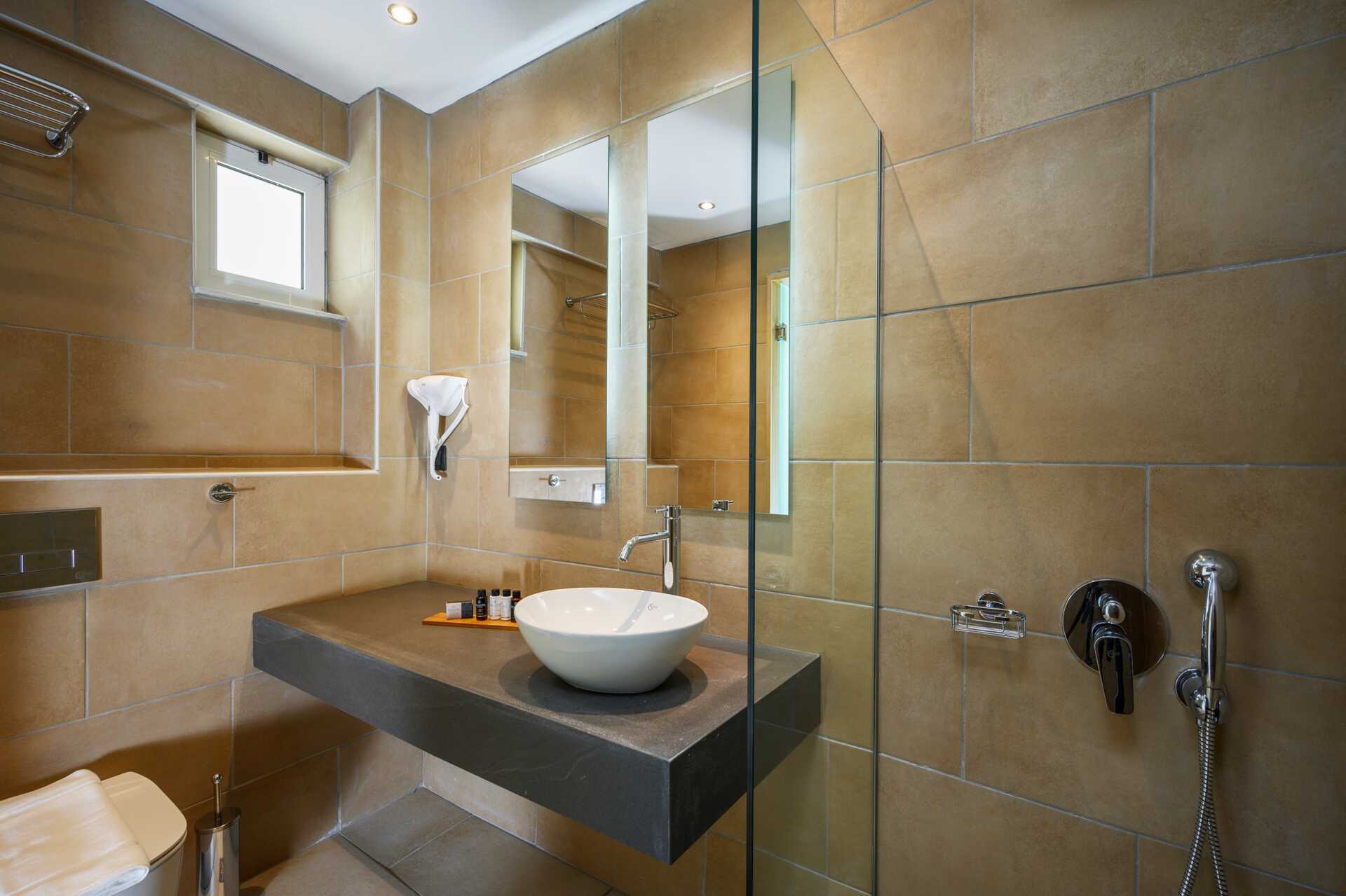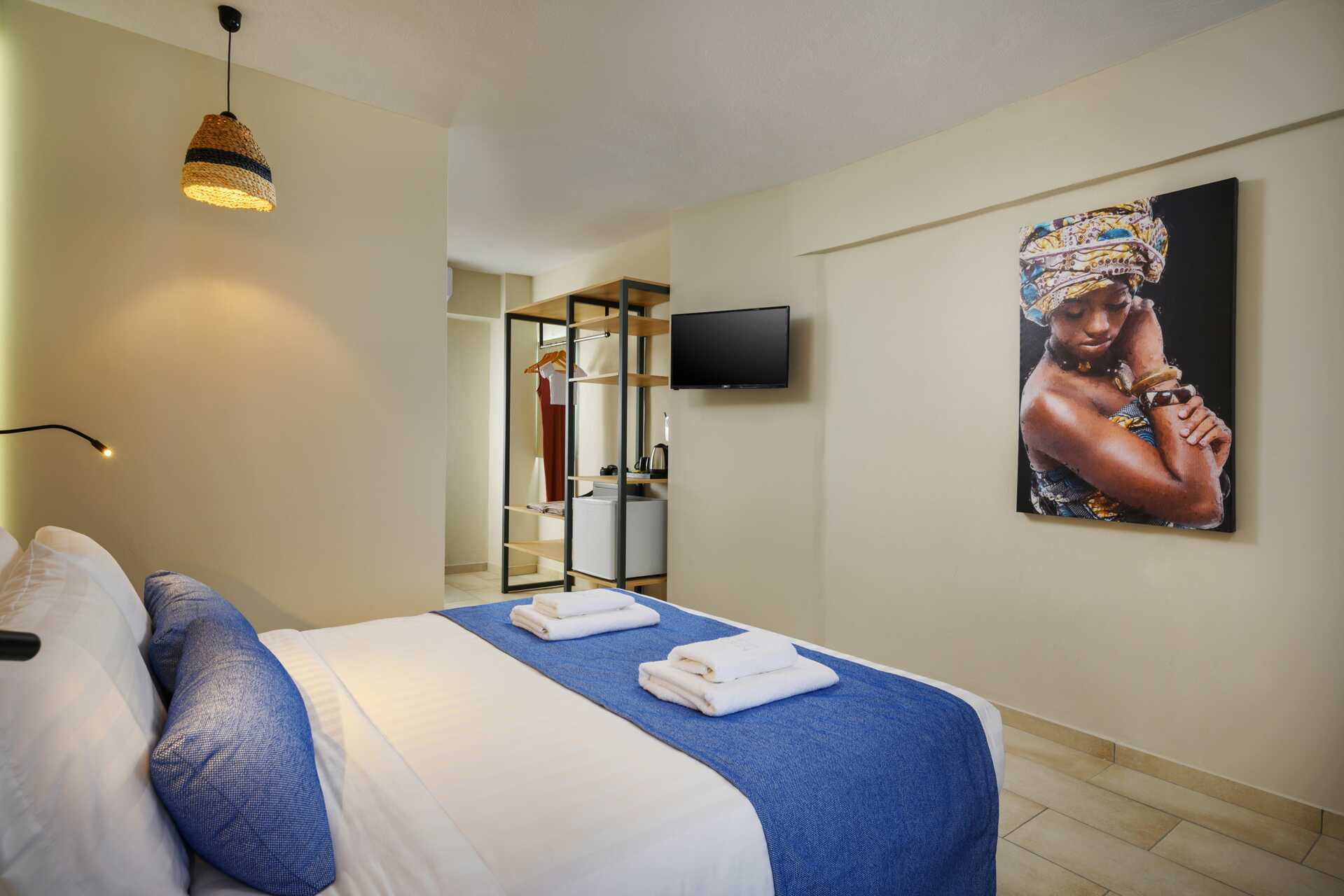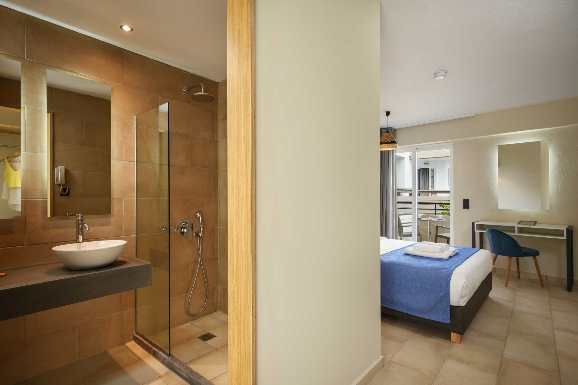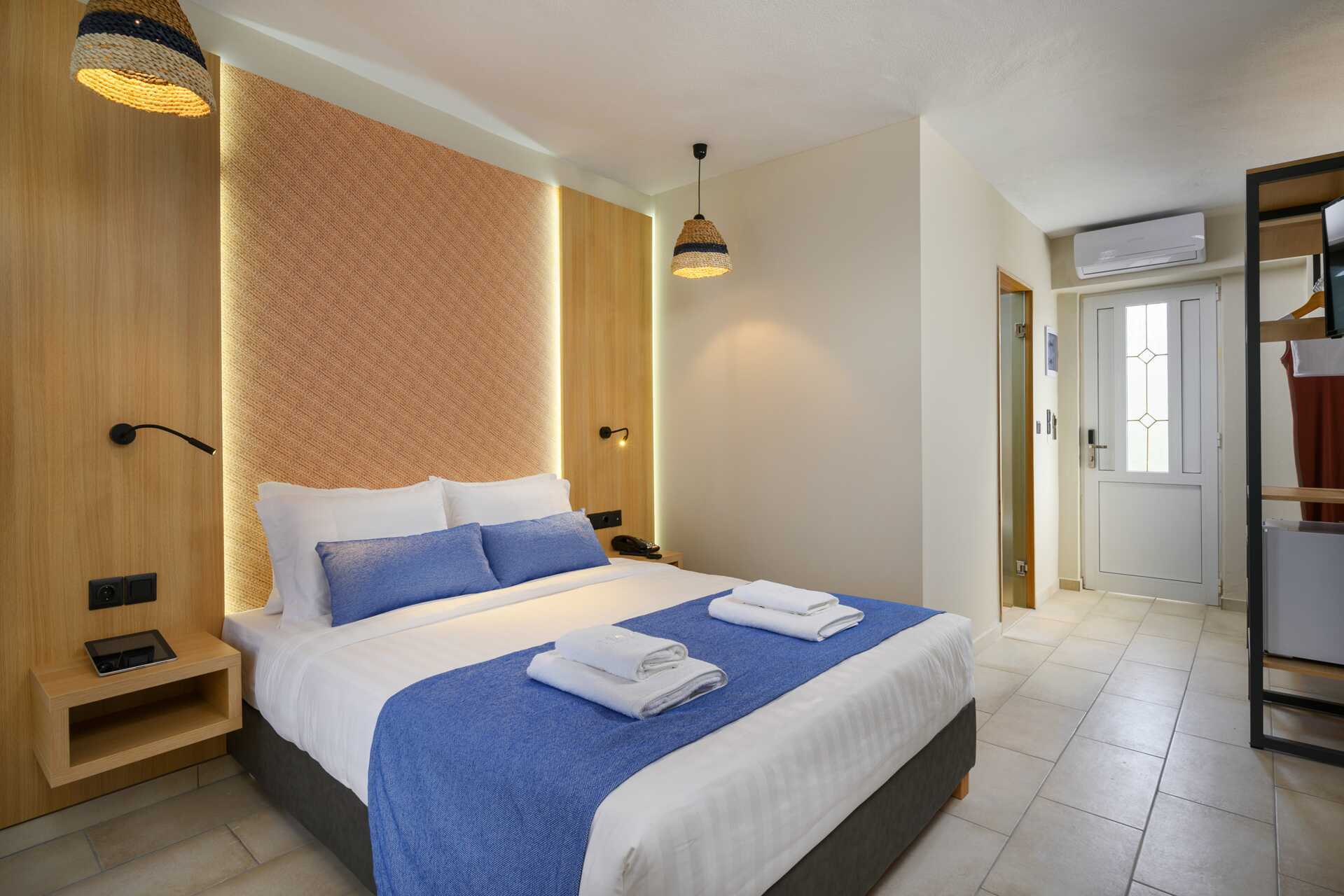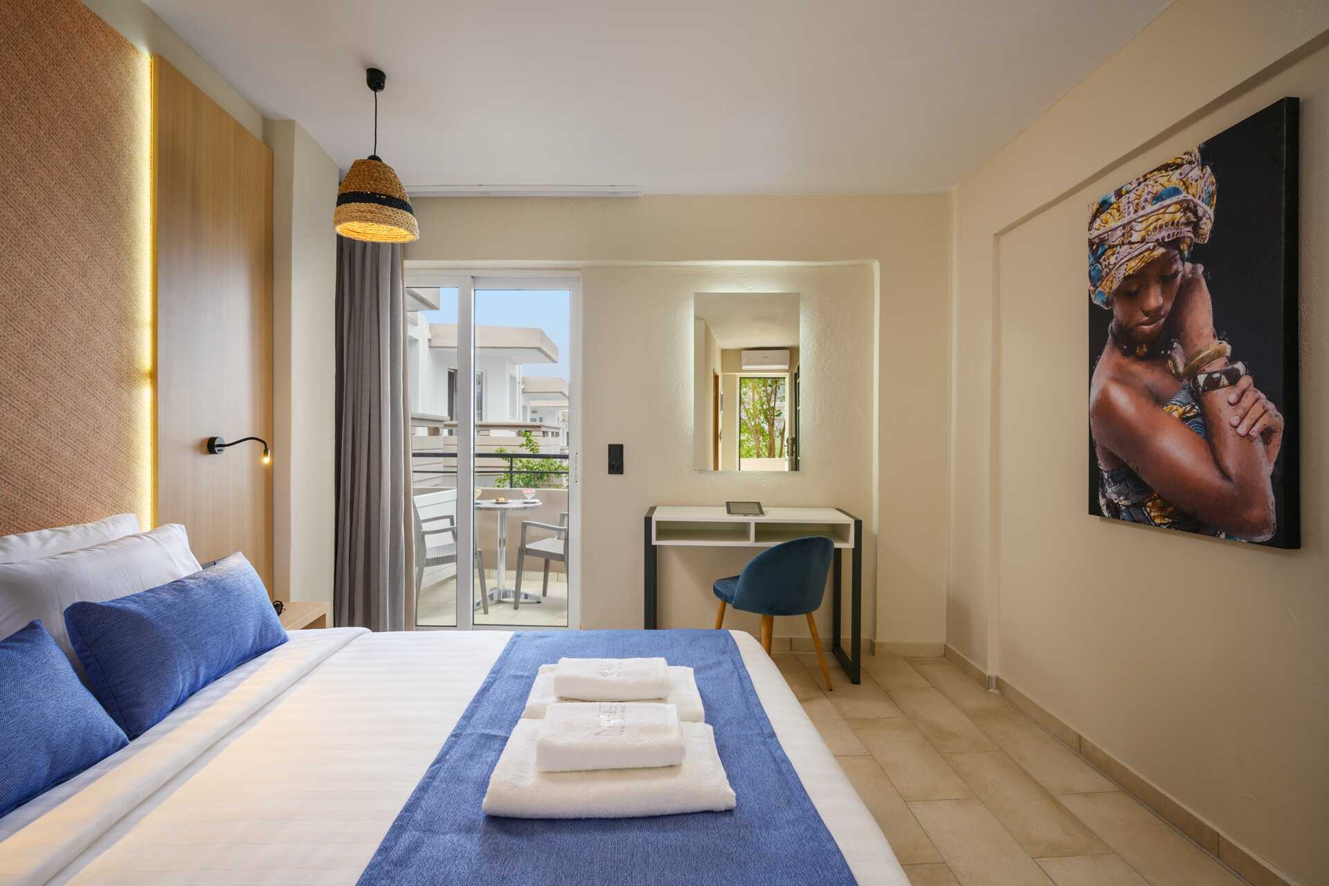 Dobbeltrom med balkong, noen med begrenset havutsikt. En dobbeltseng. Luftkondisjonering og wifi inkludert. Safe mot avgift. Kjøleskap. Vannkoker samt kaffe og te. TV. Tøfler. Hårføner. Bad med dusj og wc. Rengjøring 7 ggr/uke.