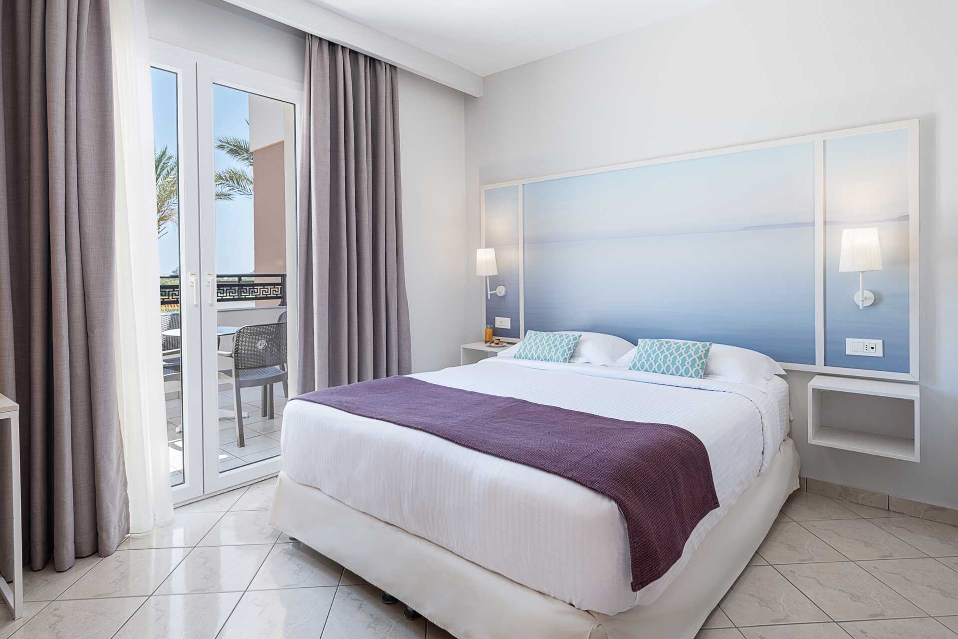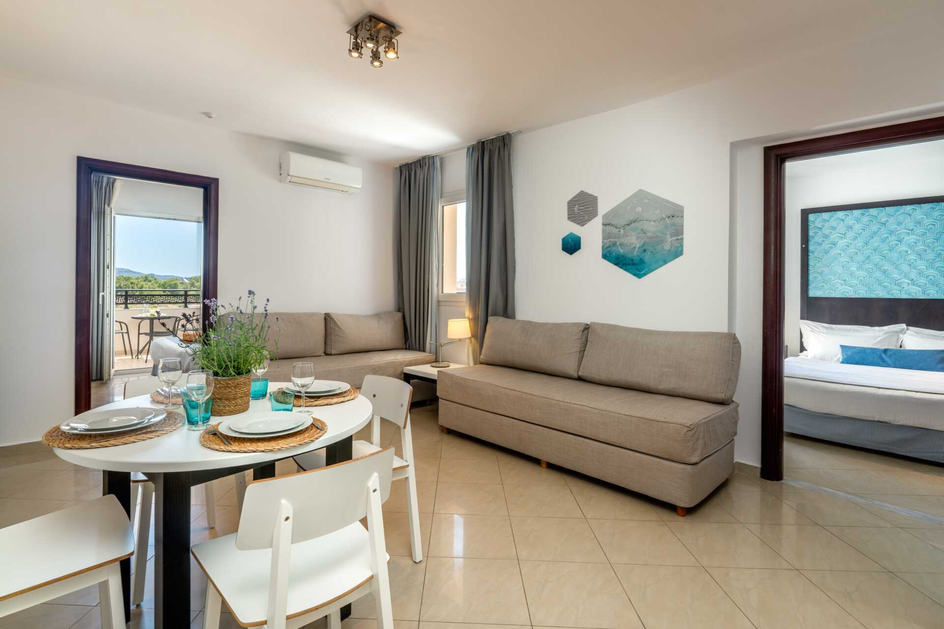 Toromsleilighet med balkong, noen med havutsikt eller begrenset havutsikt. Leilighetene ligger i Aphrodite-delen av hotellet, nærmere stranden. To soverom og en stue med minikjøkken. En dobbeltseng på hvert soverom. Mulig med ekstrasenger i sovesofa. Minikjøkken med kjøleskap, kokeplater, kaffetrakter, brødrister og enkelt kjøkkenutstyr. Wifi, luftkondisjonering og safe inkludert. TV. Hårføner. Dusj og wc. Rengjøring 6 ggr/uke.