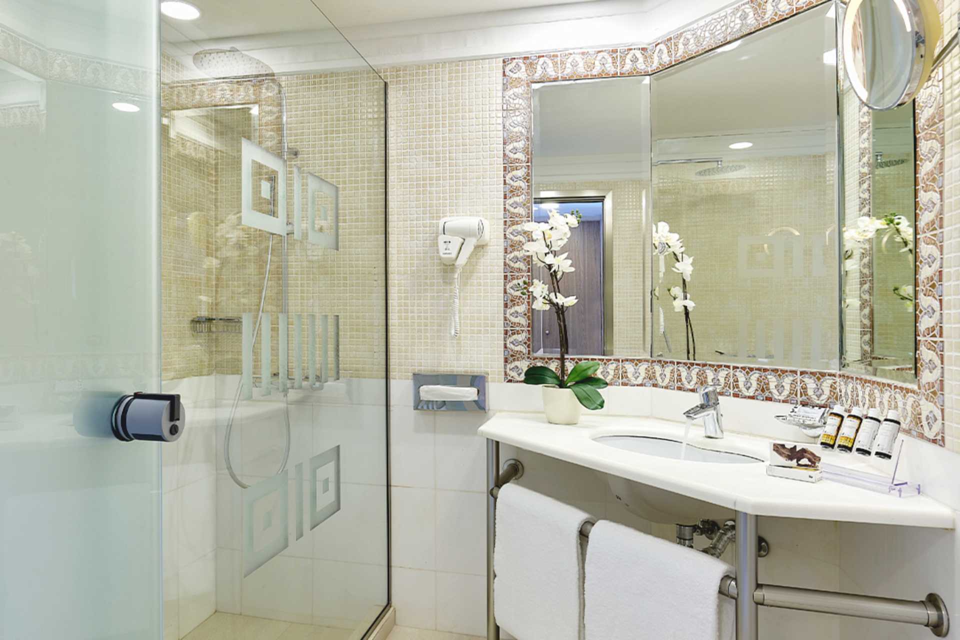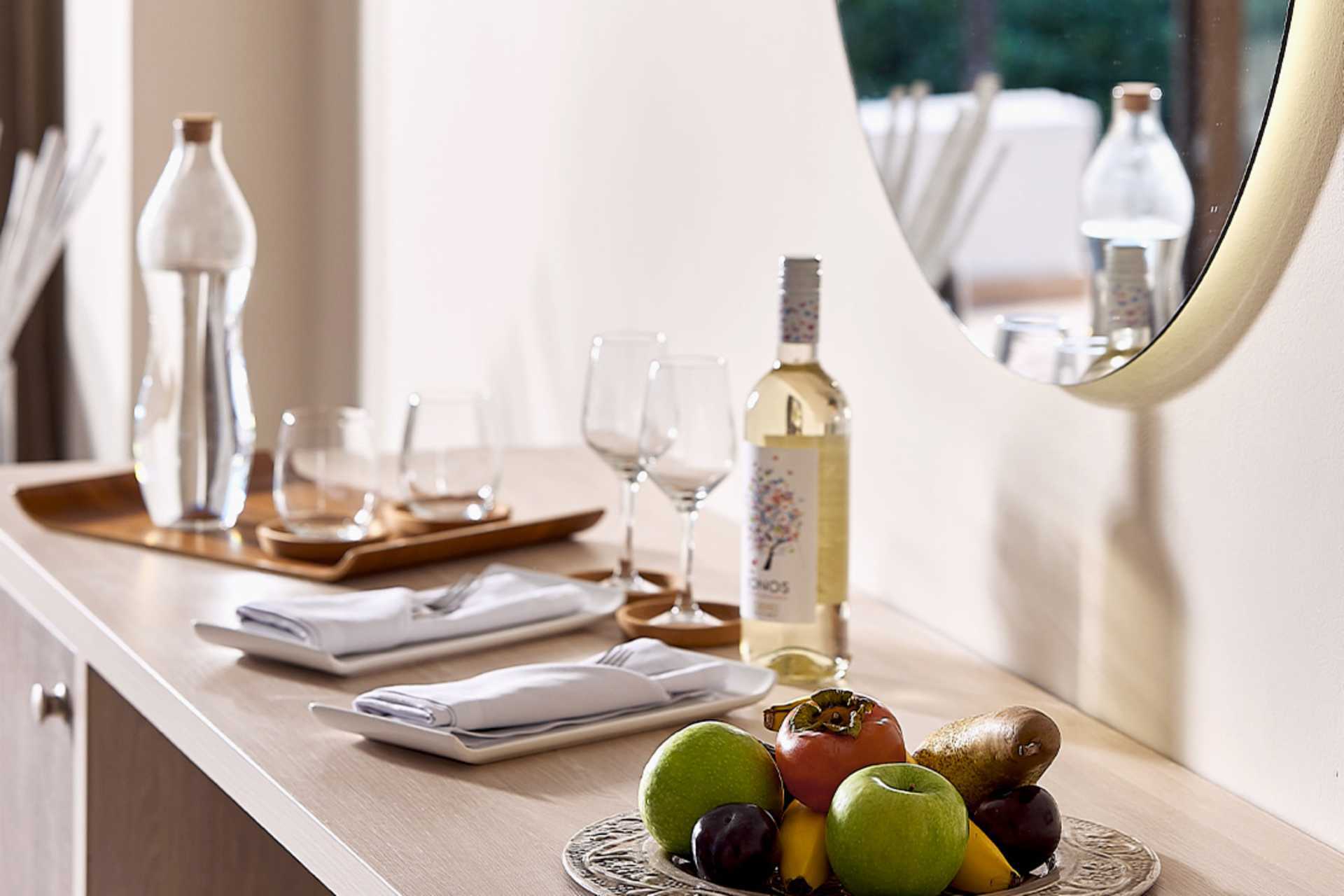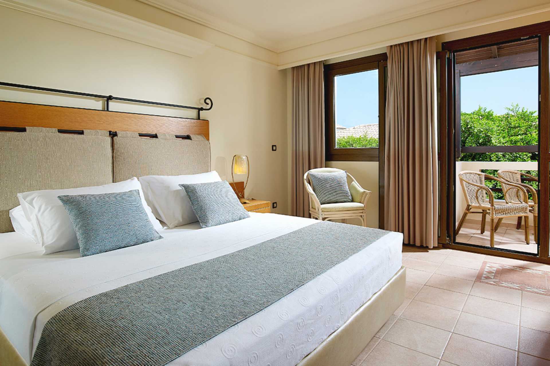 Dobbeltrom med balkong eller terrasse, noen med havutsikt. En dobbeltseng. Mulig med en ekstraseng i sovesofa. Wifi, luftkondisjonering og safe inkludert. Kjøleskap. Vannkoker samt kaffe og te. Velkomstpakke med vann og vin ved ankomst. TV. Hårføner. Badekåper og tøfler samt basseng- og strandhåndklær. Badekar og wc. Rengjøring 7 ggr/uke. Barn under 2 år regnes inn i maksantallet i rommet.