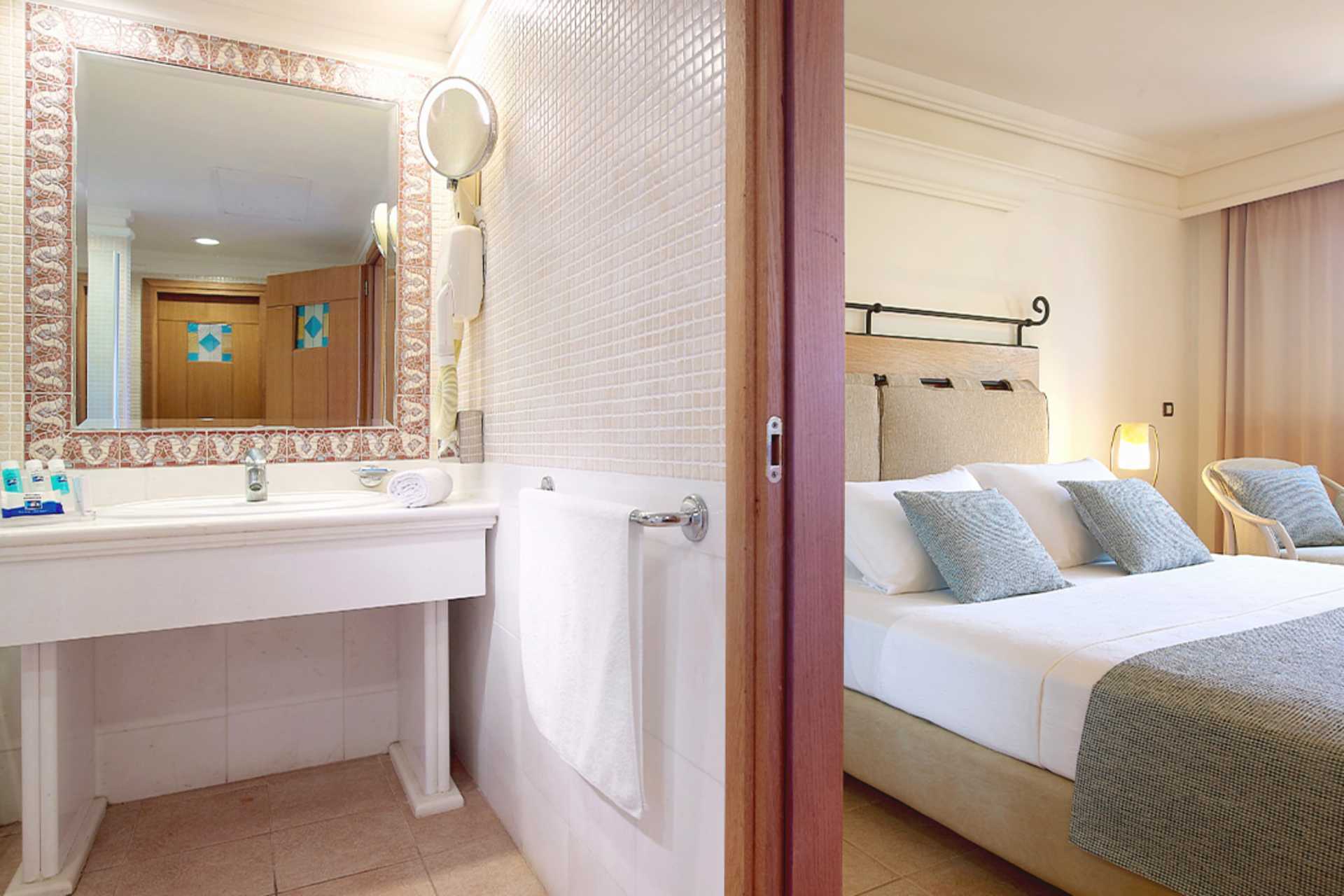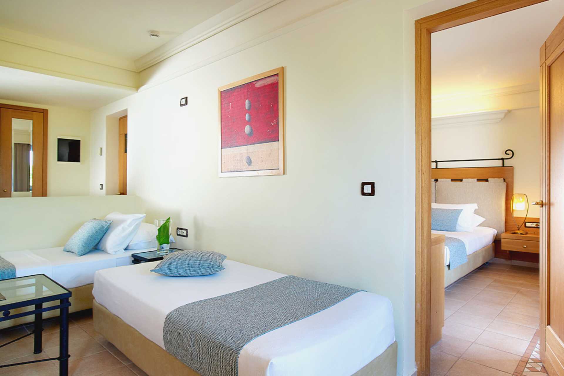 Familierom med balkong eller terrasse. Familierommet består av et soverom og en stue. To enkeltsenger. Mulig med ekstrasenger i to sovesofaer. Wifi, luftkondisjonering og safe inkludert. Kjøleskap. Vannkoker samt kaffe og te. Velkomstpakke med alkoholfri vin ved ankomst. Badekåper, tøfler og basseng- og strandhåndklær. Hårføner. Bad med badekar og separat wc. Rengjøring 7 ggr/uke. Barn under 2 år regnes inn i maksantallet i rommet.