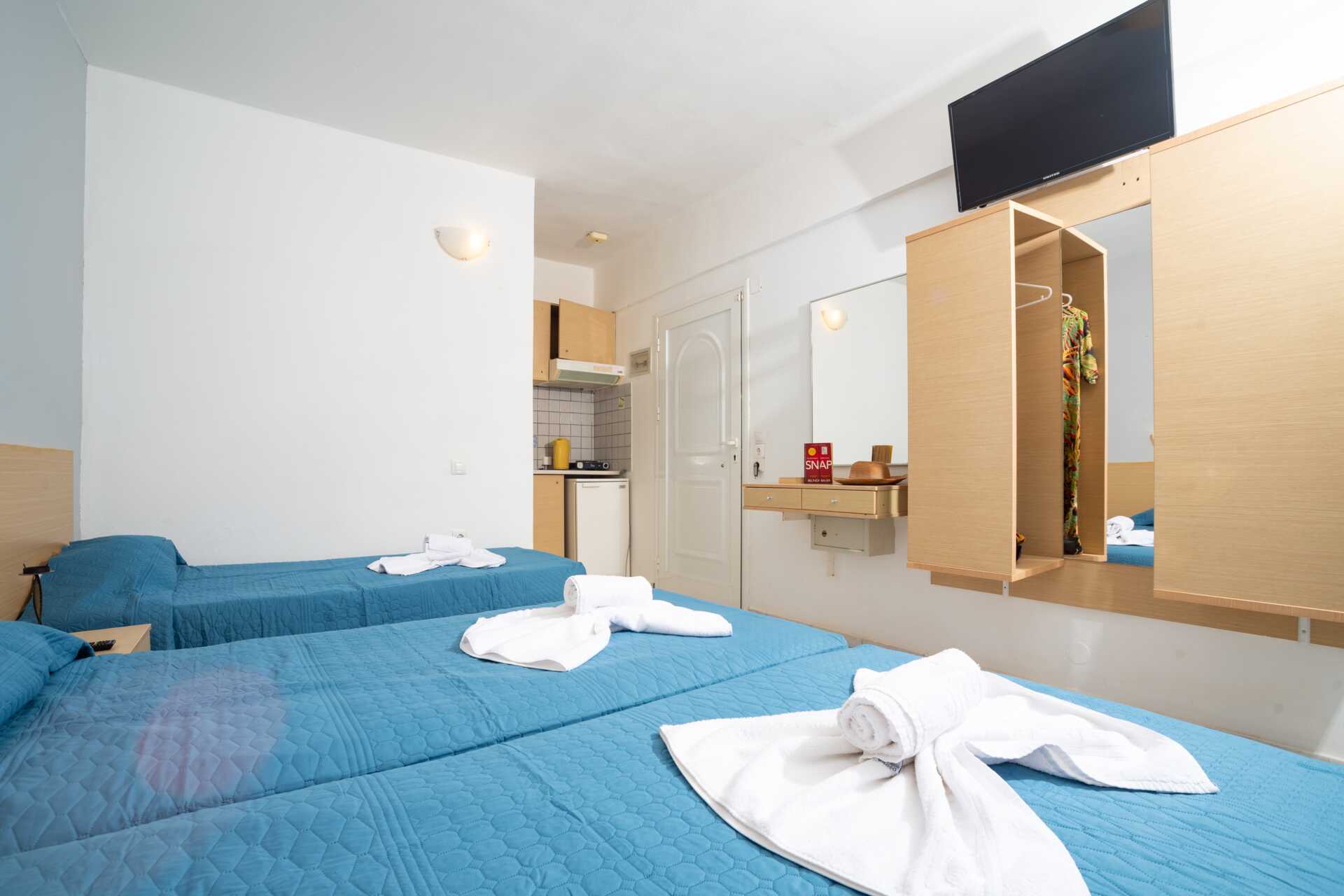 Ettromsleilighet med balkong eller markbalkong, noen med bassengutsikt. Minikjøkken. To enkeltsenger. Mulig med ekstraseng i enkeltseng. Minikjøkken med kjøleskap, kokeplater og enkelt kjøkkenutstyr. Wifi inkludert. Luftkondisjonering og safe mot avgift. Hårføner. Dusj og wc. Rengjøring 2 ggr/uke.