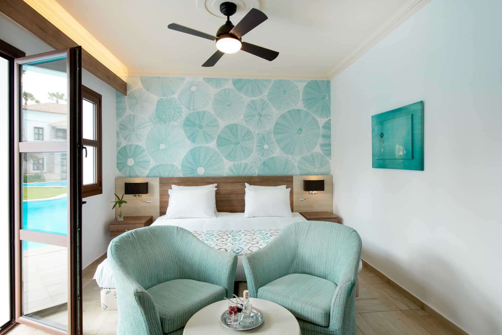 Dobbeltrom i bungalow med uteplass og basseng. En dobbeltseng eller to enkeltsenger. Mulig med ekstraseng i sovesofa. Wifi, luftkondisjonering og safe er inkludert. Minibar, en flaske vin er inkludert ved ankomst samt brus som etterfylles hver dag. Vannkoker samt kaffe og te. TV. Badekåper og tøfler. Hårføner. Badekar eller dusj samt wc. Rengjøring 7 ggr/uke. Barn under 2 år regnes inn i maksantallet i rommet.