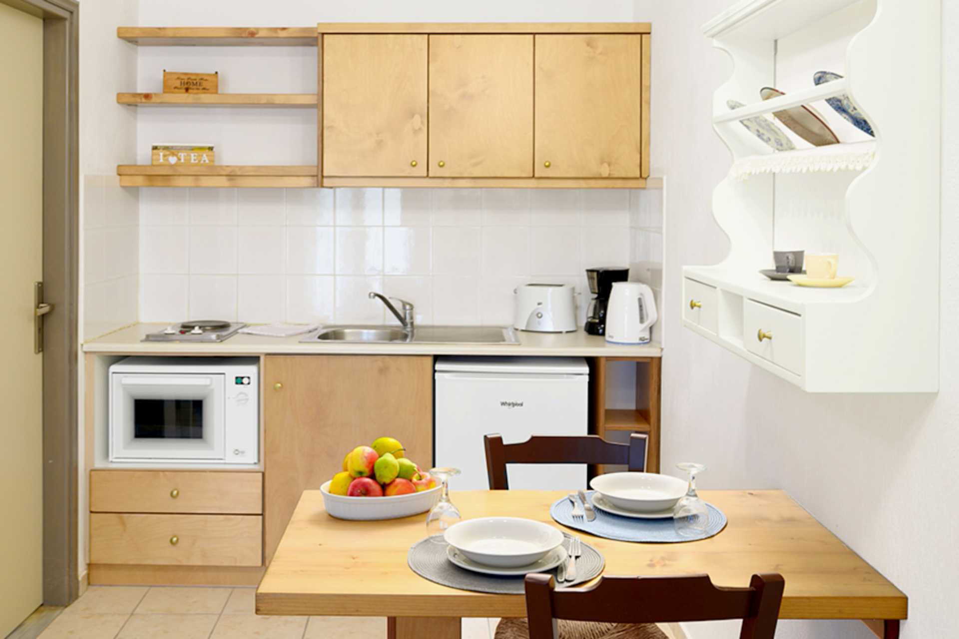 Ettromsleilighet med balkong eller markterrasse. Kombinert soverom og minikjøkken. To enkeltsenger. Muligh med ekstraseng i sovesofa. Minikjøkken med kokeplater, stekeovn, kjøleskap, vannkoker, kaffetrakter, brødrister og enkelt kjøkkenutstyr. Wifi og depositum inkludert. Luftkondisjonering mot avgift. TV. Hårføner. Baderom med dusj og wc. Rengjøring 6 ggr/uke.