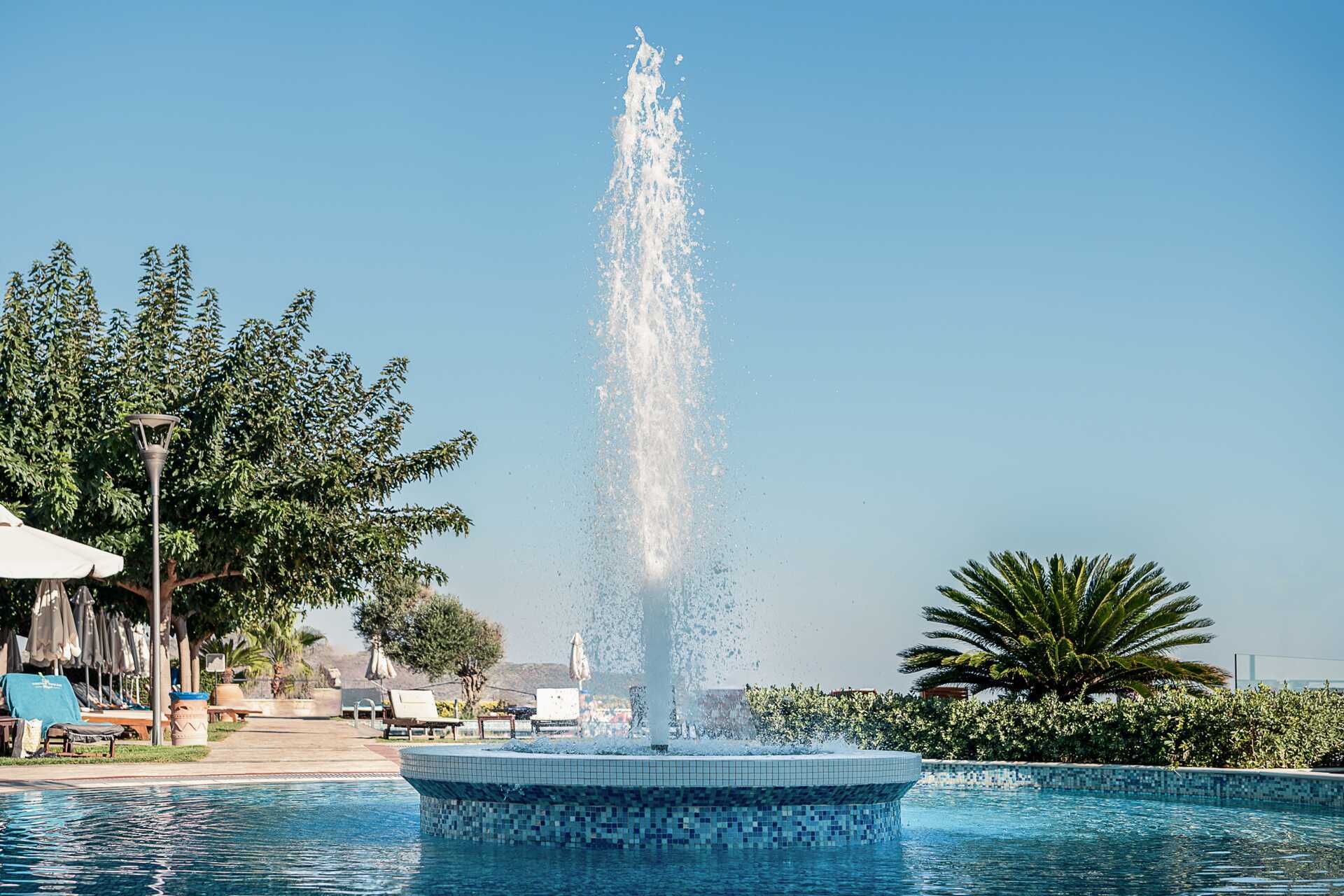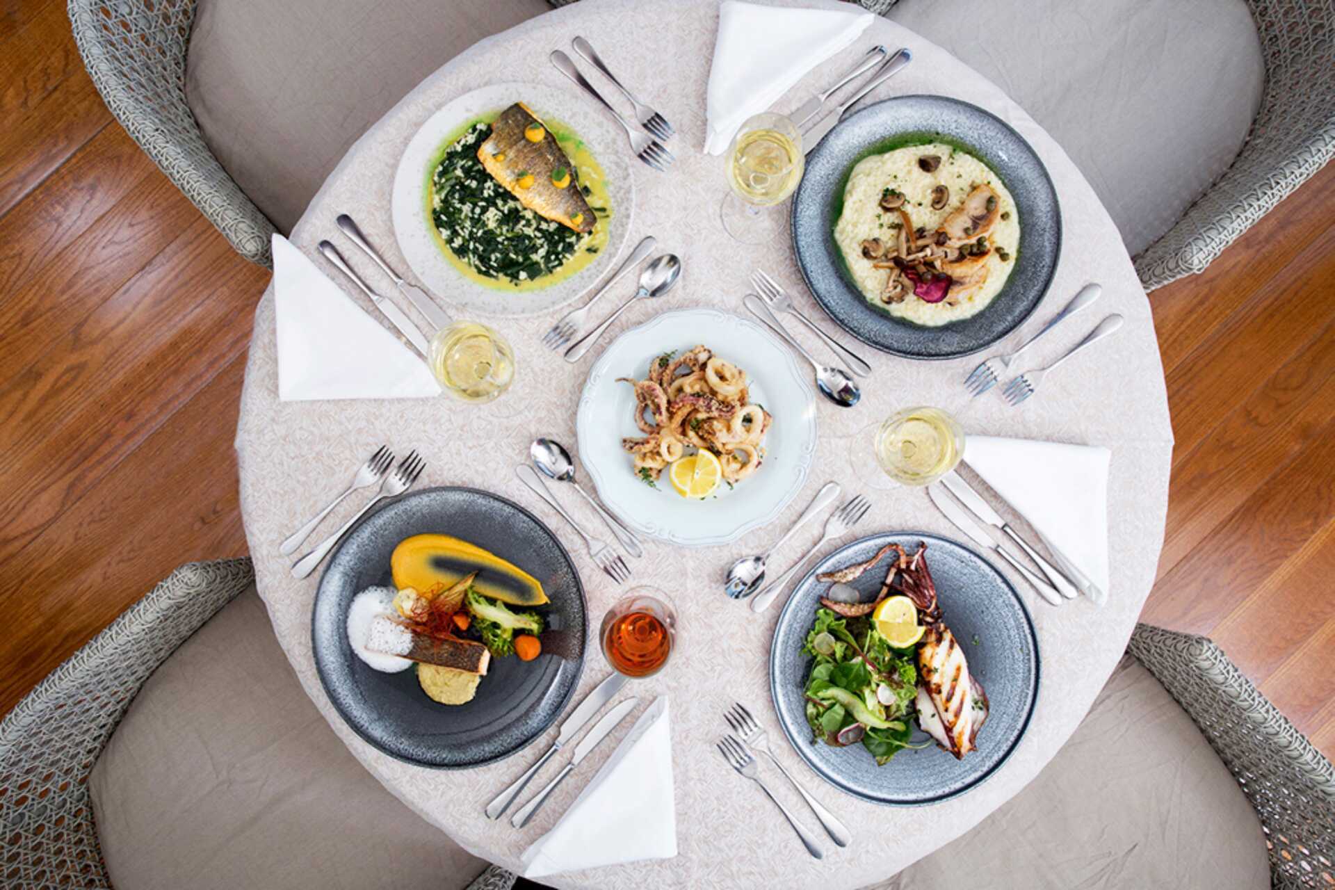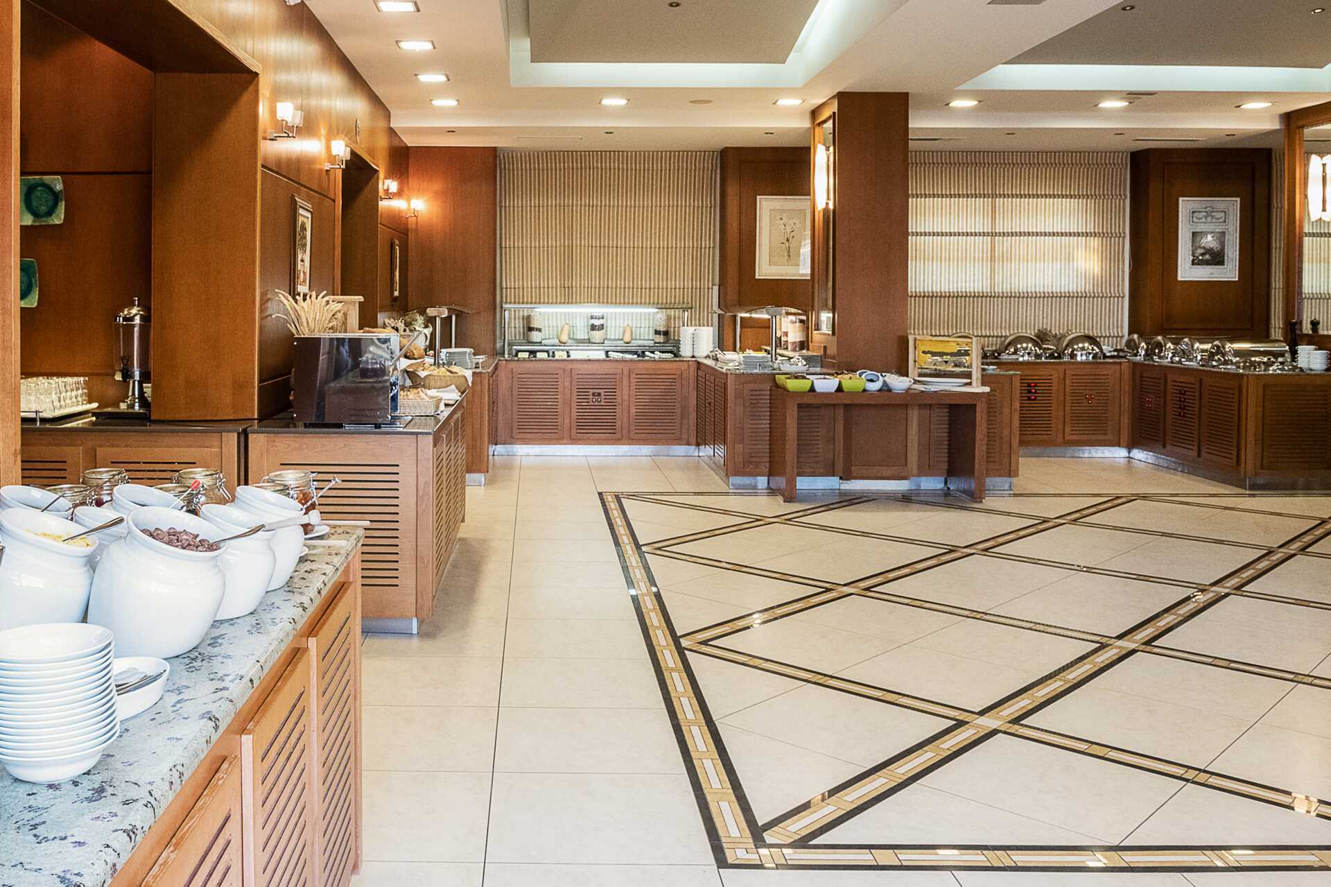 Aphrodite Restaurant serverer en deilig frokostbuffé hvor du finner mange lokale spesialiteter som yoghurt og timianhonning, men også ferskpresset juice og smoothies. Det er også her middagsbufféen serveres. Lunsj og middag serveres i à la carte-restauranten Muse. Aeolos Pool Bar serverer småretter på dagtid, men er åpen til midnatt for en drink eller noe forfriskende å drikke i løpet av dagen.