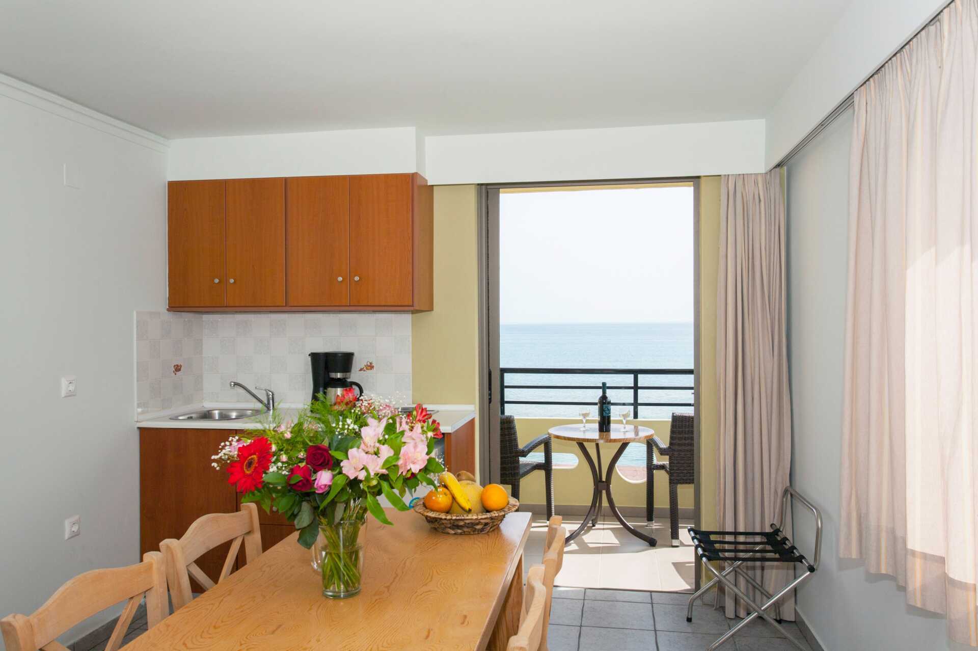 Ettromsleilighet med balkong eller markbalkong i første etasje, noen med havutsikt, begrenset havutsikt eller med balkong og bassengutsikt. Kombinert soverom med minikjøkken. To enkeltsenger. Mulig med en ekstraseng. Minikjøkken med kjøleskap, kokeplater, kaffetrakter, vannkoker, brødrister og enkelt kjøkkenutstyr. Wifi og luftkondisjonering er inkludert. Safe mot avgift. TV med lokale kanaler. Hårføner. Dusj og wc. Rengjøring 6 ggr/uke.
