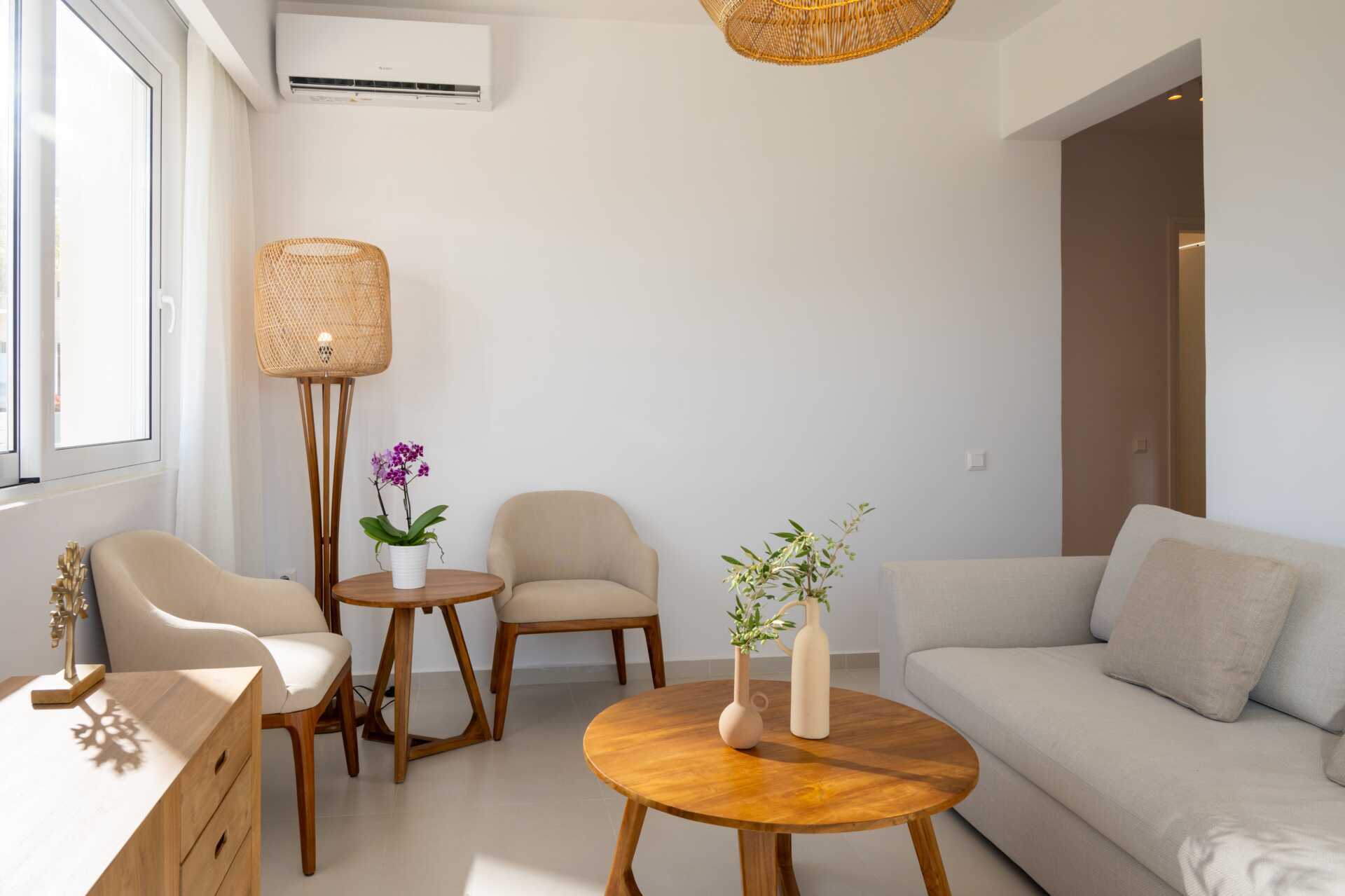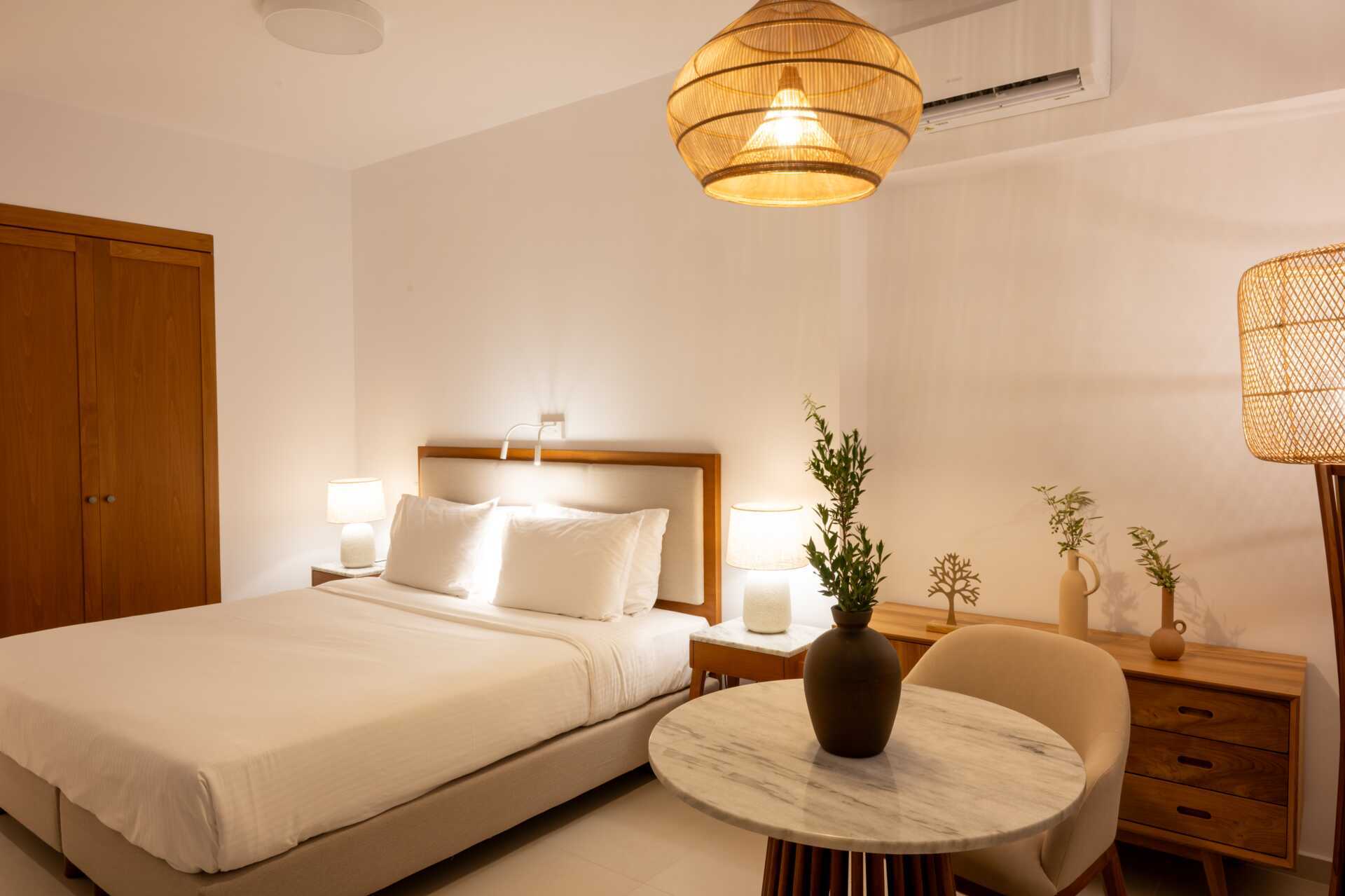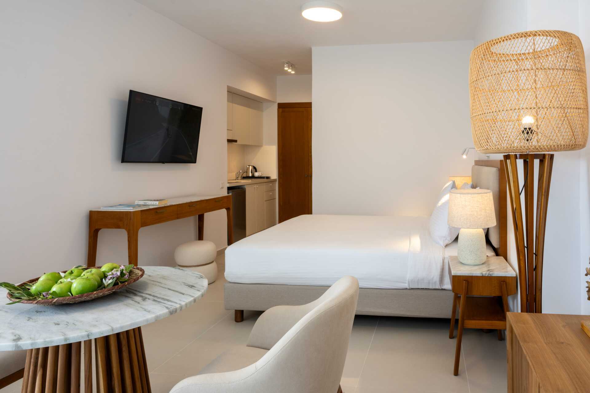 Toromsleilighet med balkong eller terrasse, noen med begrenset havutsikt. Et soverom og stue med minikjøkken. En dobbeltseng eller to enkeltsenger. Mulig med ekstraseng i sovesofa. Minikjøkken med kokeplater, kjøleskap, vannkoker samt kaffe og te og enkelt kjøkkenutstyr. Wifi, luftkondisjonering og safe inkludert. TV. Hårføner. Dusj og wc. Rengjøring 7 ggr/uke. Barn under 2 år regnes inn i maksantallet i rommet.