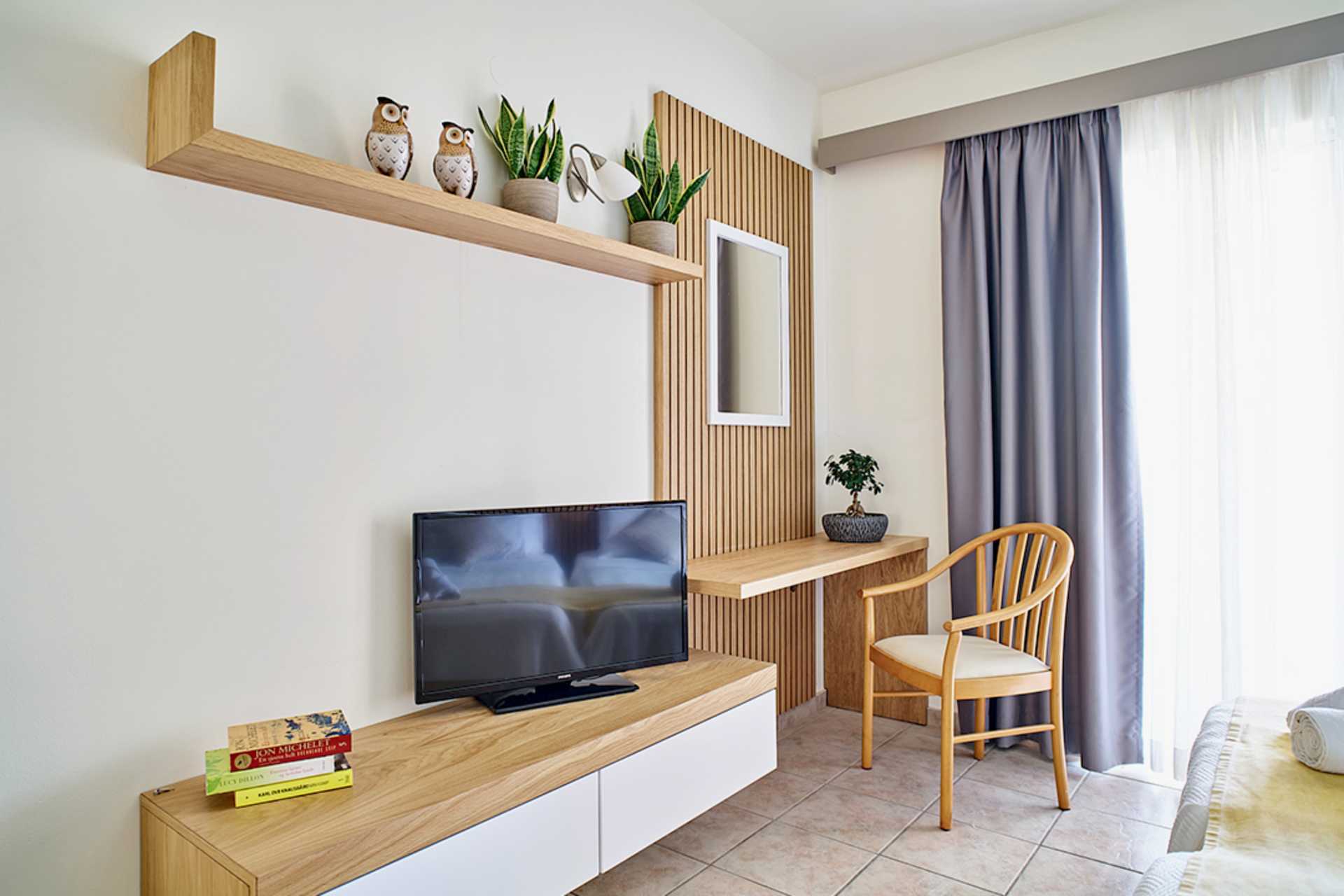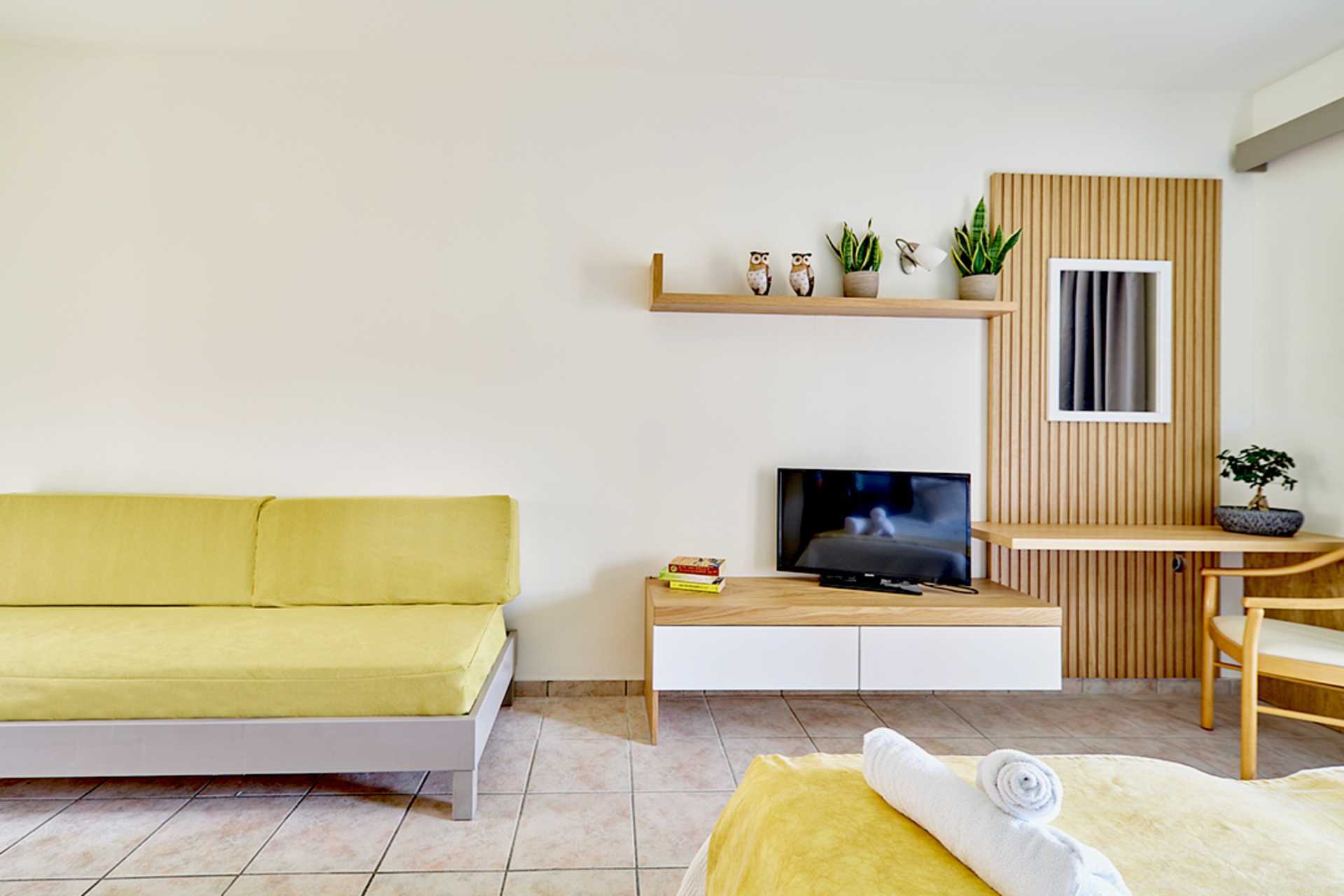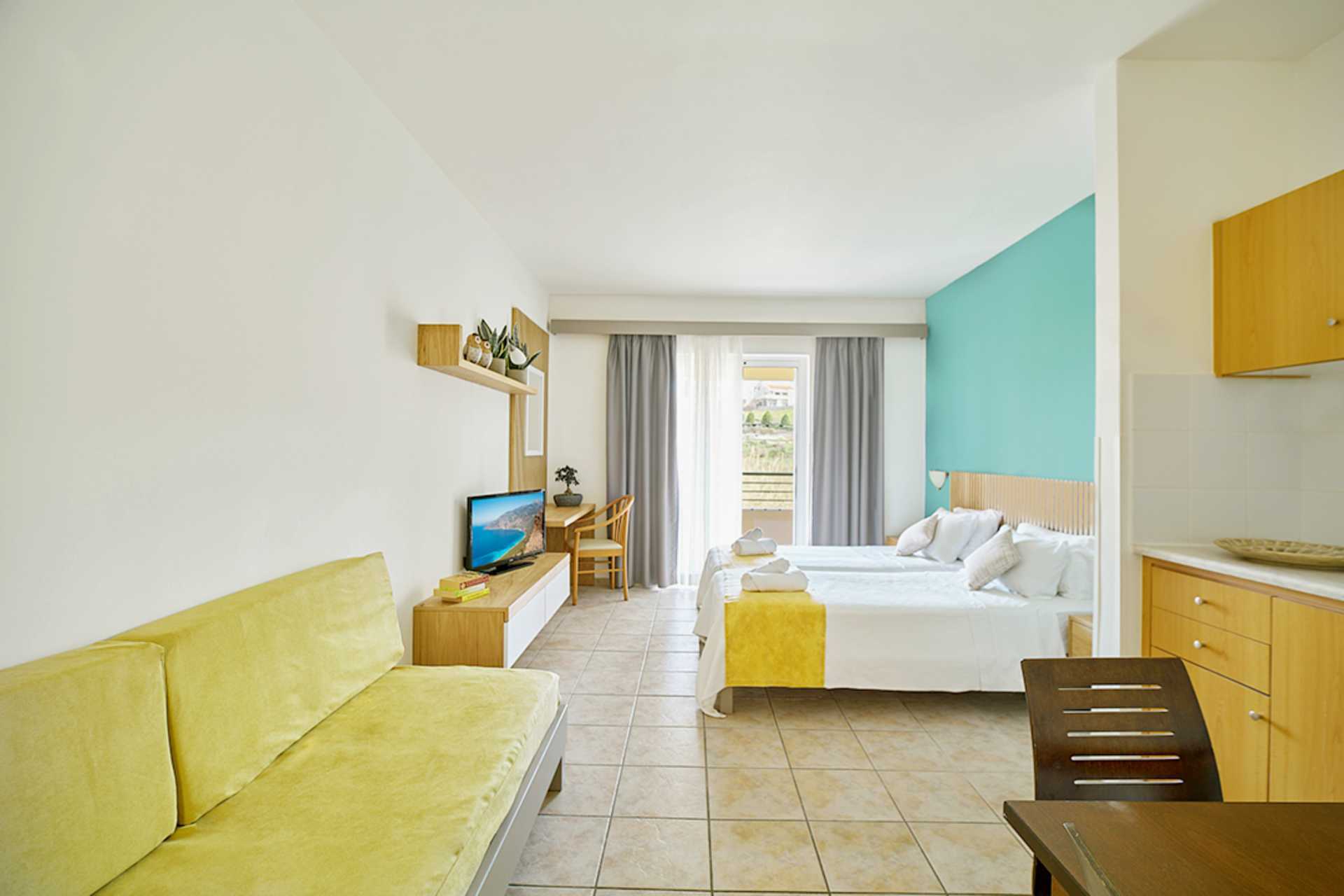 Ettromsleilighet med balkong eller markbalkong, noen med bassengutsikt. Minikjøkken. Noen leiligheter har noen få trappetrinn. To enkeltsenger. Mulig med en ekstraseng i sovesofa. Minikjøkken med kokeplater, kjøleskap, kaffetrakter, mikrobølgeovn, vannkoker, brødrister og enkel kjøkkenutstyr. Wifi, luftkondisjonering og safe inkludert. TV. Hårføner. Dusj og wc. Rengjøring 6 ggr/uke.