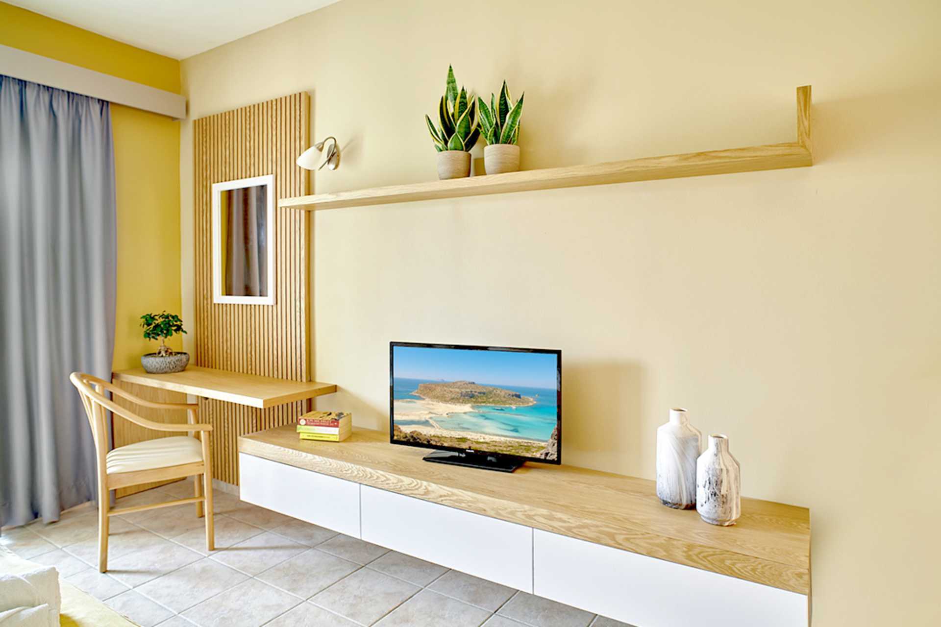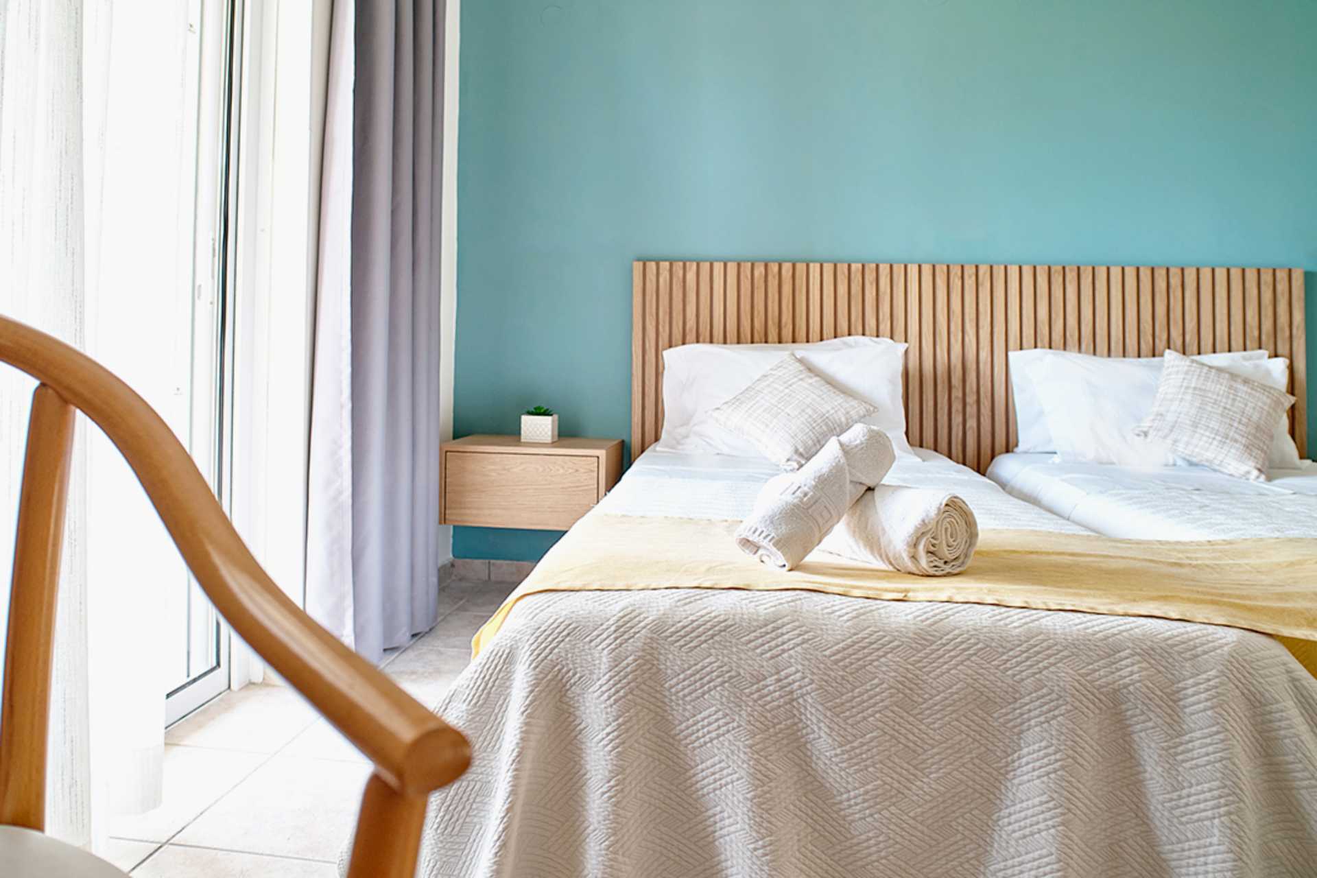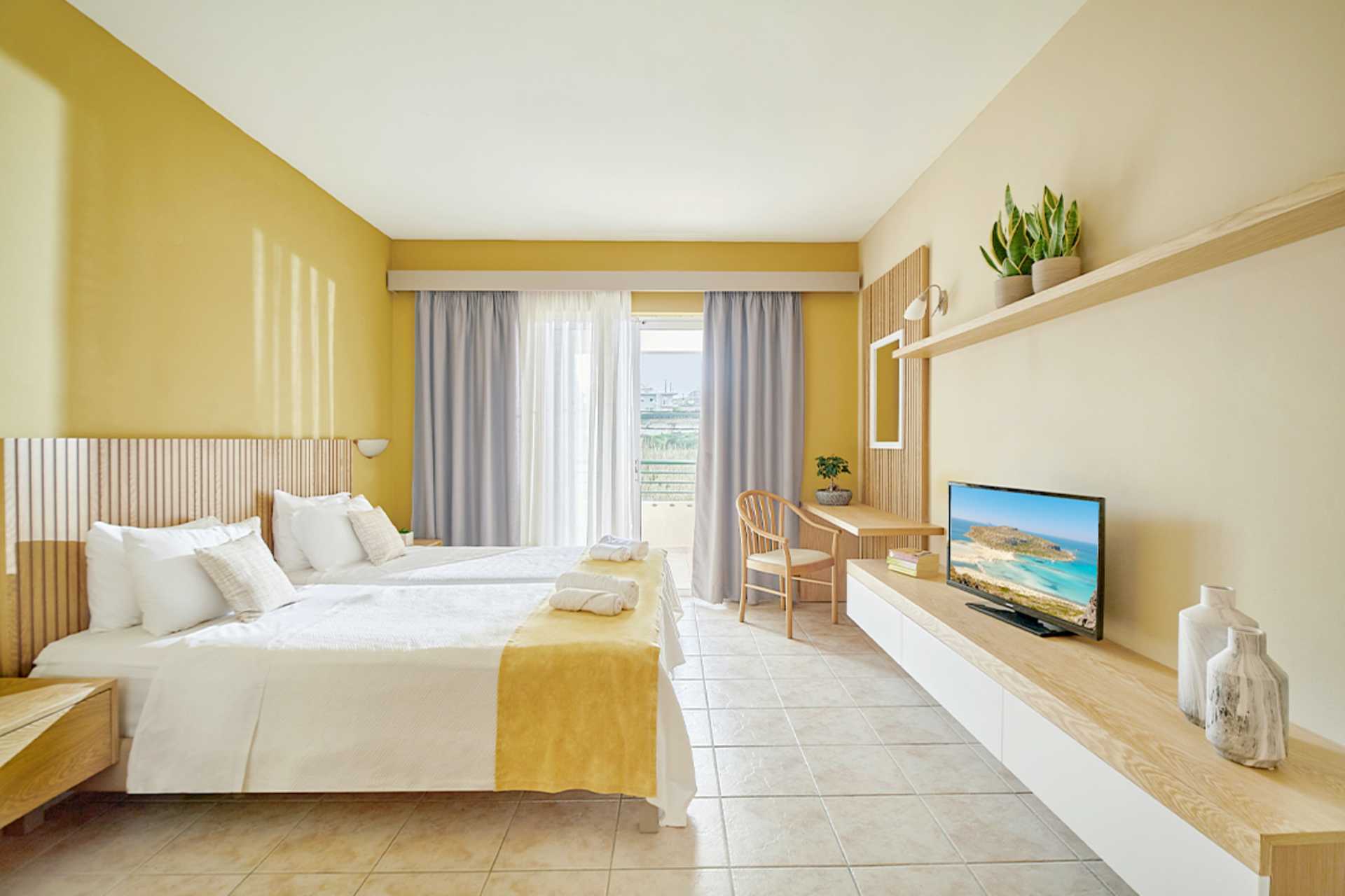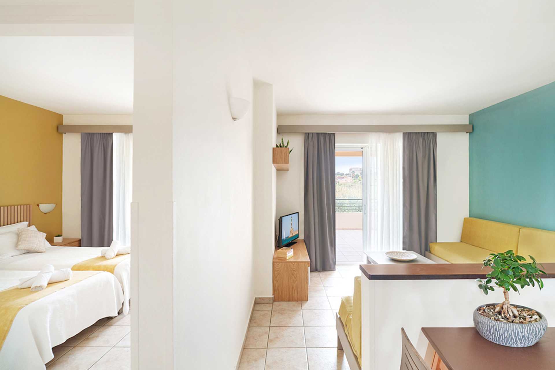 Treromsleilighet med balkong og bassengutsikt. To soverom og en stue med minikjøkken. To enkeltsenger i hvert soverom. Mulig med ekstraseng i sovesofa eller feltseng. Noen leiligheter har ulike nivåer med noen få trappetrinn. Minikjøkken med kokeplater, kjøleskap, kaffetrakter, mikrobølgeovn, vannkoker, brødrister og enkelt kjøkkenutstyr. Wifi, luftkondisjonering og safe inkludert. TV. Hårføner. Badekar eller dusj samt wc. Rengjøring 6 ggr/uke.