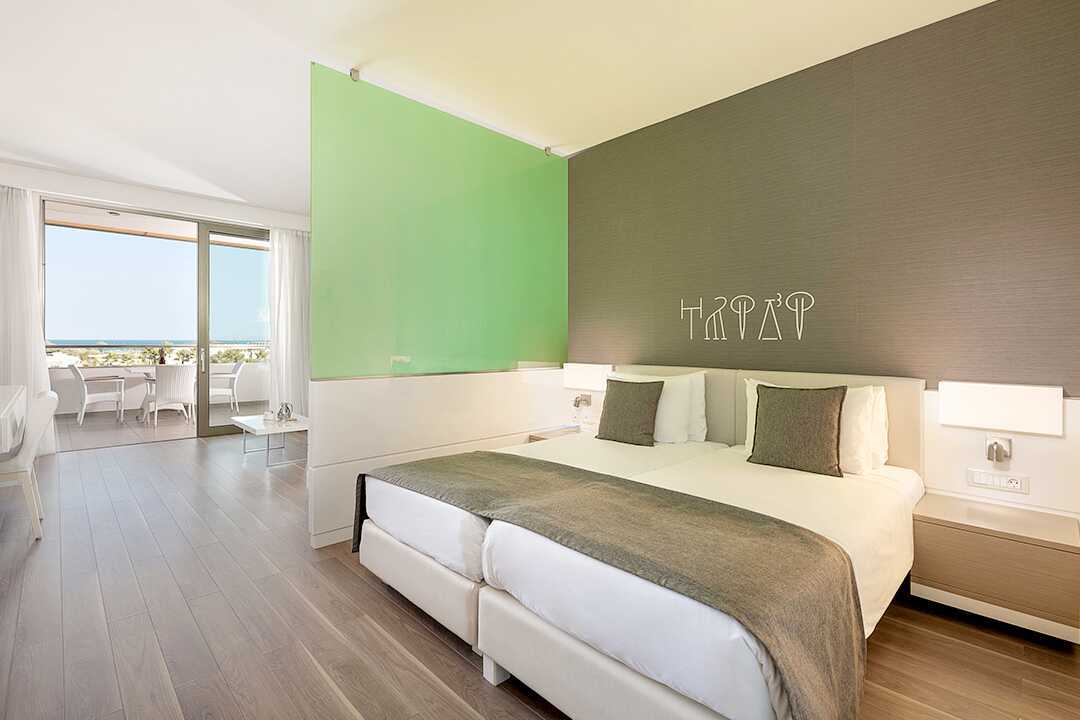 Deluxerom med balkong eller terrasse, noen med bassengutsikt. En dobbeltseng eller to enkeltsenger. Mulig med en ekstraseng i sovesofa. Wifi, luftkondisjonering og safe inkludert. Minibar mot avgift. Vannkoker samt kaffe og te. TV. Hårføner. Badekåper og tøfler. Bad med badekar, separat dusj og wc. Rengjøring 7 ggr/uke. Barn under 2 år regnes inn i maksantallet i rommet.
