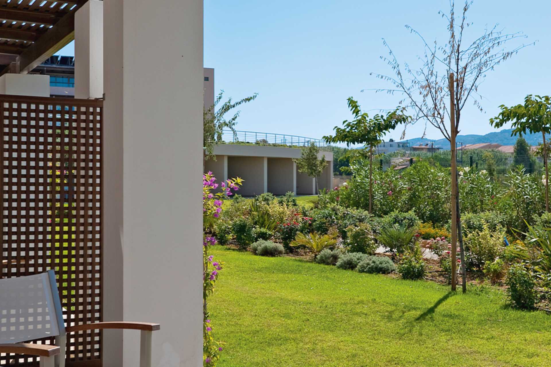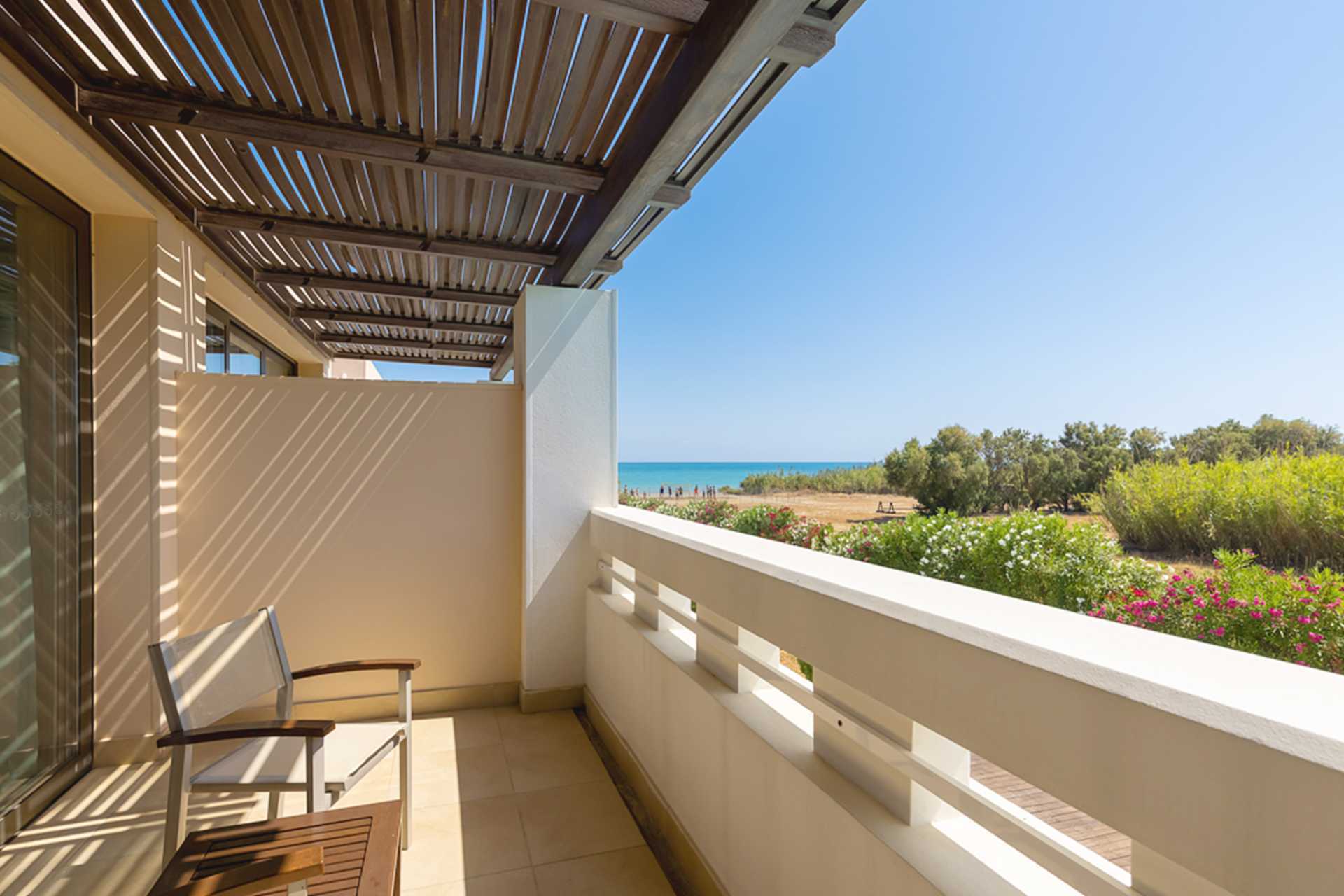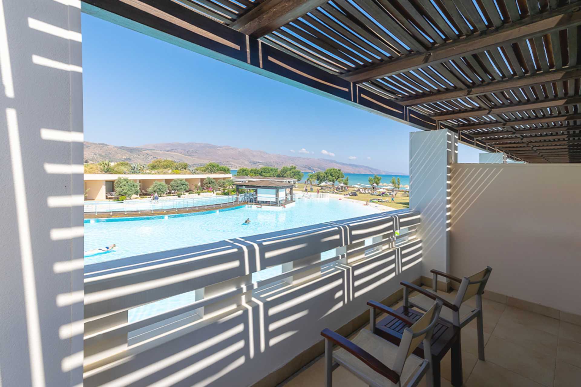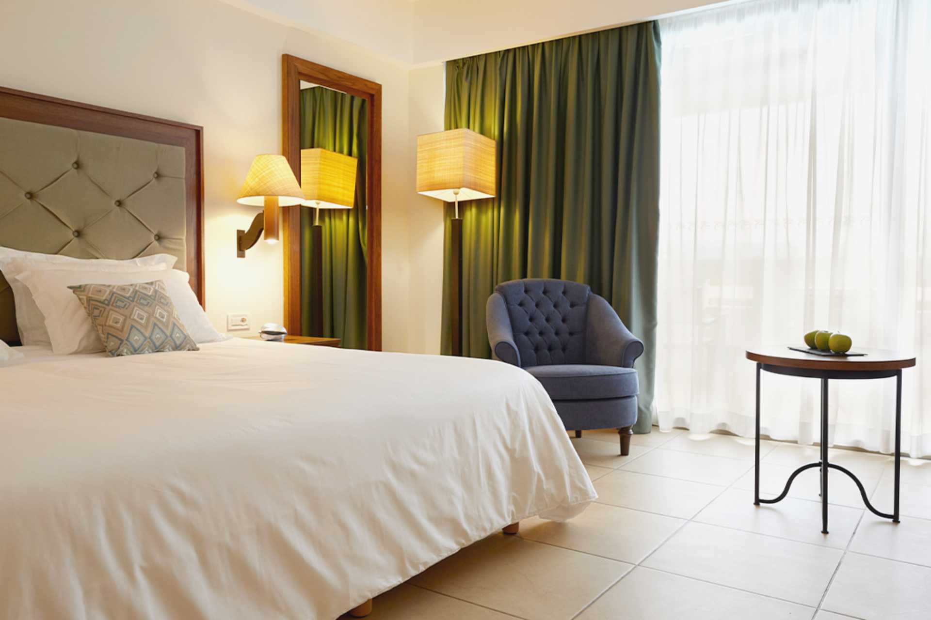 Juniorsuiter med direkte utgang til det store fellesbassenget fra terrassen, begrenset havutsikt. På terrassen er det to solsenger og et bord og stoler. En dobbeltseng. Mulig med en ekstraseng i sovesofa. Wifi, luftkondisjonering og safe inkludert. Minibar. Vannkoker samt kaffe og te. Espresso kaffemaskin, kapsler mot avgift. TV. Badekåper og tøfler Hårføner. Badekar, dusj og wc. Rengjøring 7 ggr/uke.