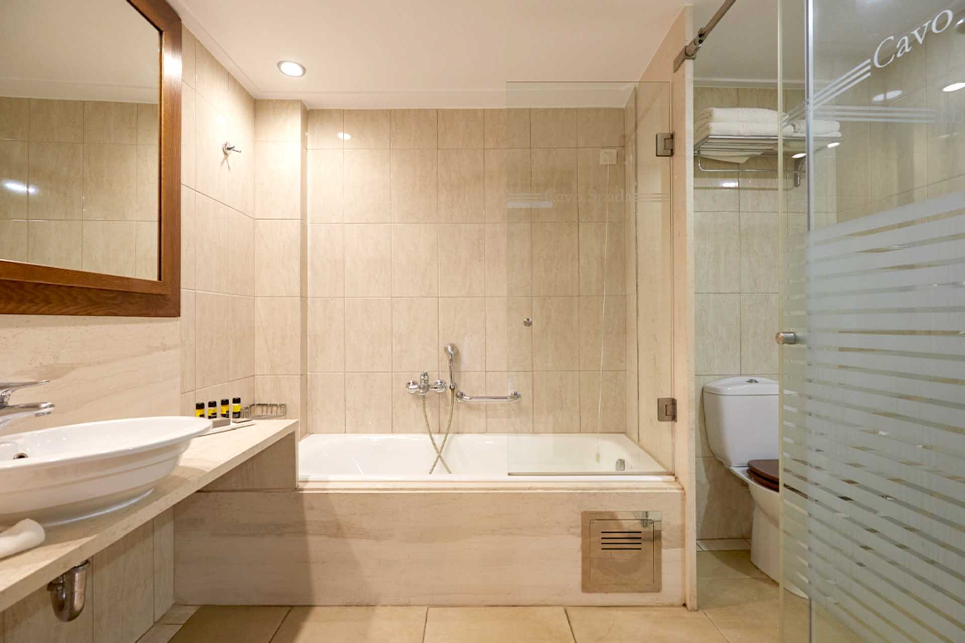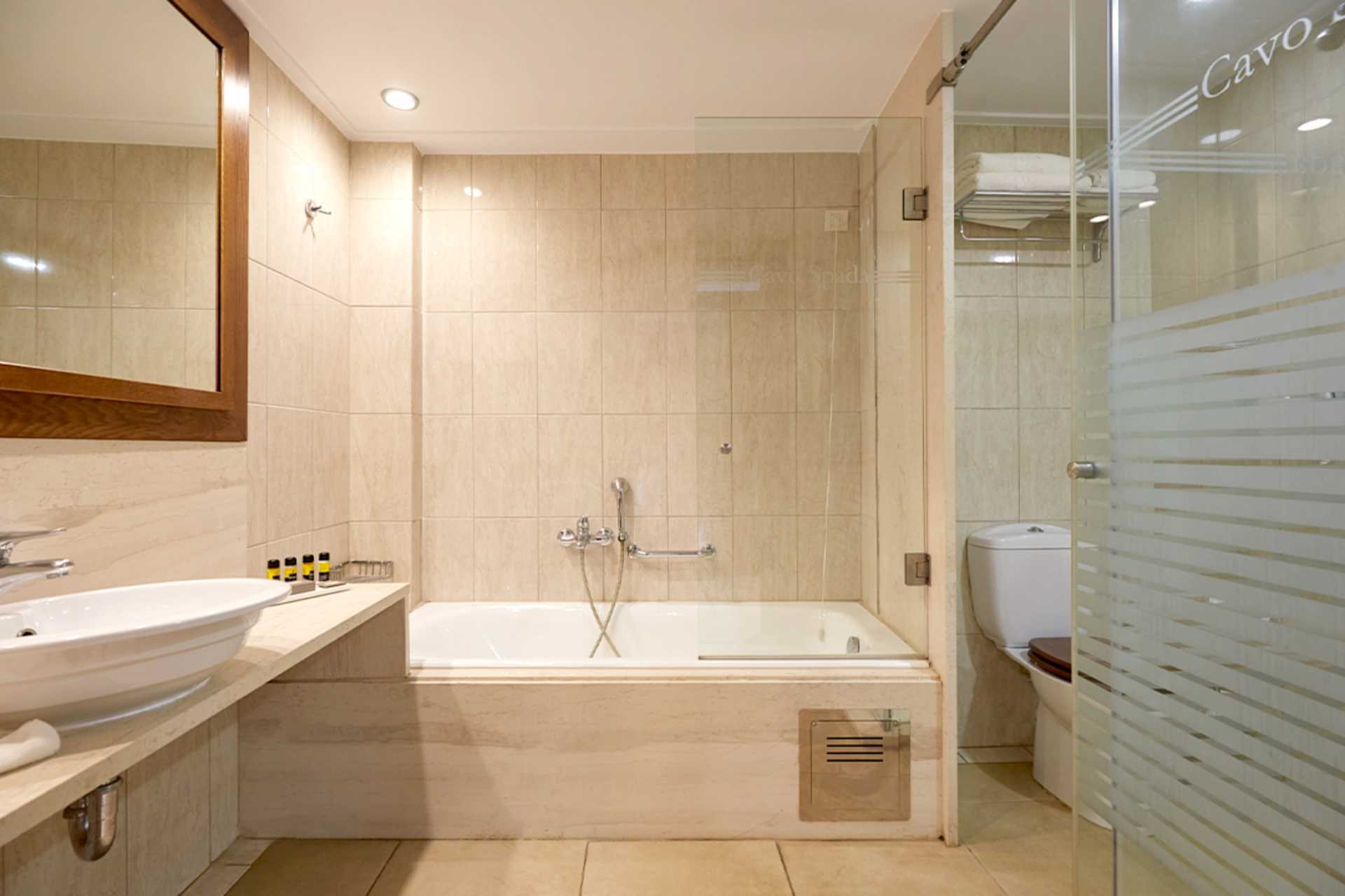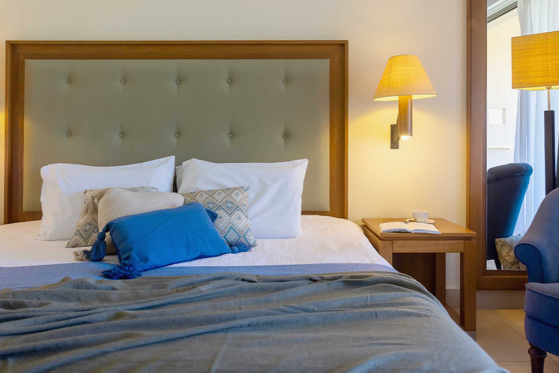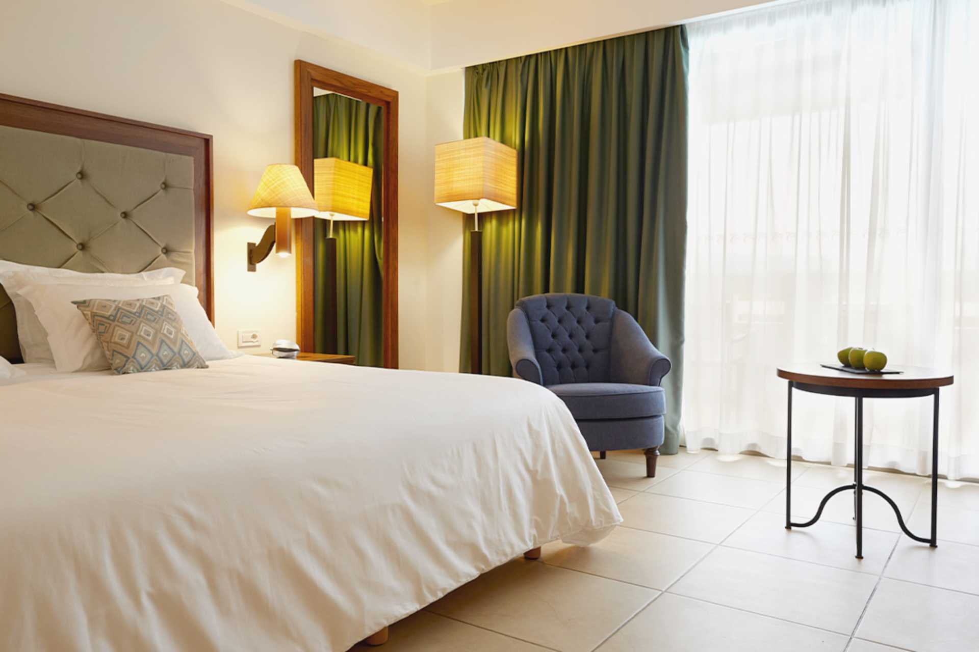 Dobbeltrom med balkong eller terrasse. Noen av rommene har begrenset havutsikt, og fra noen balkonger er det utsikt over bassenget. Varierende størrelse på rommene. To enkeltsenger. Mulig med en ekstraseng i sovesofa. Wifi, luftkondisjonering og safe inkludert. Vannkoker samt kaffe og te. Espresso kaffemaskin, kapsler mot avgift. Minibar. TV. Badekåper og tøfler. Hårføner. Bad med badekar, dusj og wc. Rengjøring 7 ggr/uke.