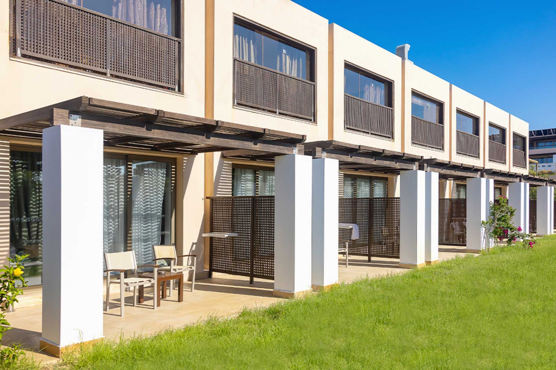 Dobbeltrom med markterrasse og direkte utgang til felles basseng. Rommene ligger ved et separat bassengområde. På terrassen er det to solsenger, bord og stoler og en stige ned i bassenget. En dobbeltseng. Mulig med ekstrasenger i sovesofa og feltseng. Wifi, luftkondisjonering og safe inkludert. Minibar. Vannkoker samt kaffe og te. Espresso kaffemaskin, kapsler mot avgift. TV. Badekåper og tøfler Hårføner. Badekar, dusj og wc. Rengjøring 7 ggr/uke.