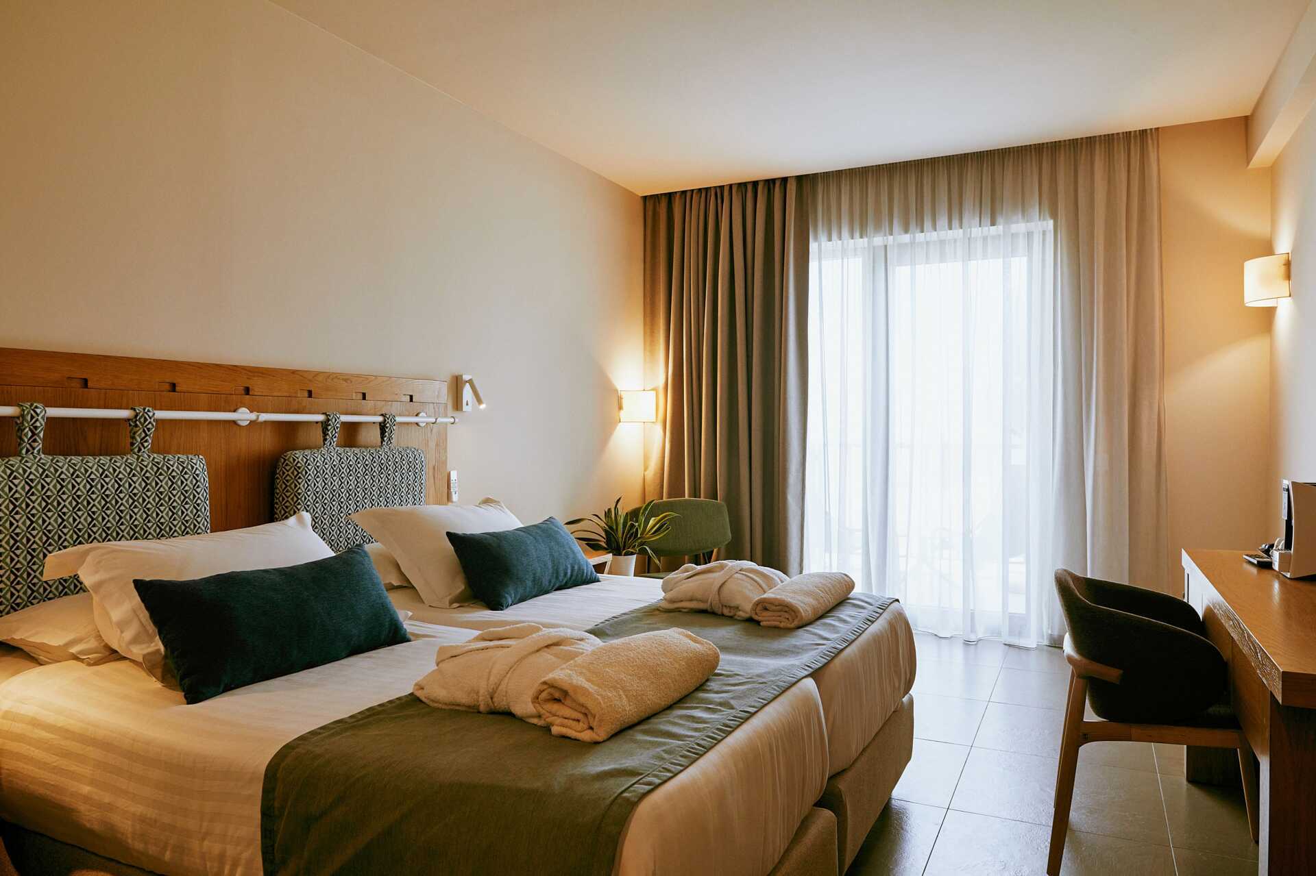 Dobbeltrom med balkong eller terrasse. Noen balkonger har begrenset havutsikt. En dobbeltseng eller to enkeltsenger. Wifi, luftkondisjonering og safe inkludert. Minibar. Espresso kaffemaskin, kapsler inkludert og etterfylles daglig. TV. Badekåper og tøfler. Hårføner. Badekar eller dusj samt wc. Rengjøring 7 ggr/uke.